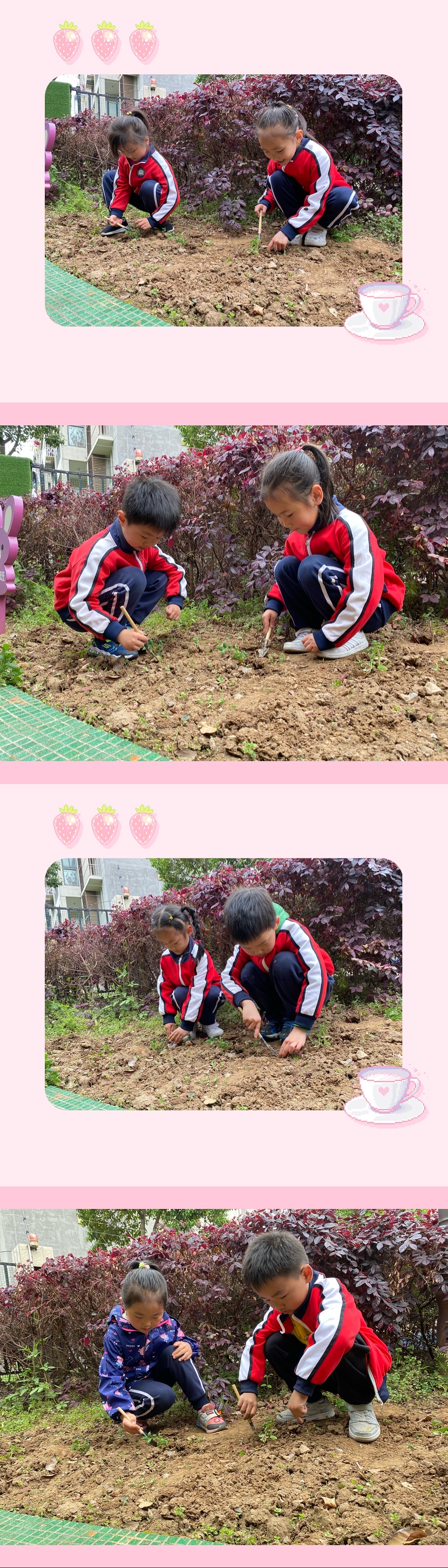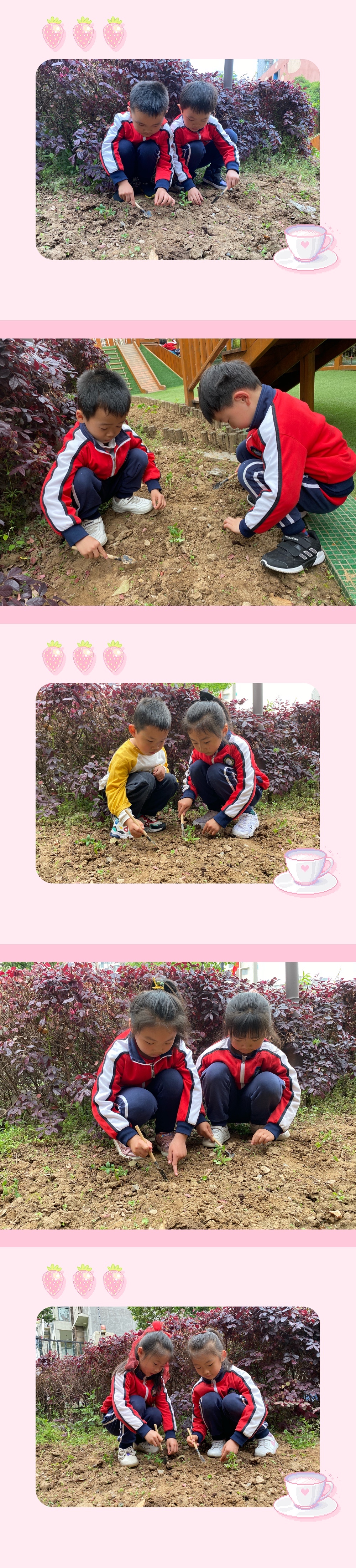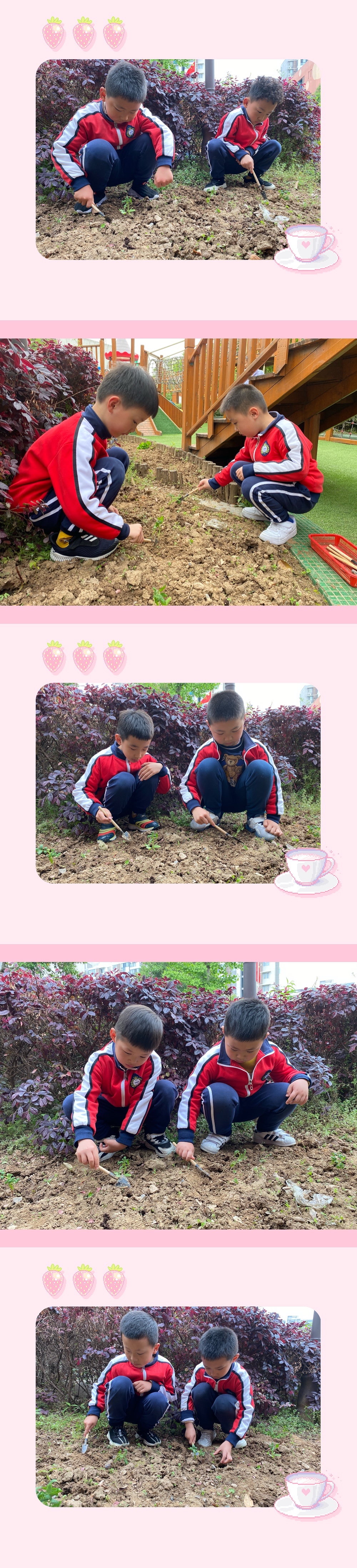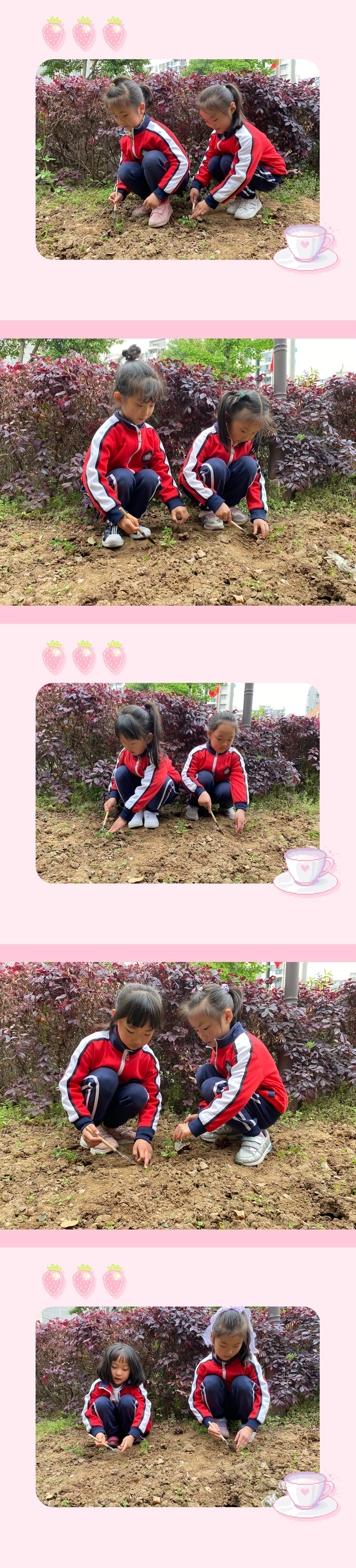 著名教育家陈鹤琴先生说过:“大自然大社会是最好的活教材。”在幼儿园的环境教育中,种植区是幼儿园环境教育中重要的组成部分之一,因为它不仅有绿色,美化环境的作用,同时还蕴含着很大的教育价值。通过户外种植活动,让孩子们亲身体验生活的乐趣,从而感受大自然的美。因此我们班的孩子们种植了西红柿,孩子们细心地栽种西红柿小苗,也会保护小苗长大,期待它长大哦!