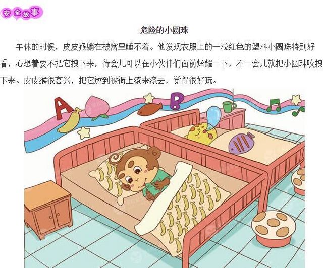 通过学习小朋友们都知道,笔帽、扣子、棋子、发卡、图钉、硬币等一些小的物品不能往耳朵、嘴巴、鼻子里塞;吃饭、吃水果的时候不要大声说笑,不然小饭粒等容易进入气管;早上入园时积极接受晨检,不带小物品入园;午休时不咬、拽衣服扣子、拉链,不玩被角、线头、棉花等物品,有异物进入口、鼻等地方时,要及时告诉老师;看到同伴不小心把小物品放入口、鼻等地方时,也要及时告诉老师。