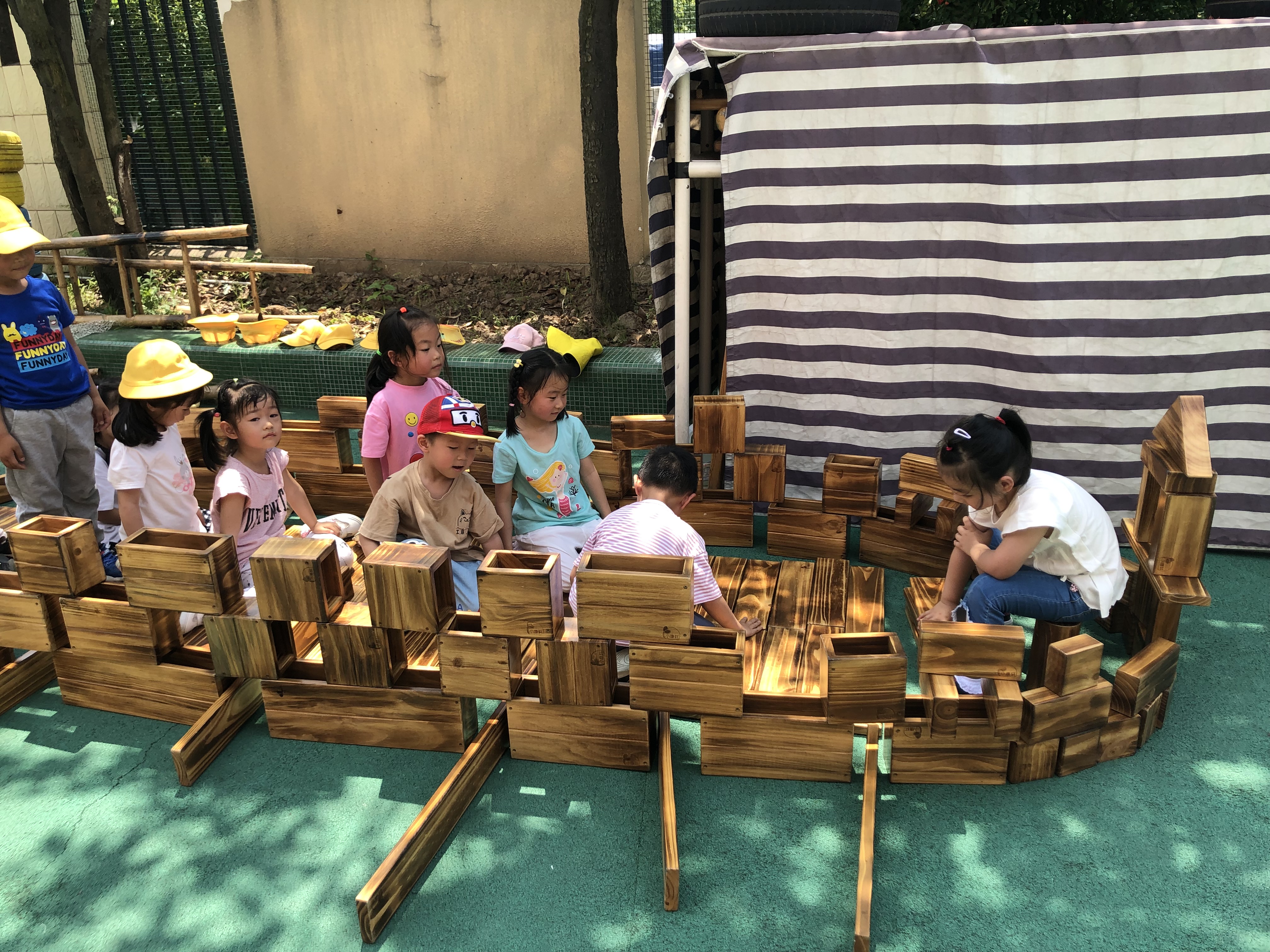 我们用碳化积木搭建了一个大龙舟,虽然在搭建的过程中有失败,有困惑,但是我们仍然不放弃,最后终于搭成了一个大龙舟。
