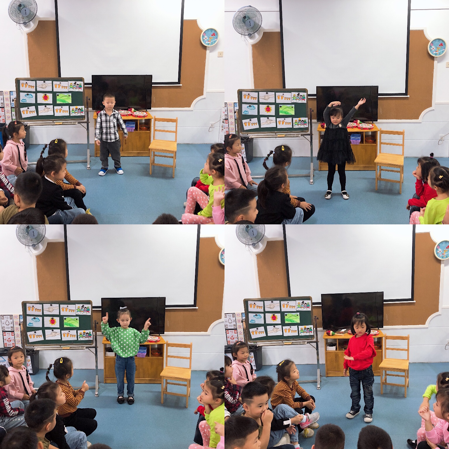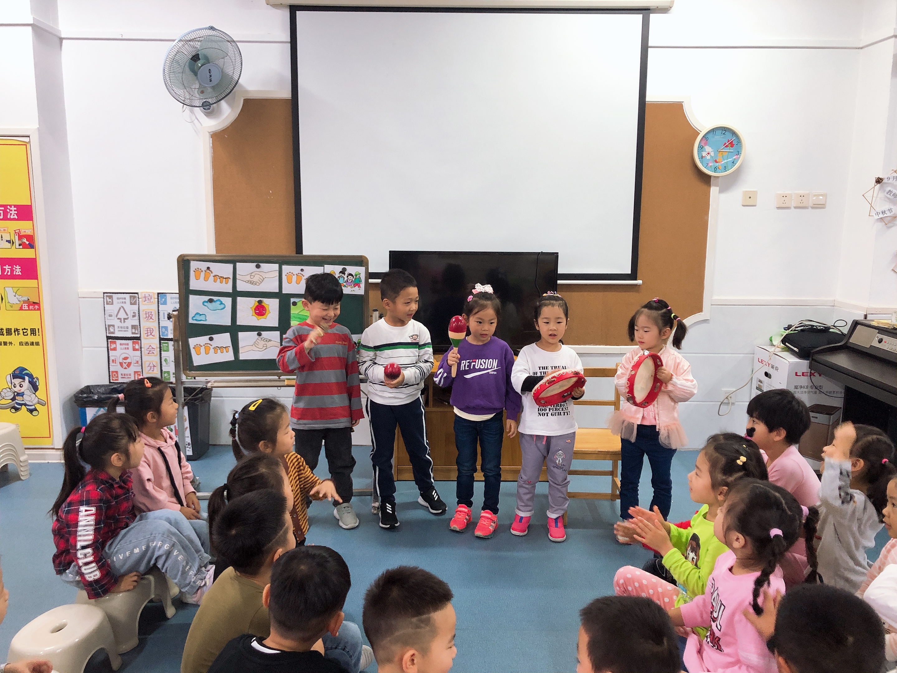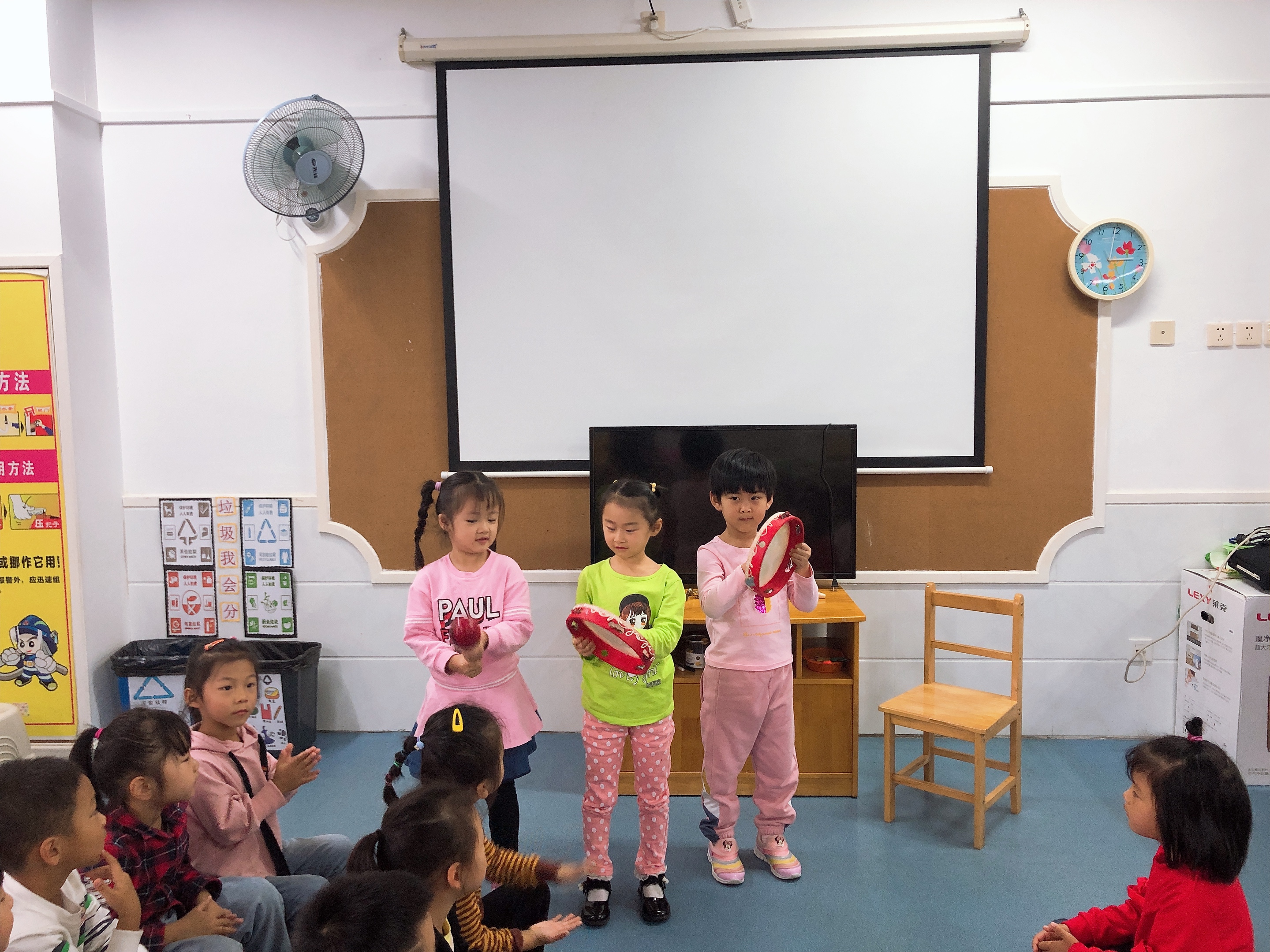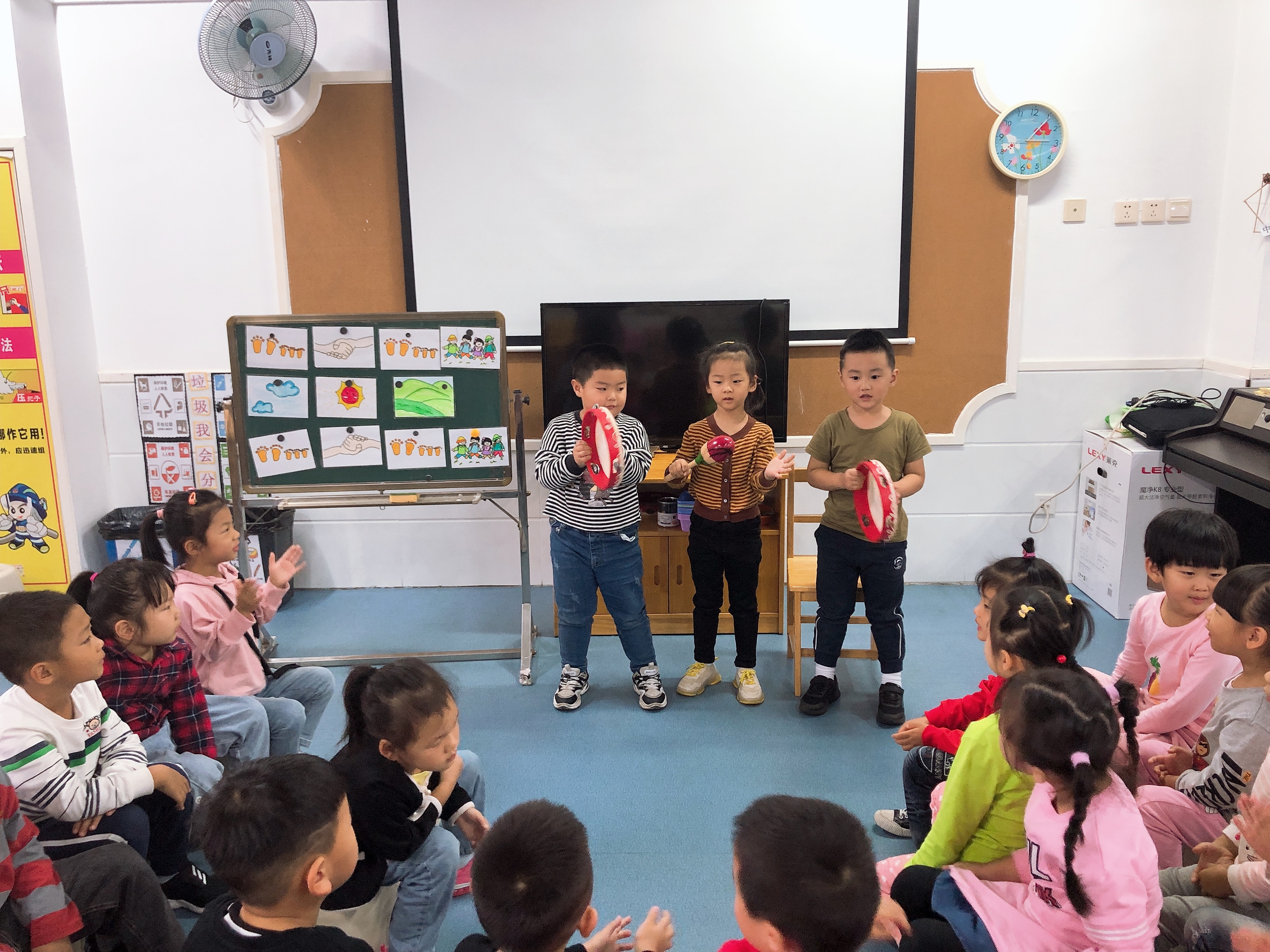 通过本次演奏孩子的兴趣明显提高了很多,兴趣较浓厚,活动延伸到表演区,孩子们自由交换乐器演奏,体验合作的乐趣!
