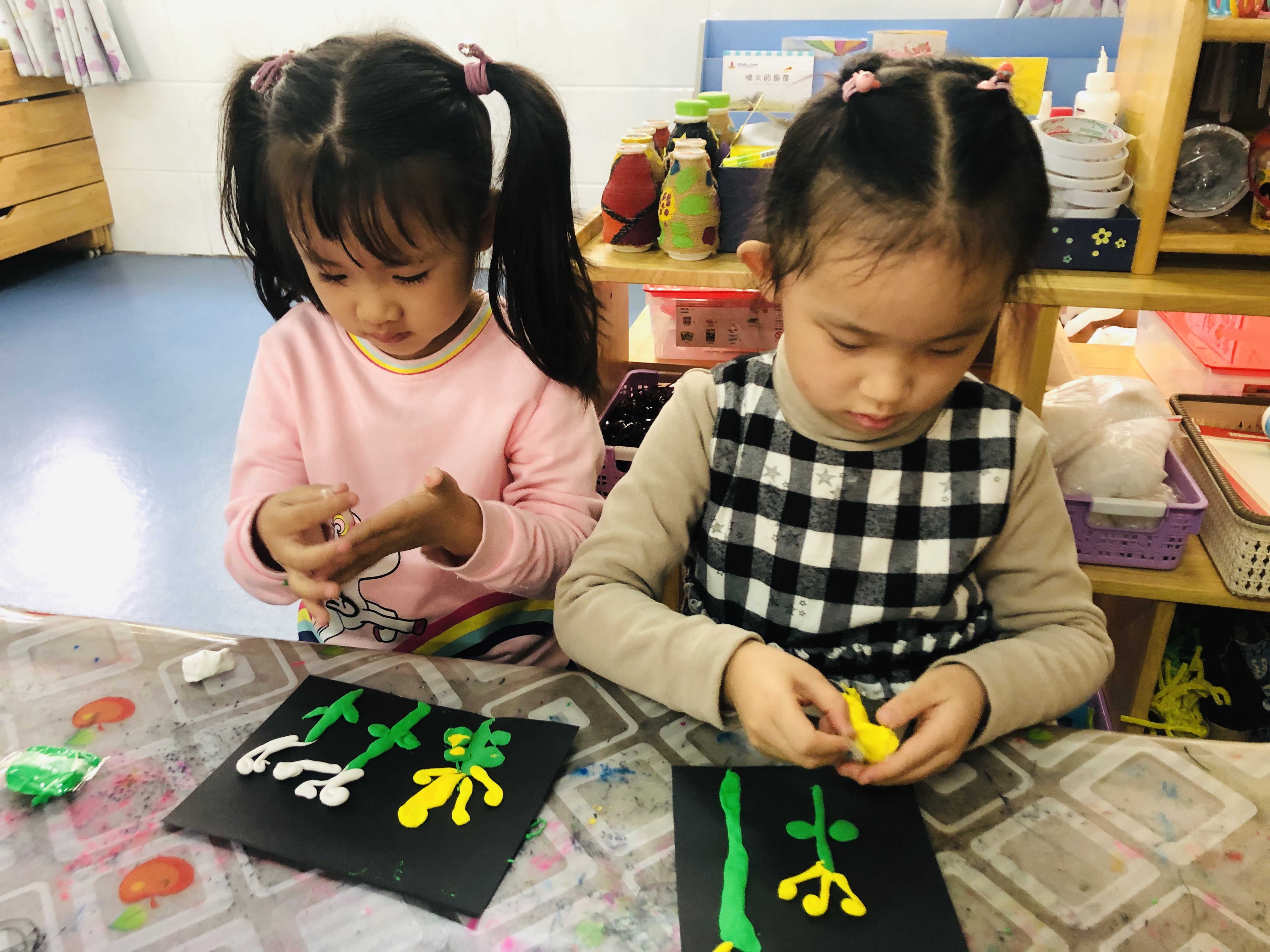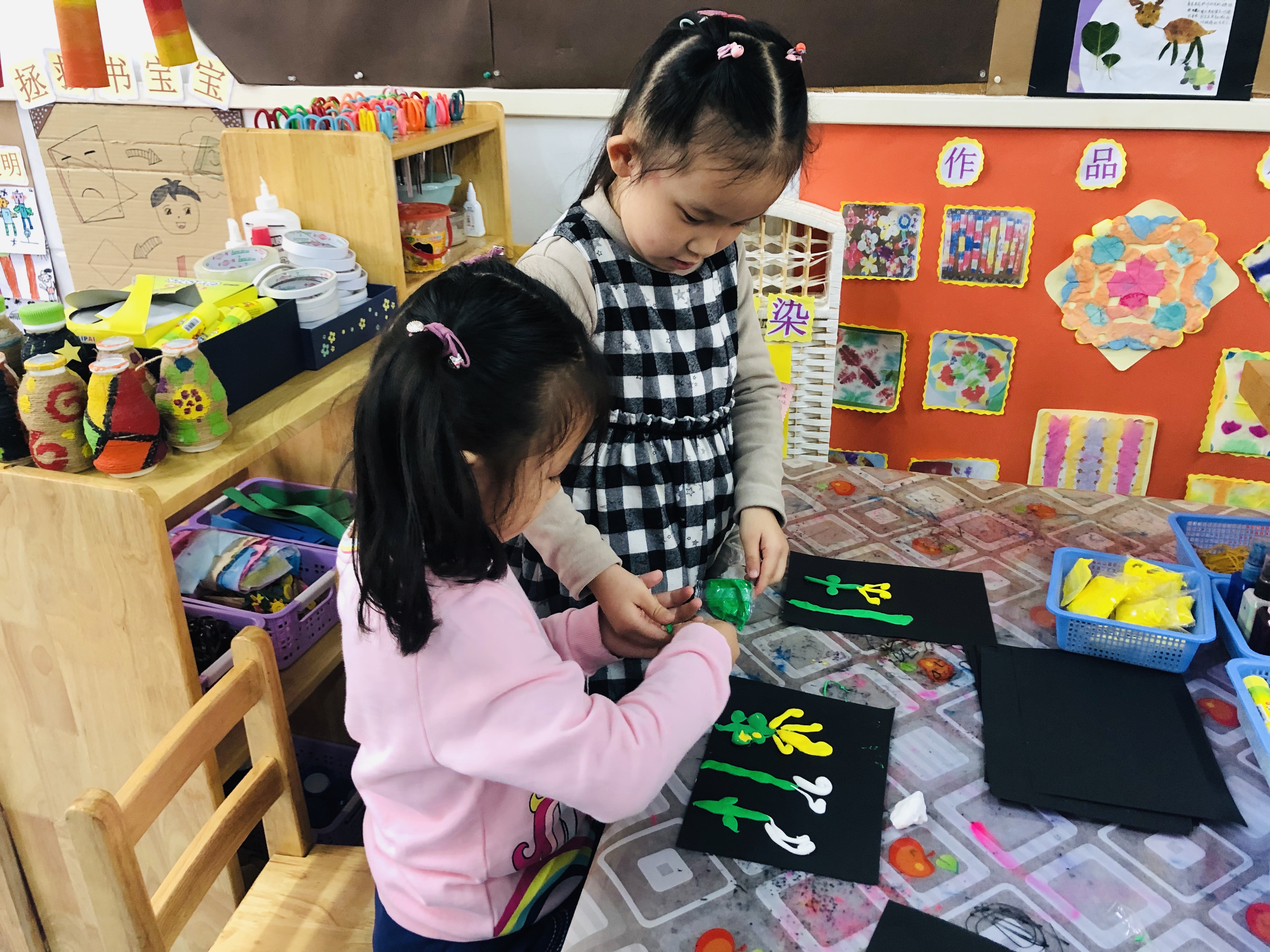 孩子们正在制作美丽的菊花!
