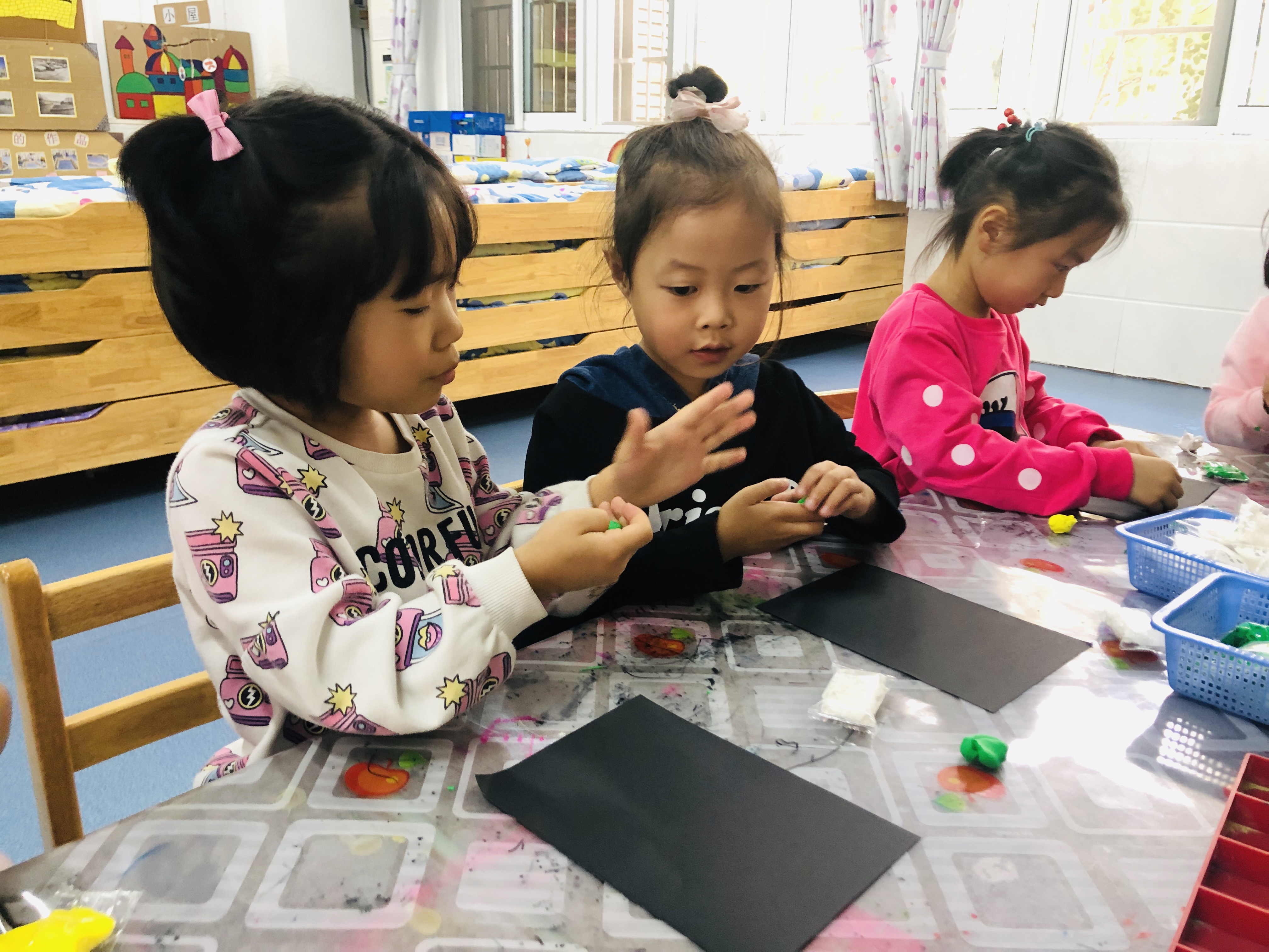 粘土看似无声无息,却充满了生命力。孩子们随意地运用捏塑、拍打、揉搓等动作进行创作,在获得快乐的同时,也促进了手、眼、脑协调发展。孩子的智力发展起源于动作。粘土手工制作的整个过程不仅可以开发幼儿的智力,还可以提高他们对事物的感知力、观察力和创造力,是一项非常有益幼儿身心发展的活动。