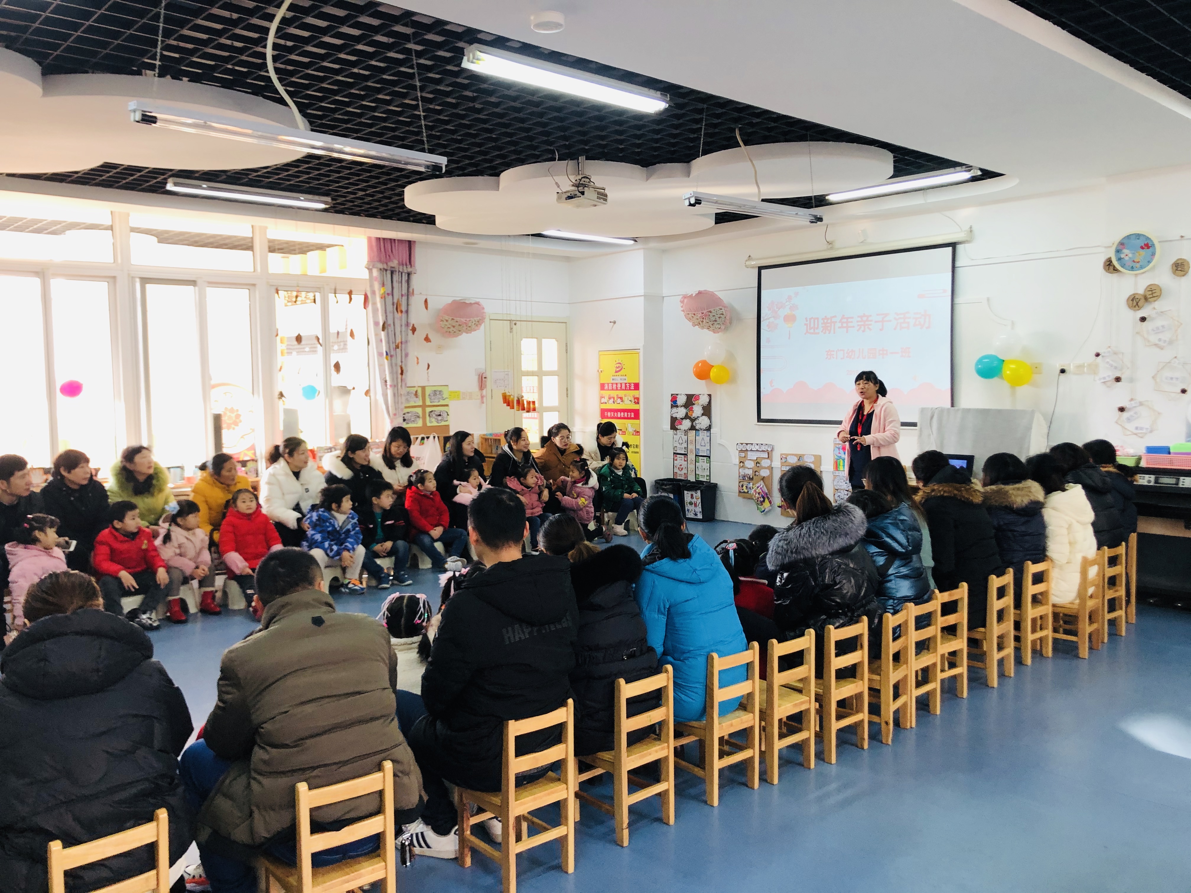 咚咚锵、咚咚锵、敲起锣鼓、放鞭炮、新的一年又来到!在这辞旧迎新的日子里,2019年12月31日, 东门幼儿园中一班的老师、家长朋友、小朋友们欢聚一堂,齐贺新的一年又来到。在辞旧迎新之际,我们满载着收获即将送走2019年,以饱满的精神与热情迎来新的一年。满怀着喜悦的心情,2019年12月31日上午迎来了庆元旦精彩亲子活动。