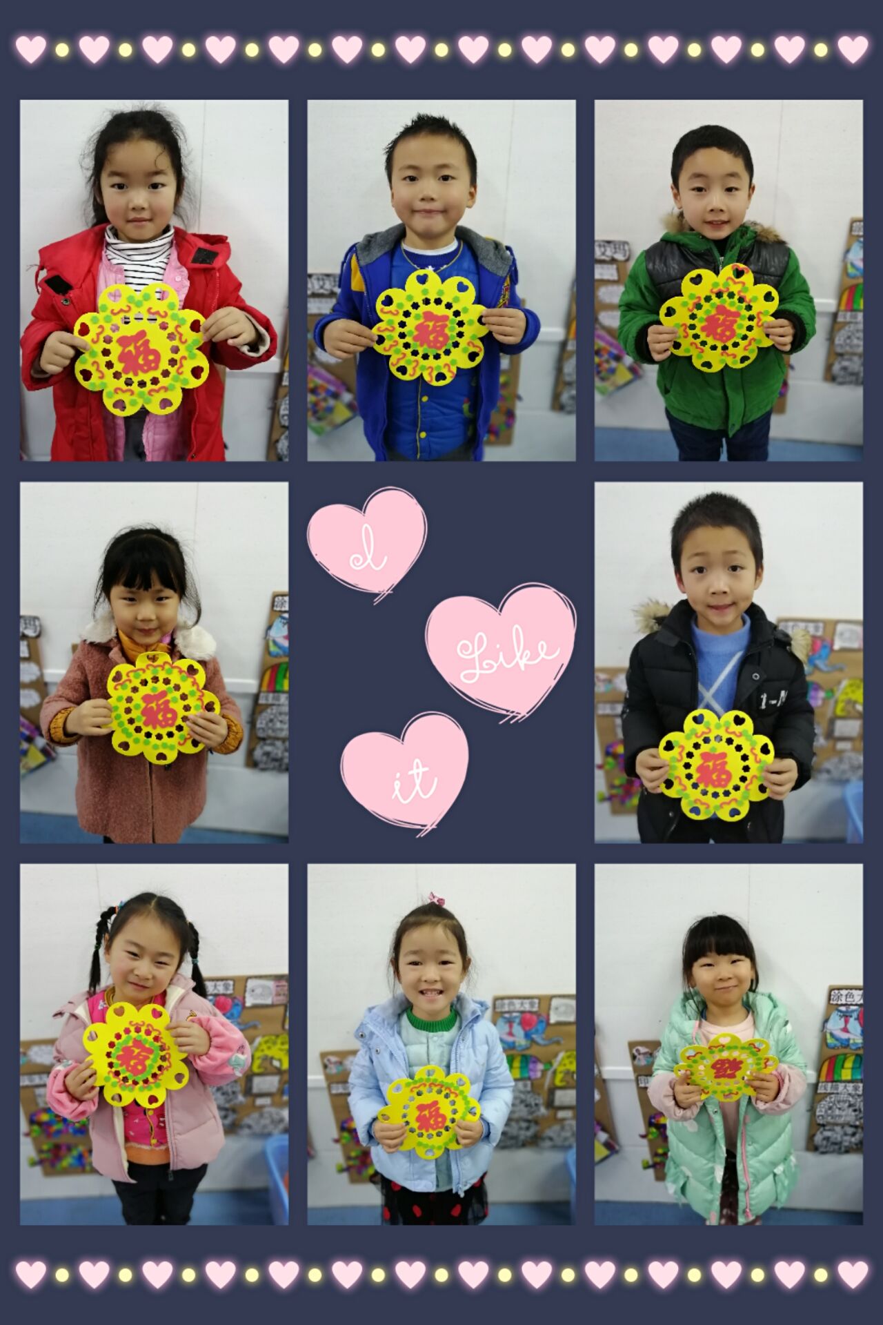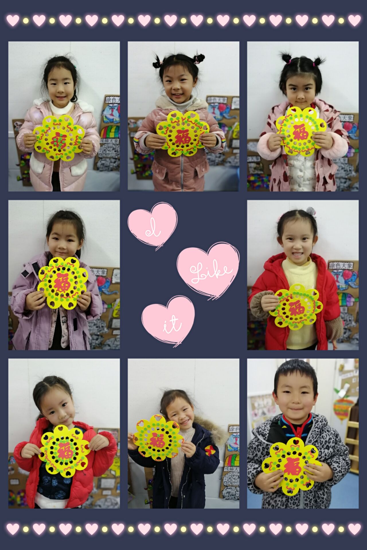 喜辞旧岁,笑迎新春。在2020年农历新年即将到来之际,我们中一班的小朋友在老师的指导下自己制作“福”字,孩子们专心地做福字,沉浸在对新春美好地期待与祝福中,一个个福字传递着浓浓地年味。让孩子们感受着中国传统文化地无限魅力与乐趣。