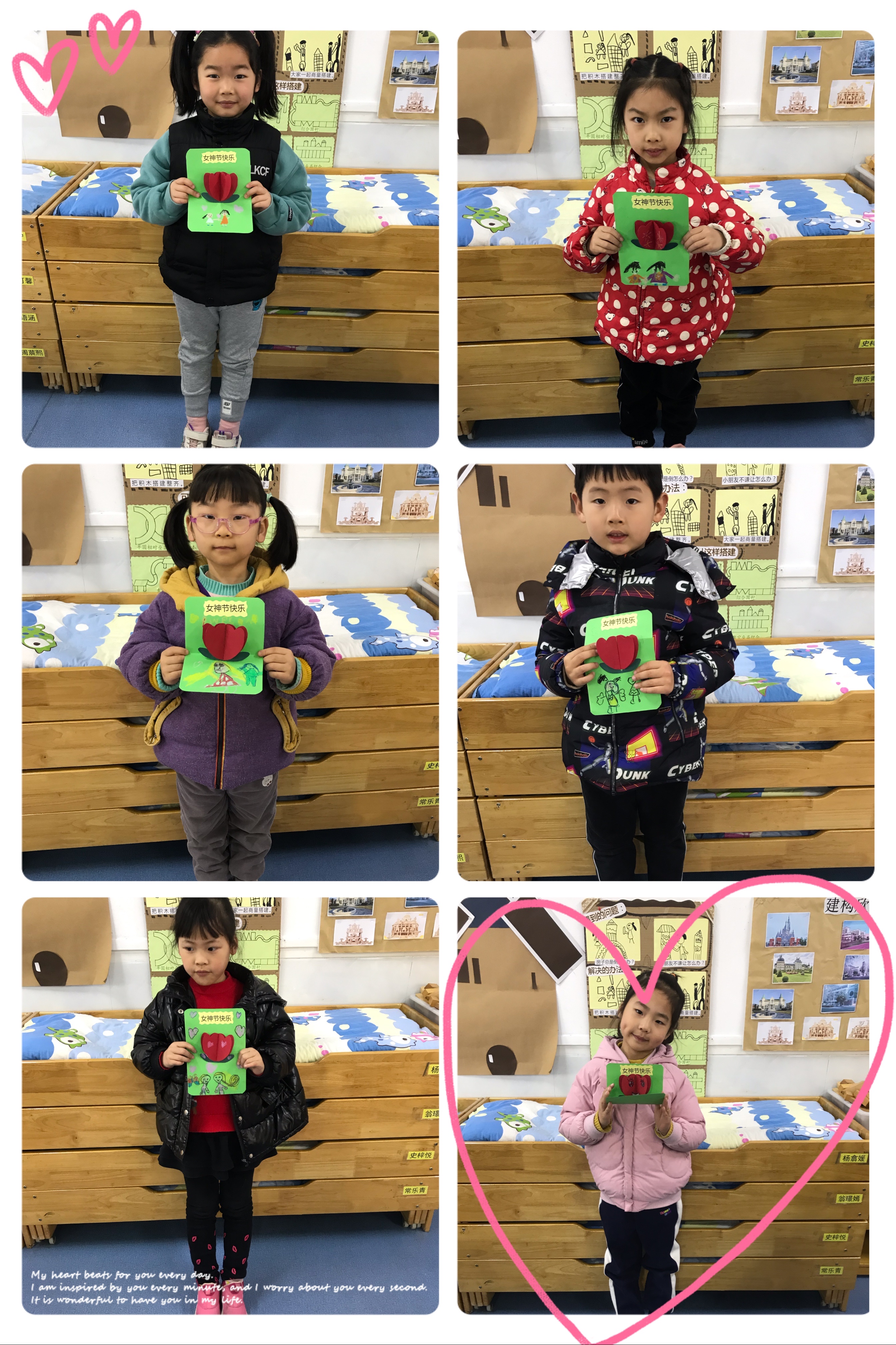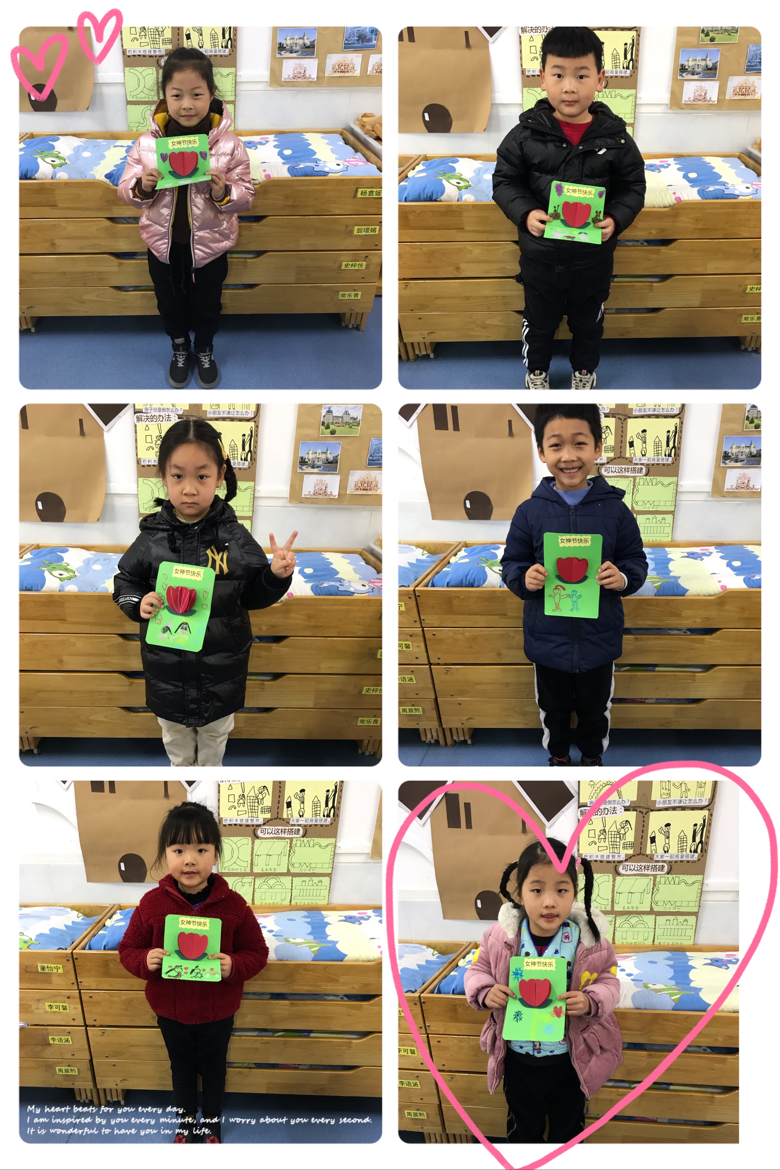老师相信,宝贝们一定会有更多的发自内心的创意,将最真挚的祝福送给爱你的妈妈、奶奶等长辈,陪伴她们度过一个最难忘的“三八妇女节”!