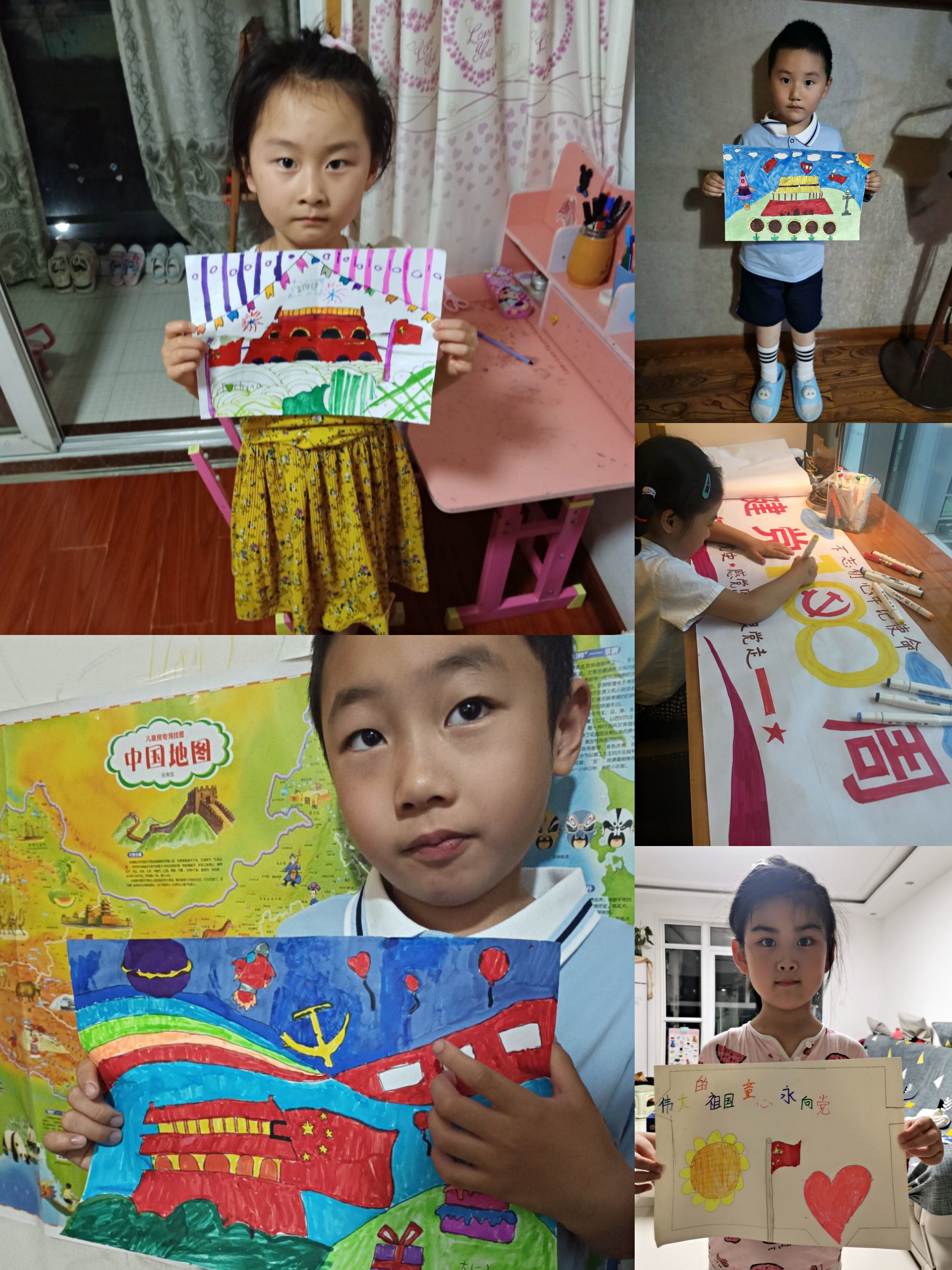 在“童心向党,礼赞百年”活动中,幼儿和老师一同用手中的画笔绘出对祖国的热爱,孩子们的每一幅作品都充满了丰富的想象力,画面生动活泼,充满童心童真童趣,孩子们用各种形式勾勒红色印记,用激情点燃爱国情怀,记录峥嵘岁月,描绘美好明天,为中国共产党建党100周年献上了一份特别的礼物!每个孩子心中都有一颗美的种子,每个孩子心中都有一个属于自己的世界,每个孩子心中都有一个艺术梦,让我们多给予孩子们更多创造的机会和条件,让他们用心去感受生活,用心去发现世界的美,用心去创作作品为建党100周年送上最美好的祝愿!