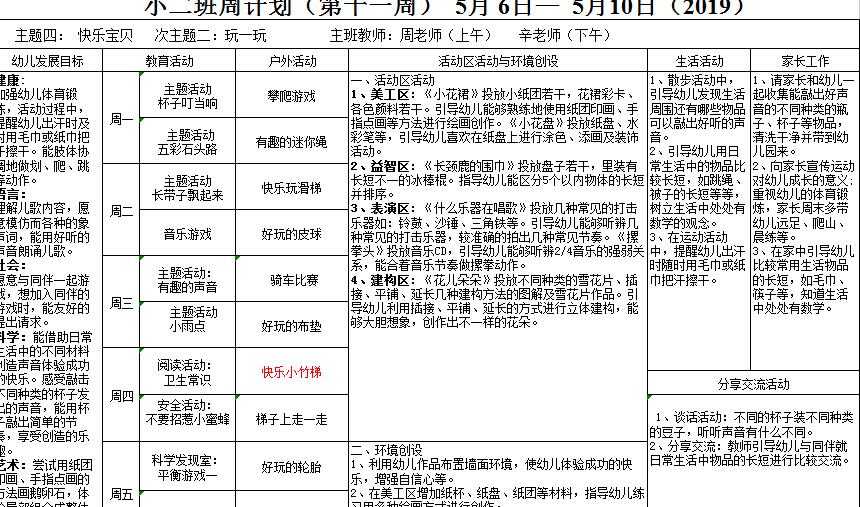 小二班第十一周教学安排