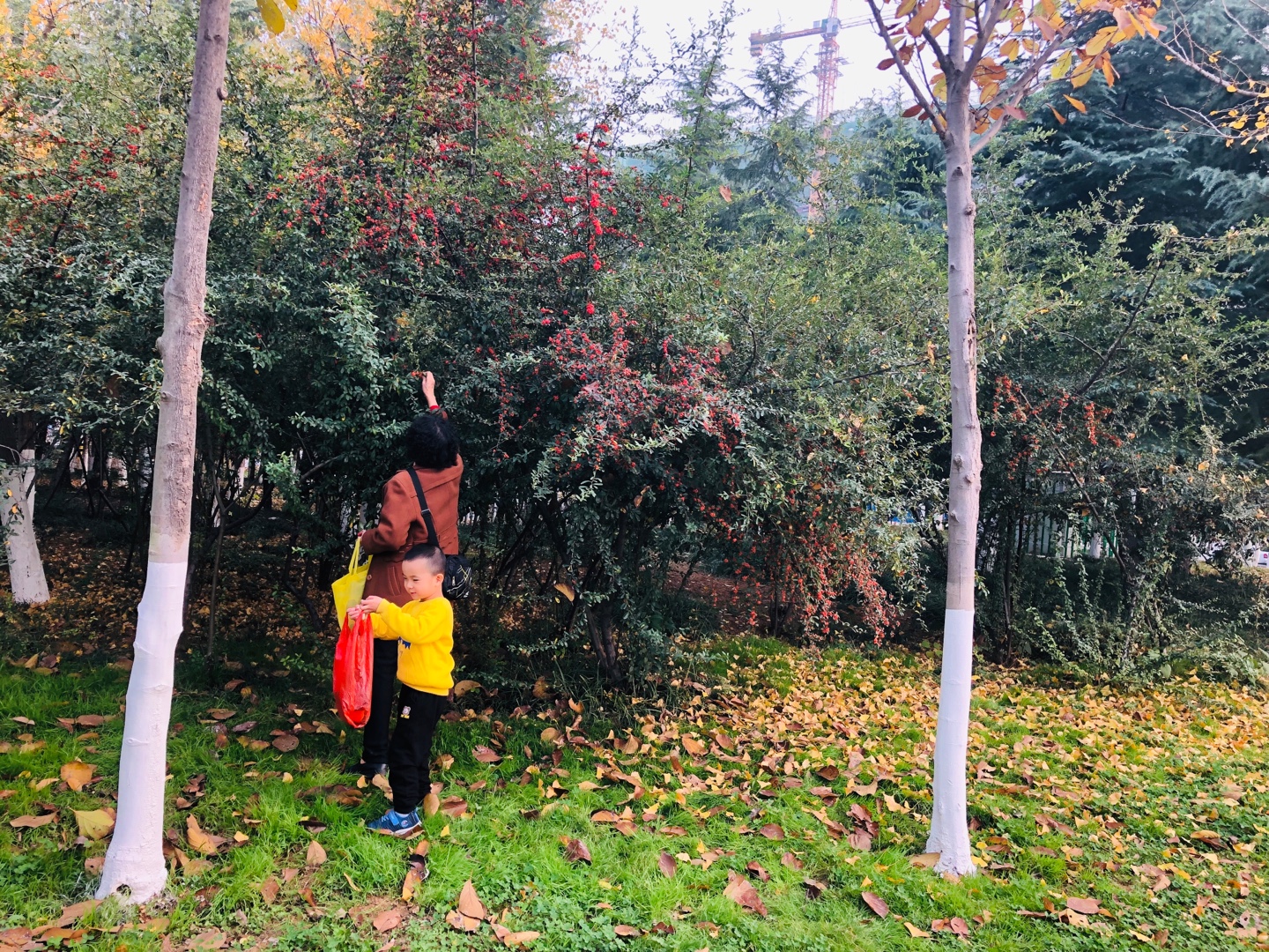 相片描述:开心捡树叶