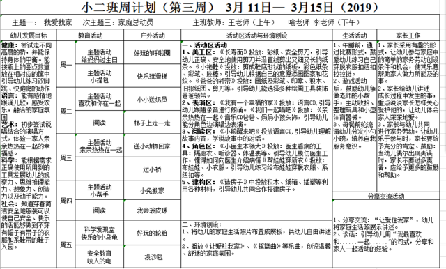 小二班周计划(第三周) 3月 11日— 3月15日(2019)