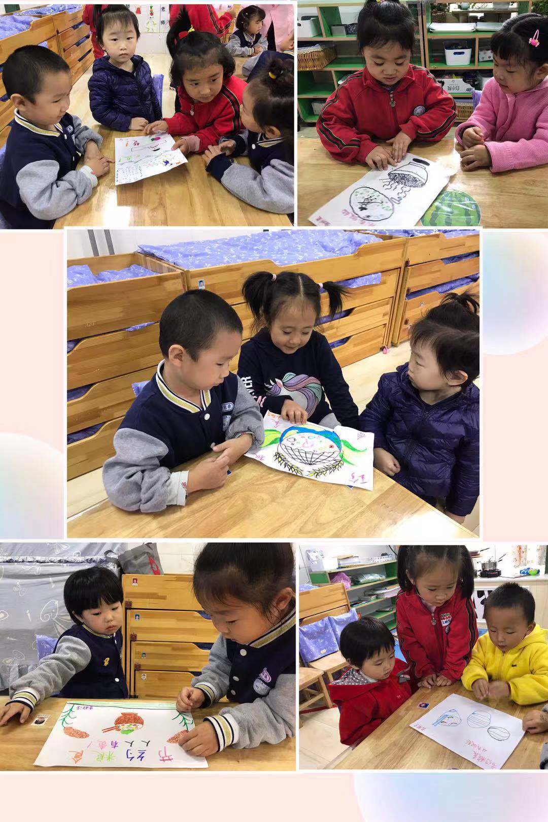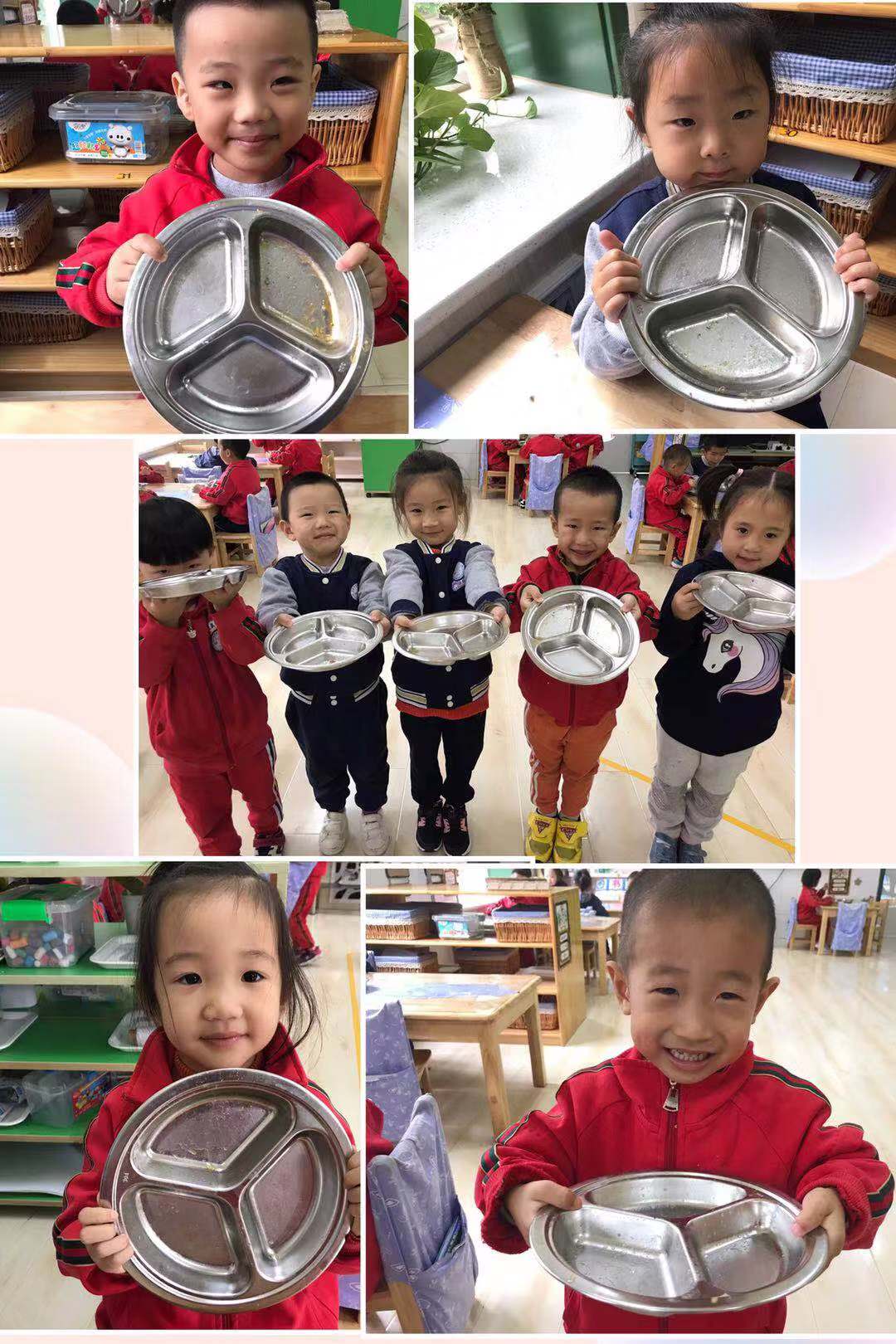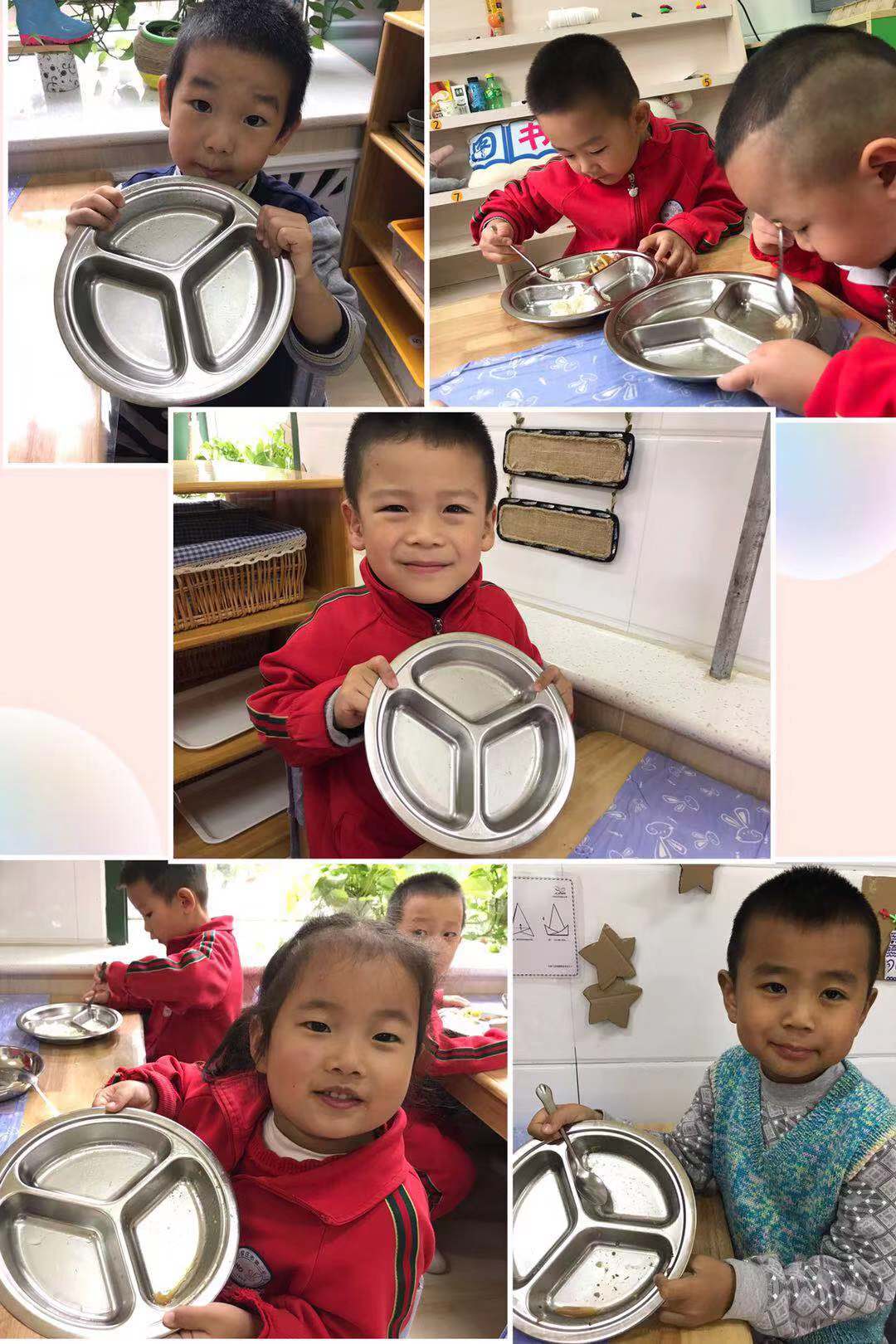 活动三:利用空余时间,孩子们拿上自己的作品走进班级,给哥哥姐姐、弟弟妹妹们介绍了自己的作品,把珍惜粮食的观念普及到每个幼儿心中。在幼儿园一日三餐中,孩子们做到了“光盘行动”。