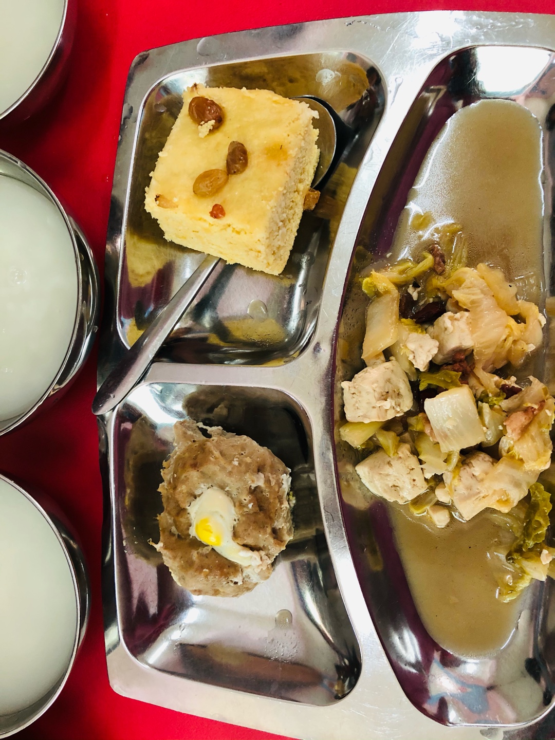 相片描述:发糕 肉炖青菜豆腐 太阳肉