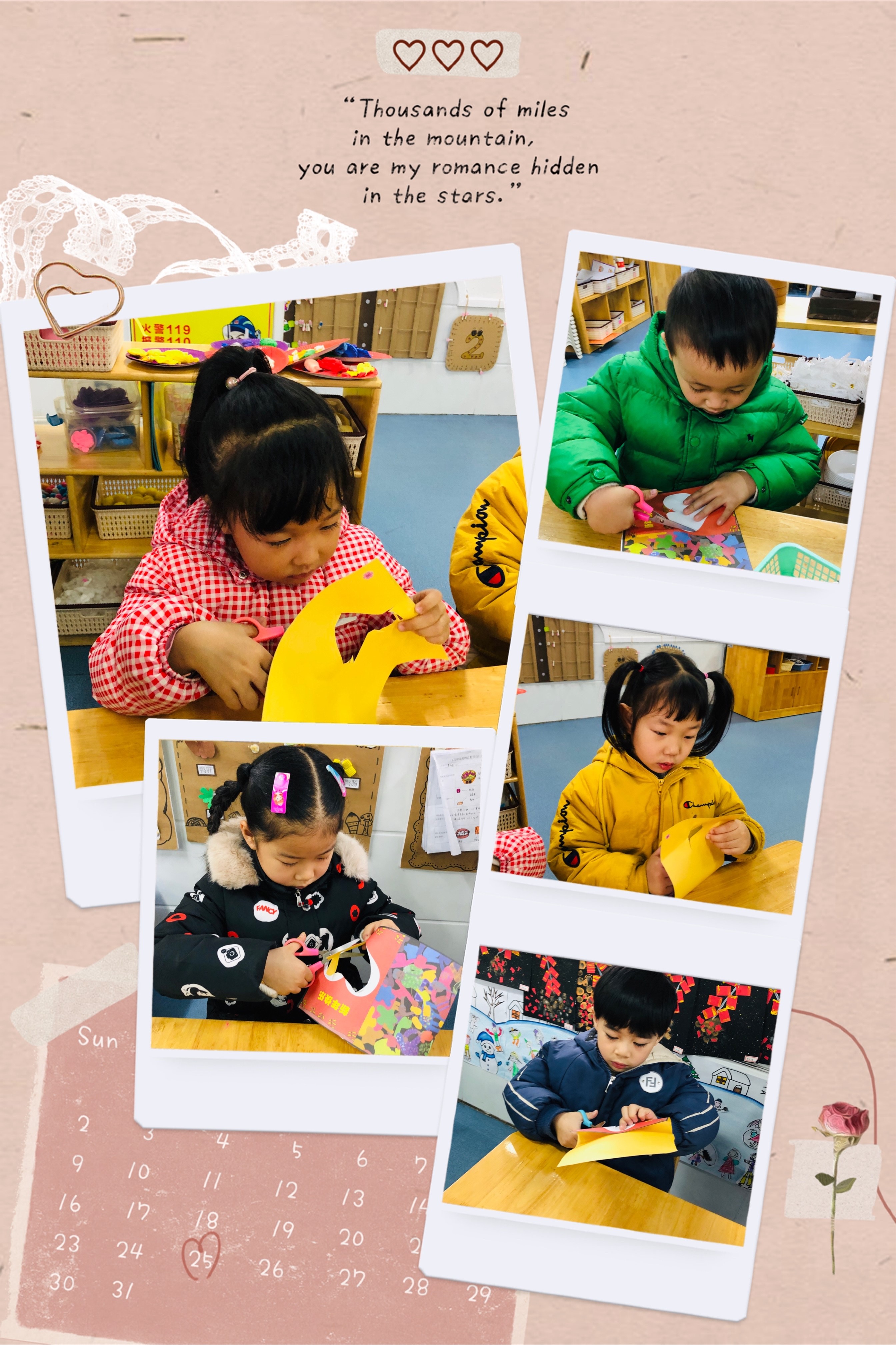 寒假来临之际,为了让孩子们感受到新年的温馨气氛,弘扬传统民族文化,同时也懂得做一个感恩的人。我们开展了 “贺卡传情,学会感恩”贺卡制作活动,让孩子们学会用自己的方式送出祝福,师幼一起营造“爱”的气氛,开展“爱”的教育。 每个小朋友都用自己喜欢的方式表达着对妈妈,爷爷,奶奶,老师的爱,每个小朋友把自己精心准备的贺卡送给了自己亲爱的家人。让我们一起见证孩子们的成长,祝愿孩子们在新的一年里身体棒棒哒。