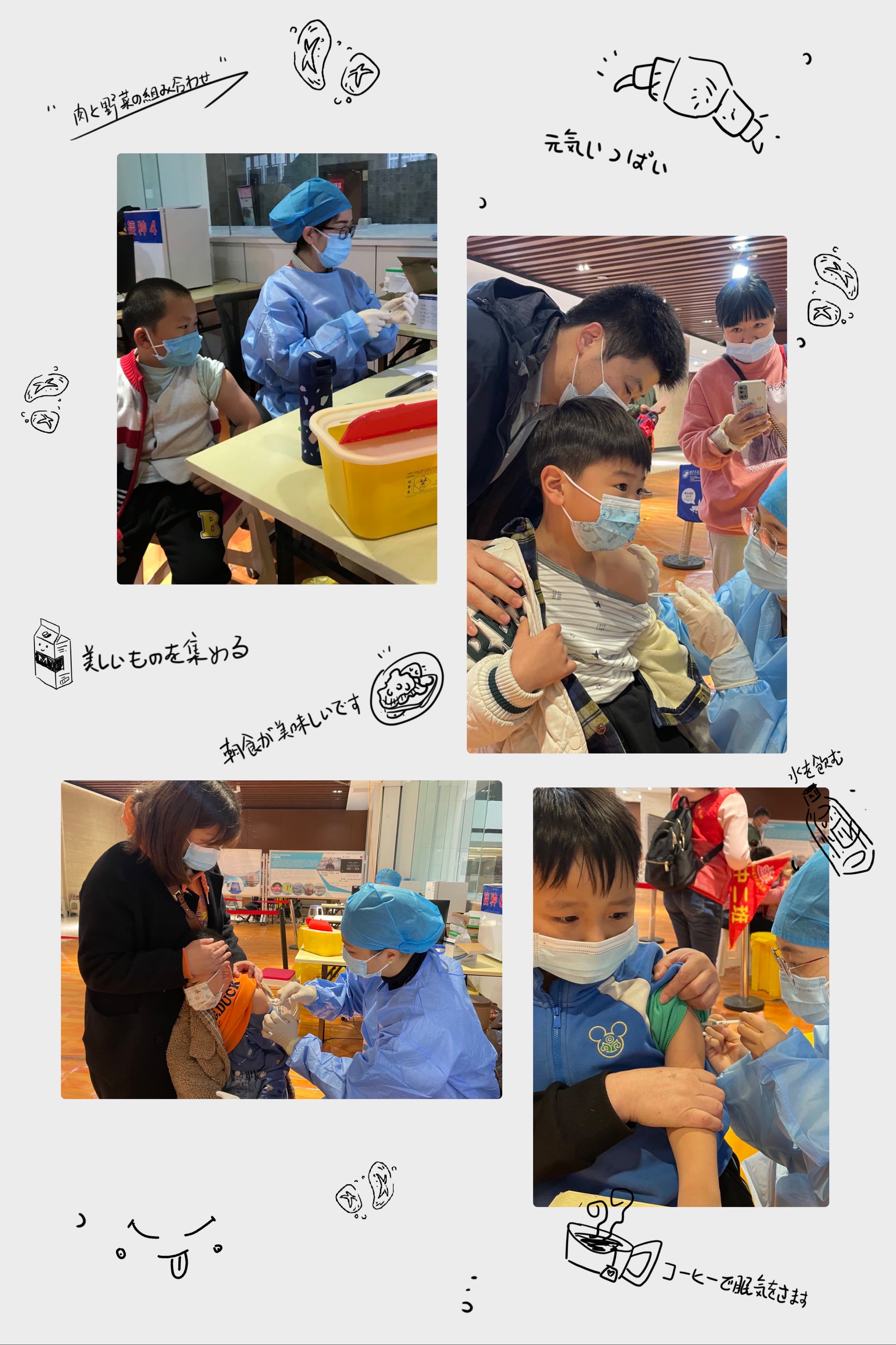 虽然有些害怕,也可能会哭闹,但是在爸爸妈妈和老师的鼓励下,我们都勇敢的伸出了手臂,今天我们都是小勇士!