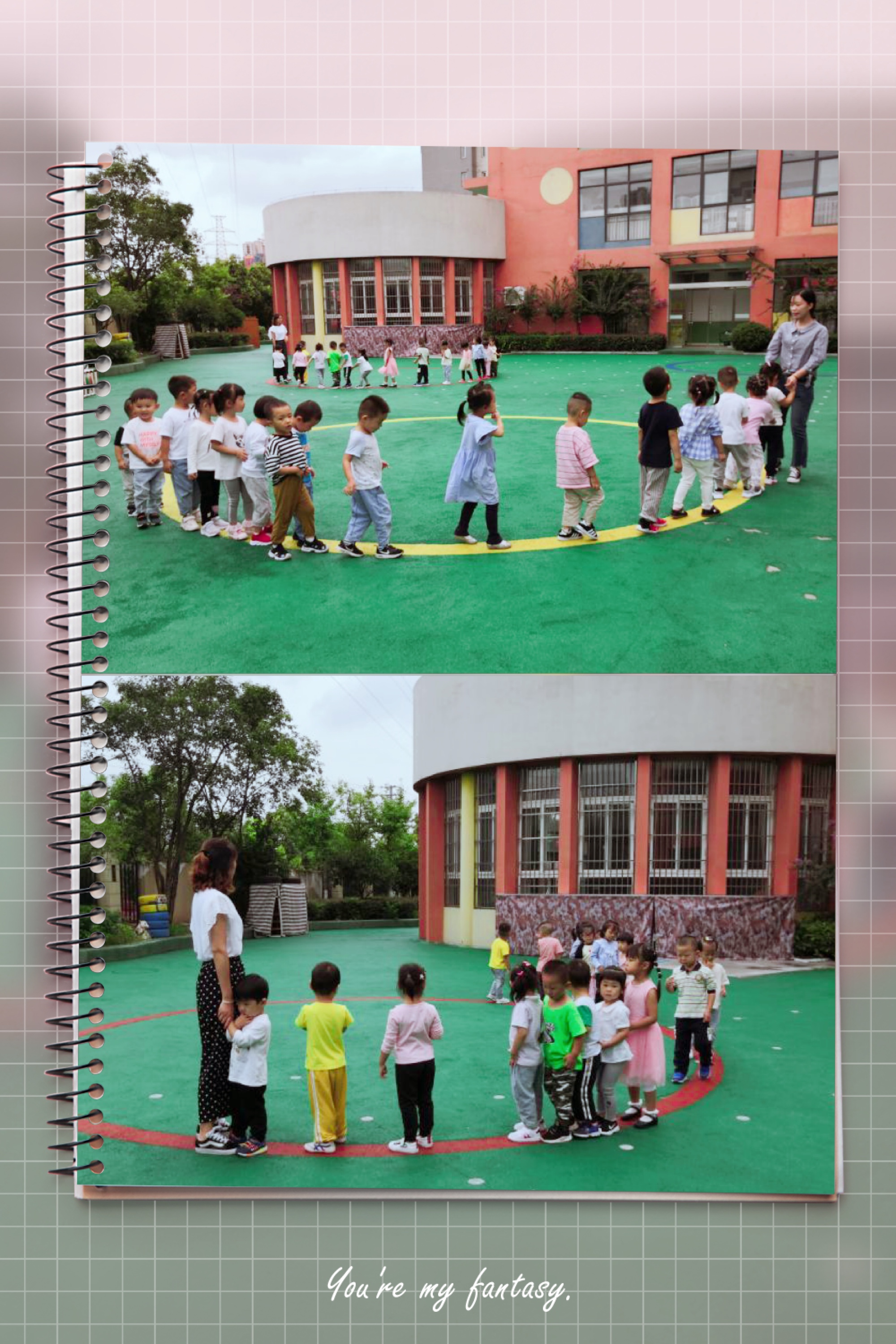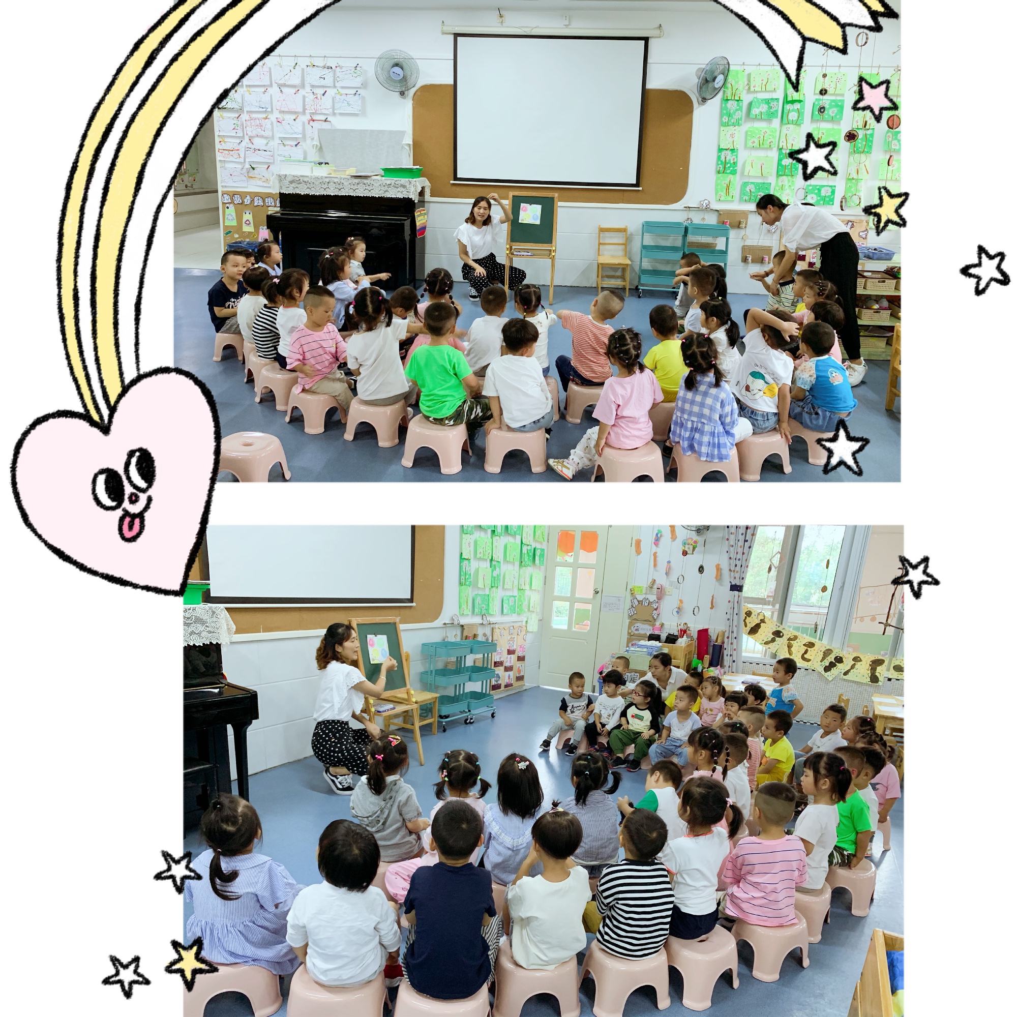 在老师的帮助下,我们学会了搬凳子坐半圆玩游戏。