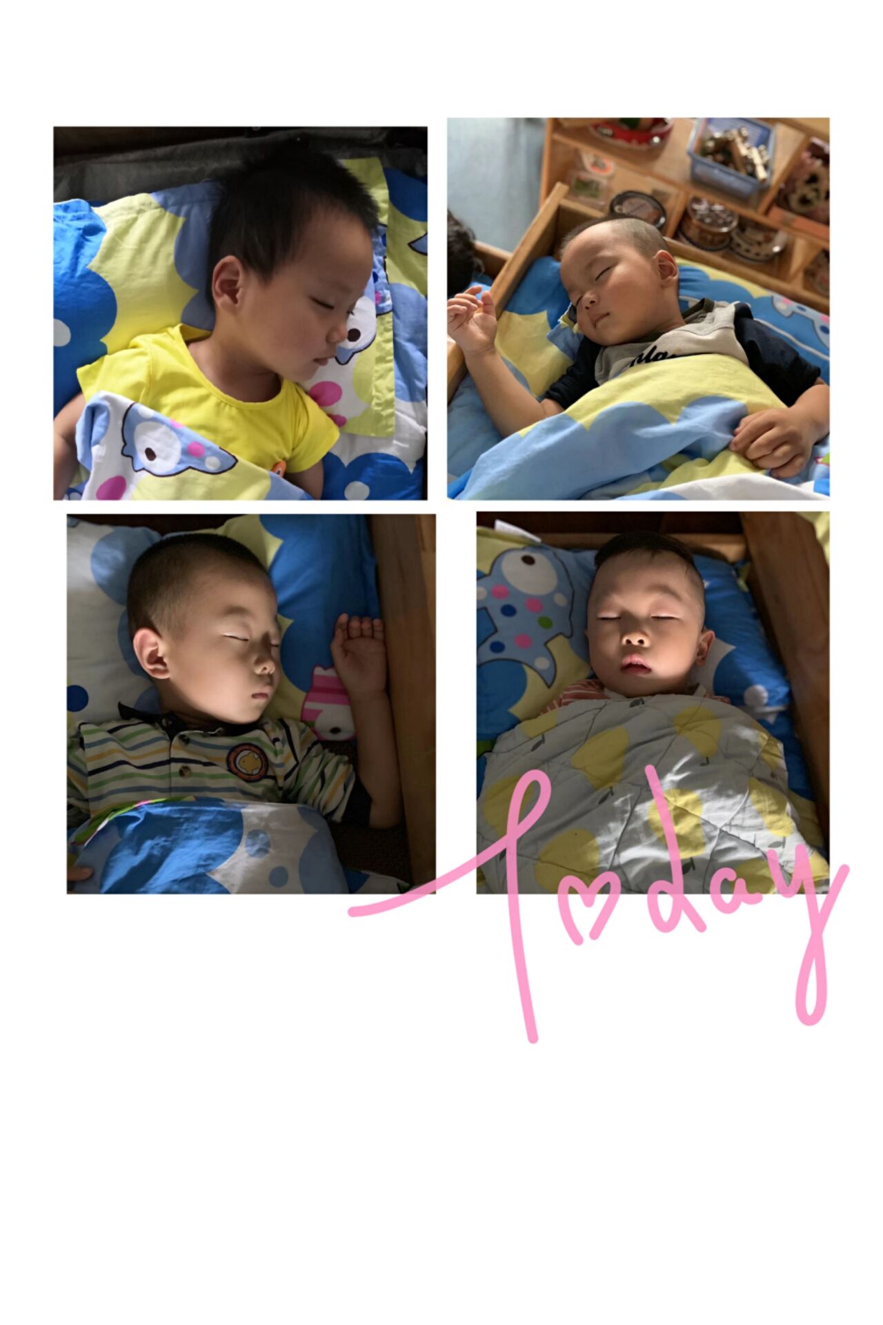 离开了爸爸妈妈,我第一次独自睡午觉了,老师的陪伴让我不再害怕,我可以进入香甜的梦乡!