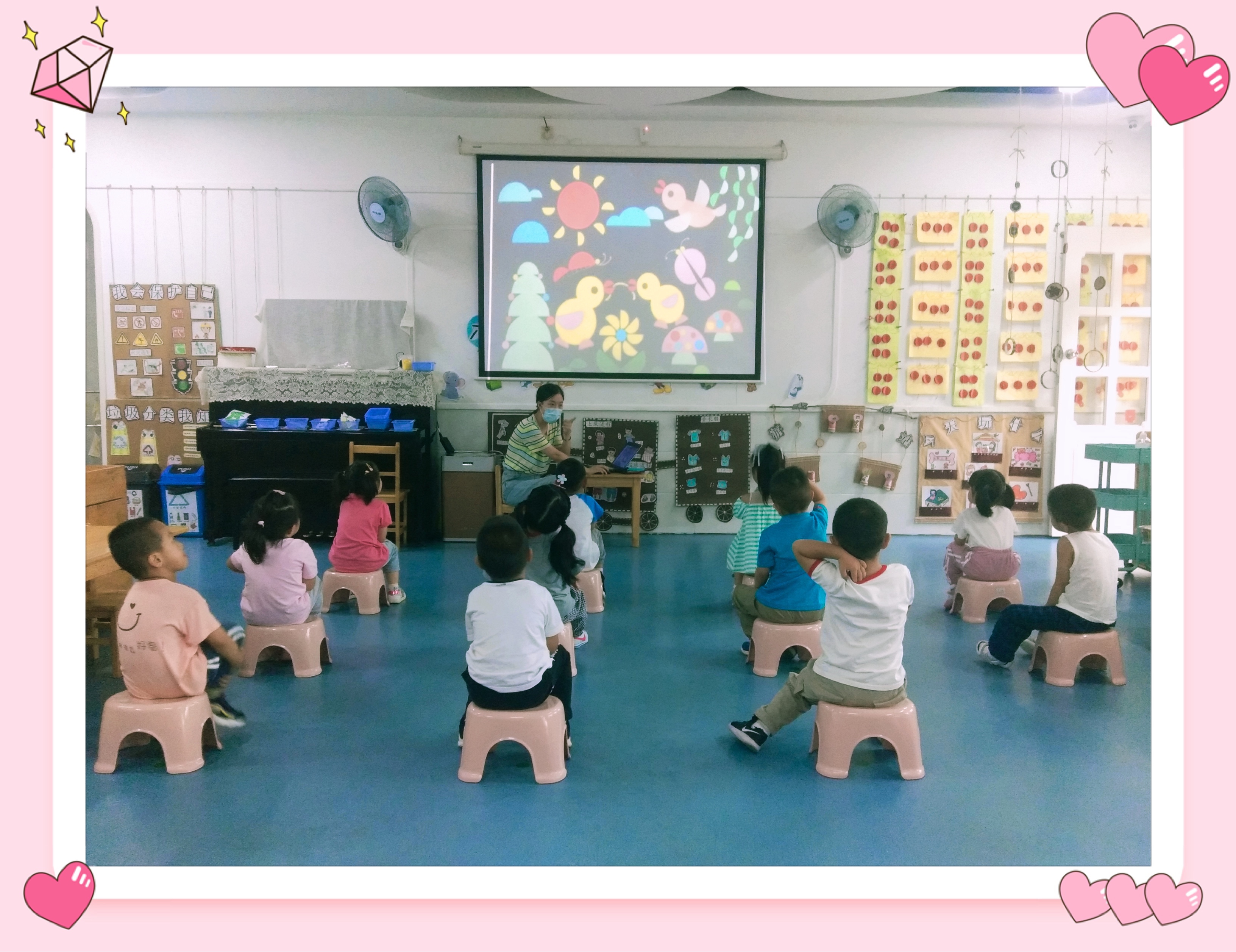 本周,我们开展了一节数学活动:好玩的拼图。活动一开始,通过游戏“猜猜看”导入,复习对三角形,正方形,圆形的认识。有的小朋友说:“这个圆形宝宝和太阳公公的形状一样。”有的小朋友说:“这个正方形宝宝和桌子的形状一样。”孩子们对图形宝宝充满了兴趣。