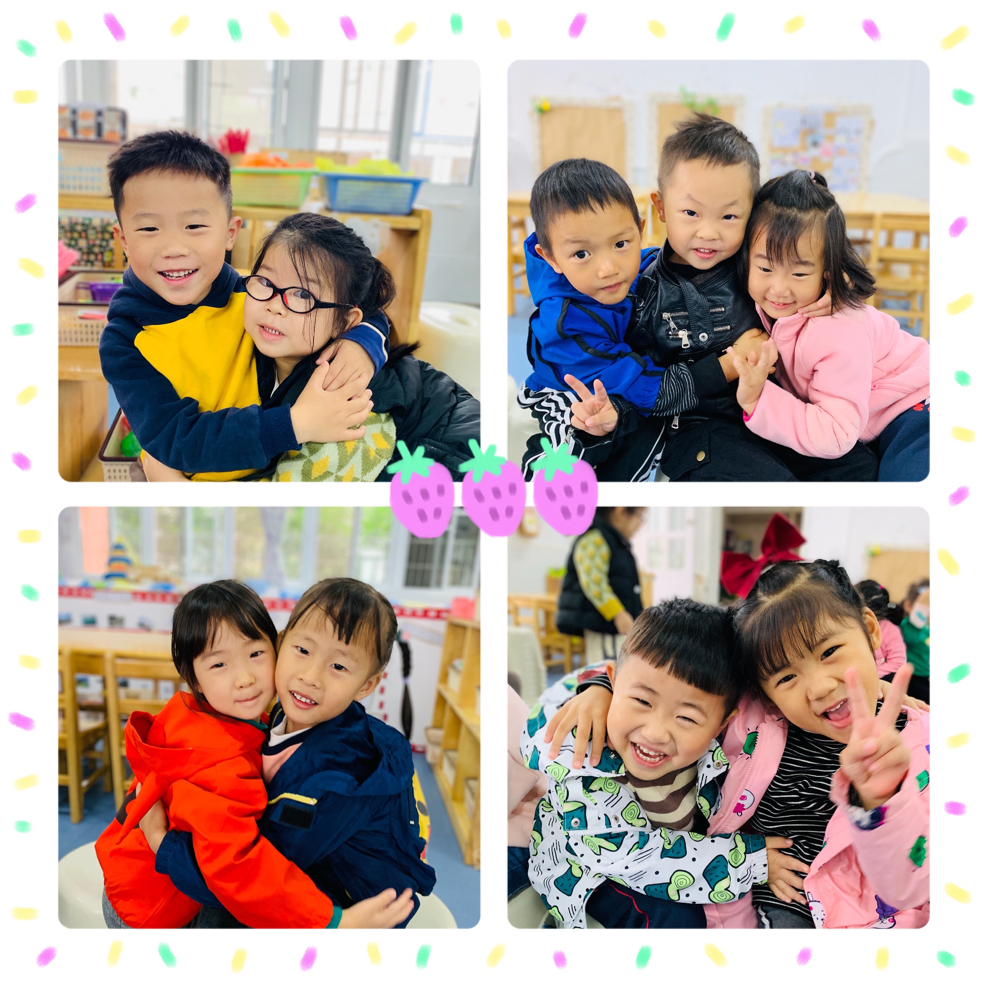 开展这节活动,不仅仅因为被故事中两只兔子朴素而真诚的话语所感动,更多是它们用形象的动作、通俗的语言诠释和表达了相互之间的爱,以及蕴含的爱意震撼人心。在阅读和表达绘本的过程中,能让幼儿学会表达爱。并且通过学习爱,让幼儿发现身边的所爱的人,并思考用怎样的行动爱他们!
