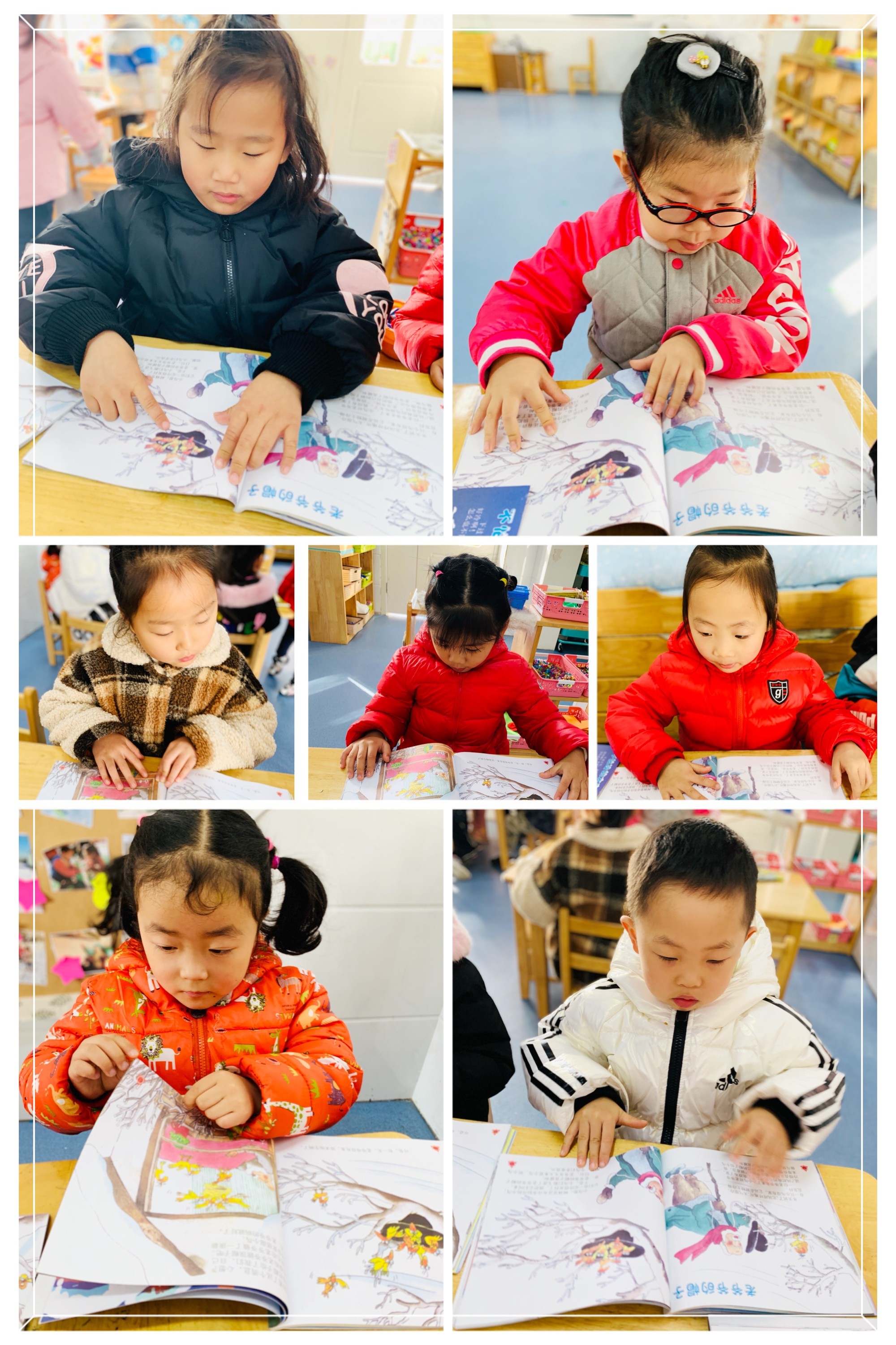 冬天来了,天气很冷,我们带上了帽子和手套,那老爷爷的帽子会发生什么故事呢?瞧,我们小朋友们正在认真的看呢!