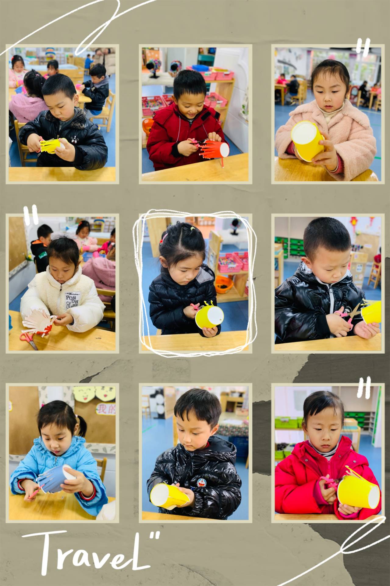 材料准备:一次性纸杯、彩笔、剪刀。