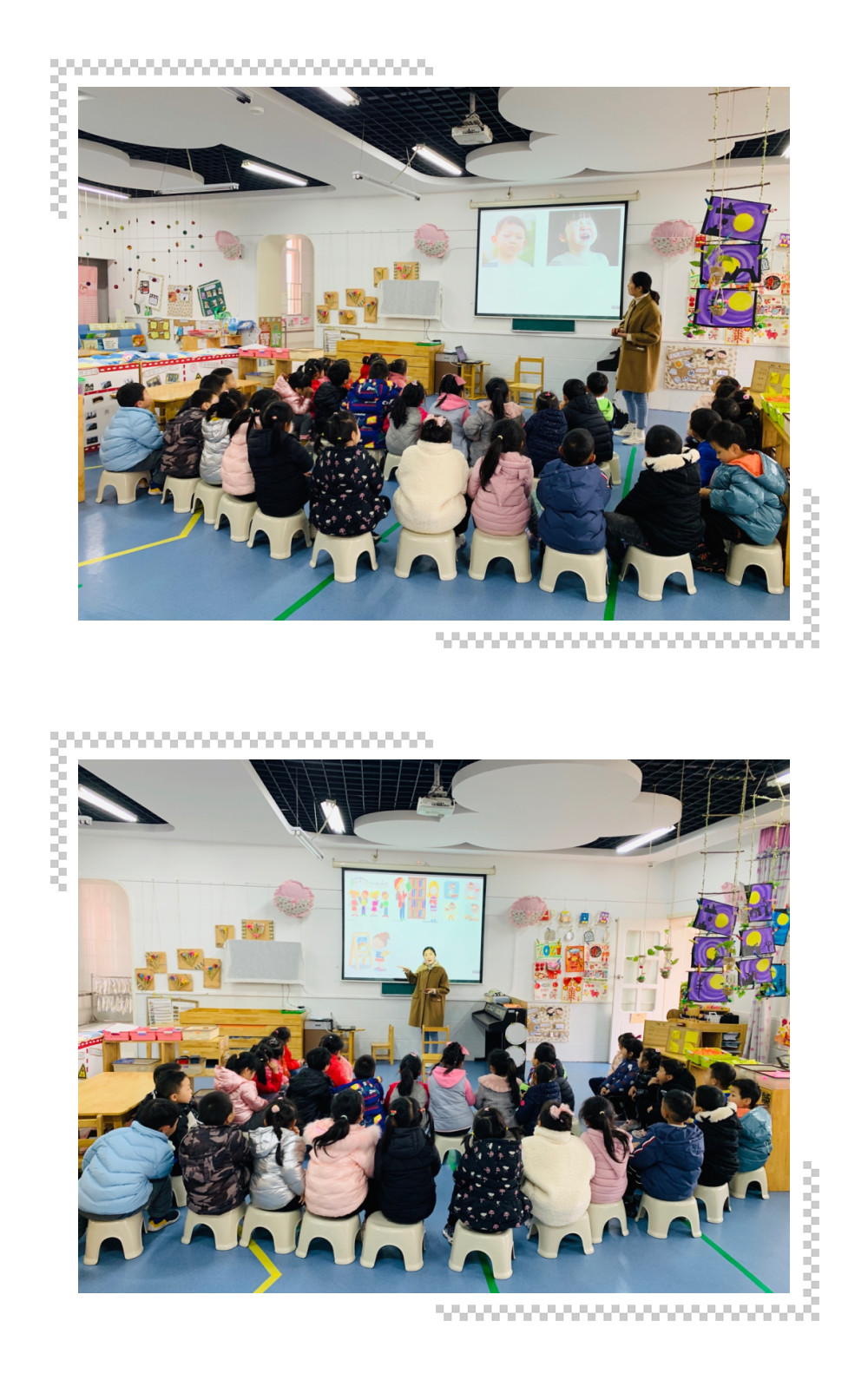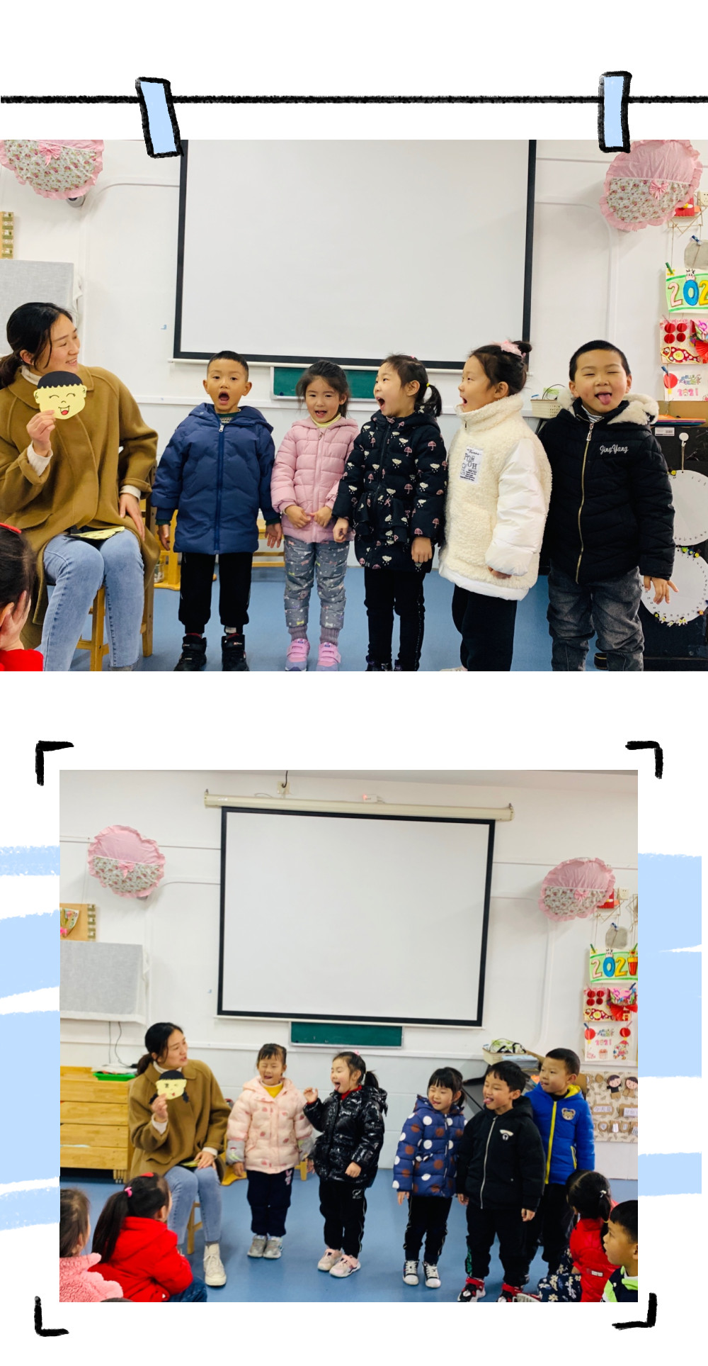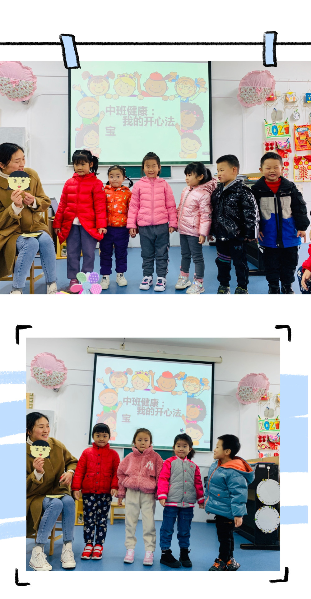 整个活动达到了预期的教育目标,孩子们感知了人的多种情绪,能与同伴交流、分享让自己高兴的办法;活动中孩子们乐意用语言、动作等来表现自己的情绪。