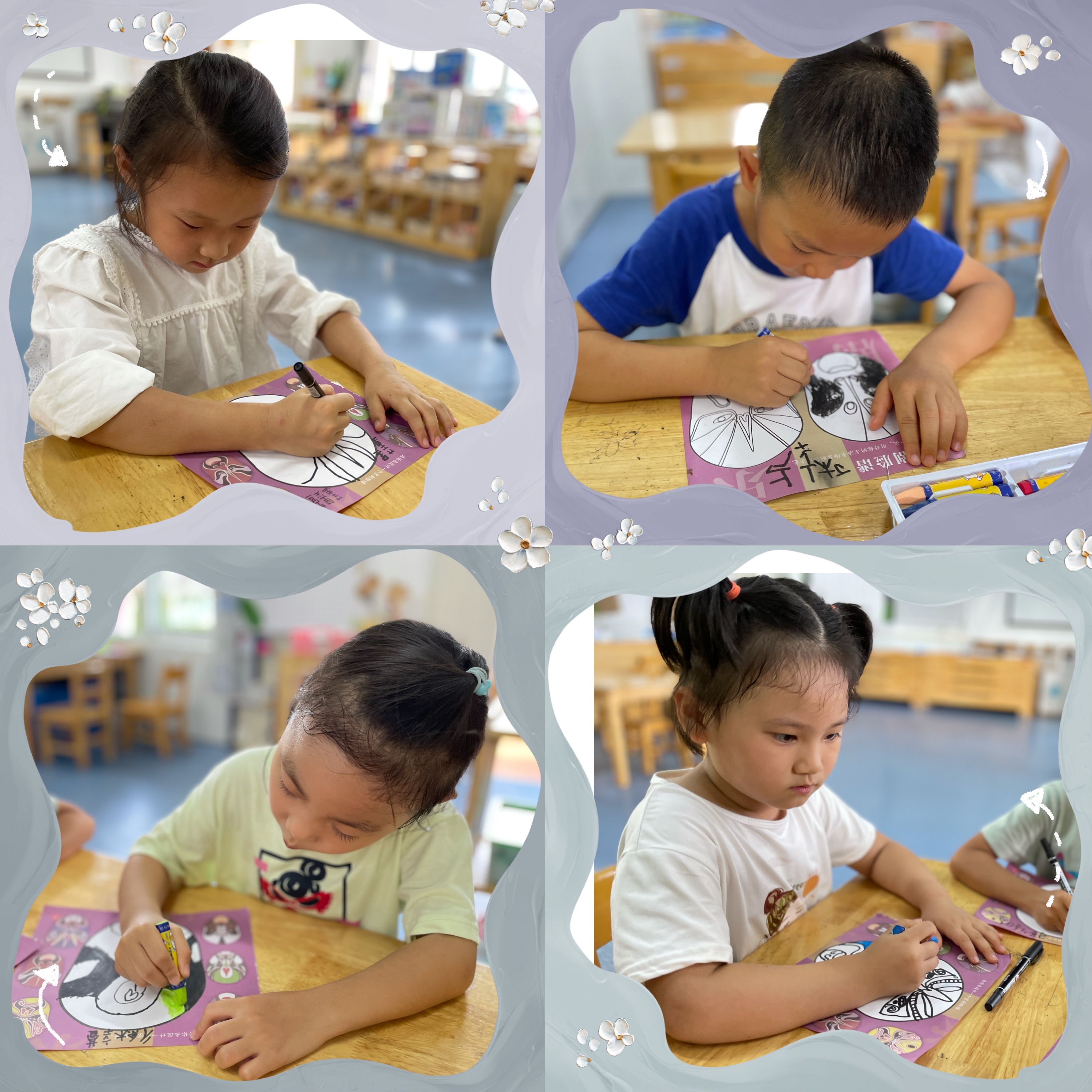 小小画笔手中拿,小朋友们都在认真的制作属于自己的脸谱。