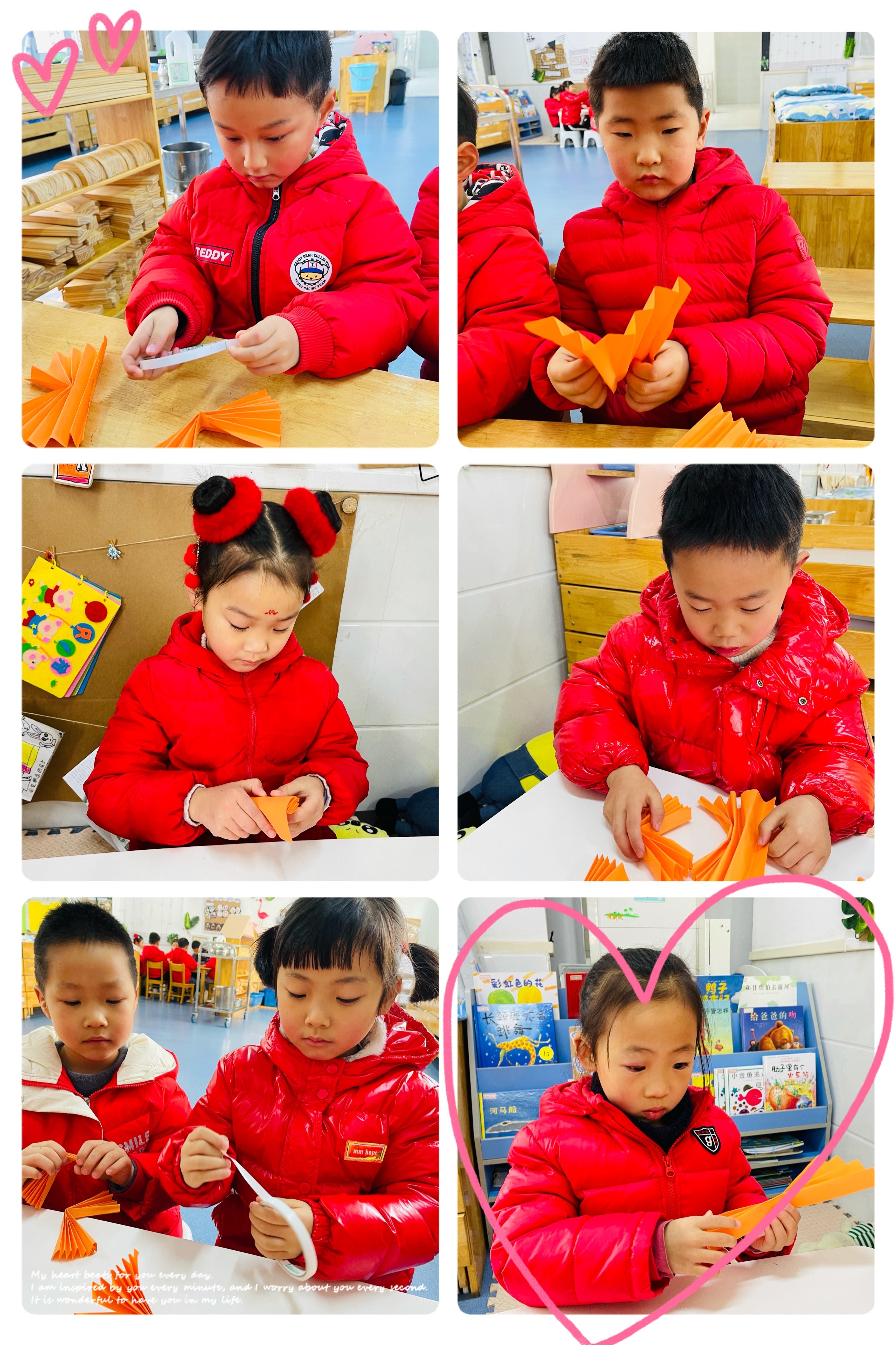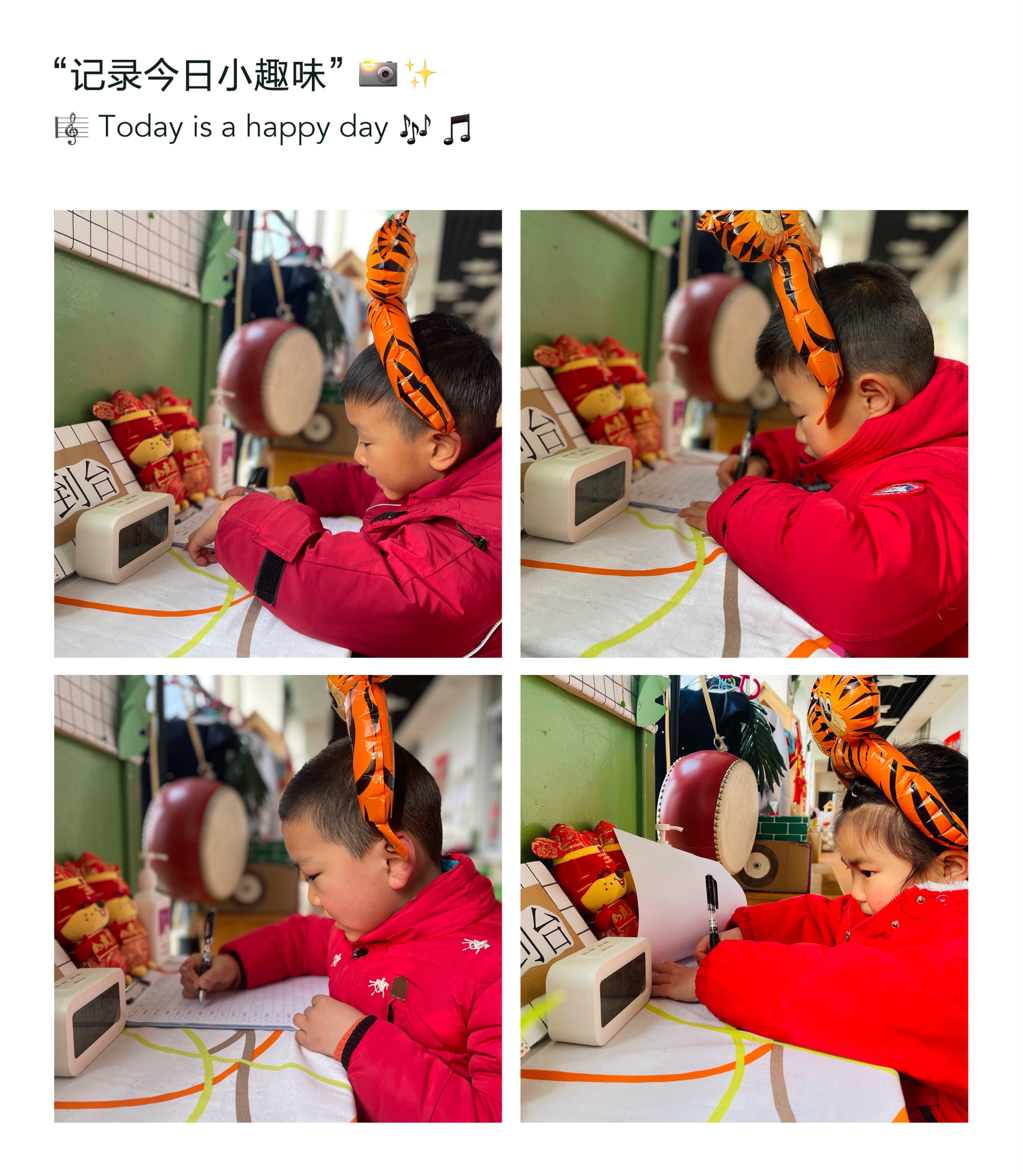 老师们精心准备了开学第一课,孩子们在喜庆的节日氛围中动手制作可爱的小老虎,看我们做得多认真啊!