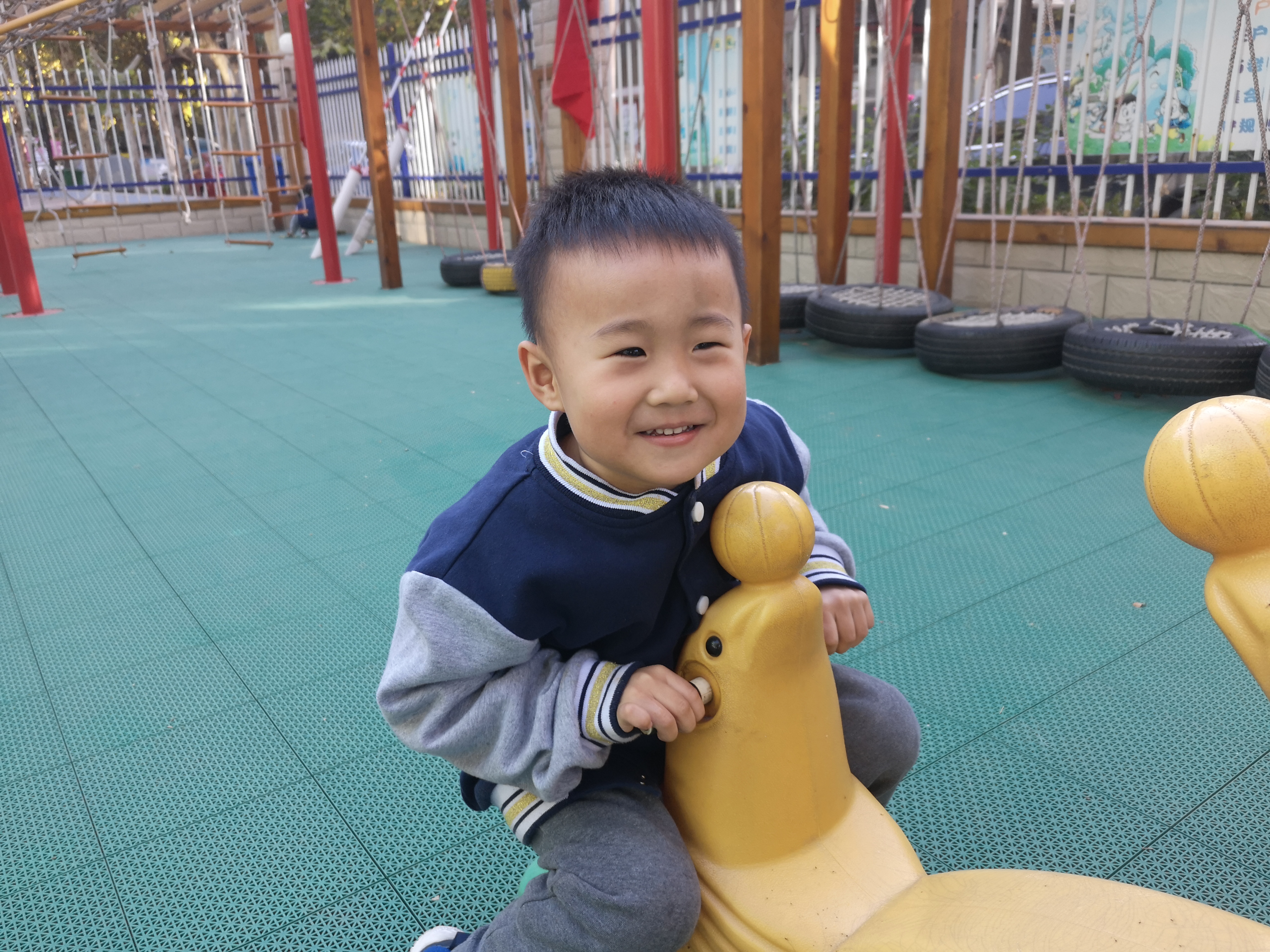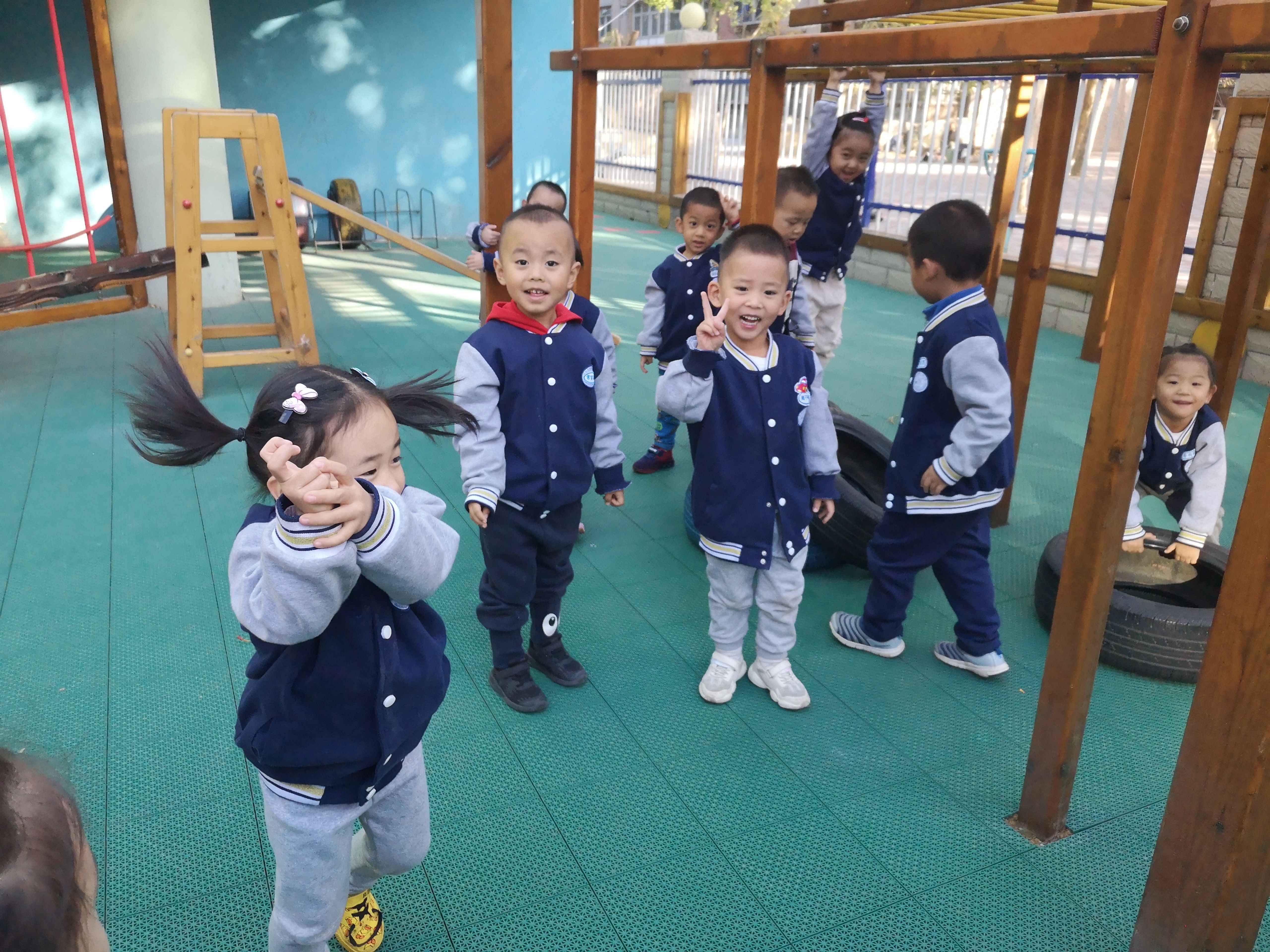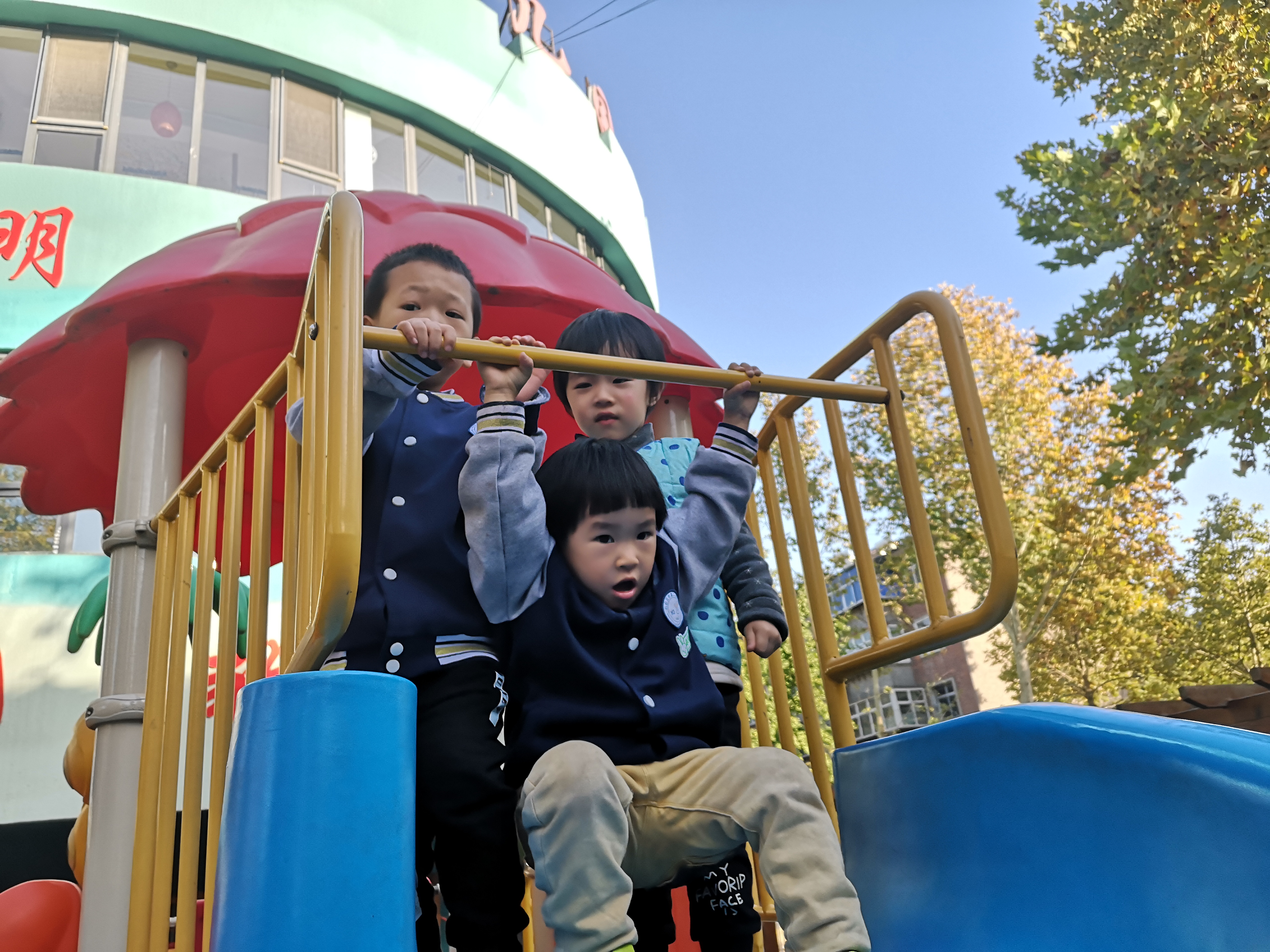 大型器械区——孩子们口中的“游乐场” 迎着秋日的阳光,今天带着我们苗二班的小可爱们来到了他们最最喜欢的场所大型器械区,就是孩子们口中的“游乐场”,在这里可以看到他们一张张稚嫩纯真的小脸上挂着微笑,在这里他们还可以学会一起合作游戏,在这里还可以找到自己的玩伴,对可爱的孩子们来说简直棒极了! “游乐场”里有孩子们最最喜欢的大滑梯、秋千、爬坡等等,这里可以见证他们在幼儿园三年的身体变化,可以见证他们在幼儿园三年来收获的友谊,还可以见证他们与同伴一起玩耍,一起游戏。 为了让小朋友在幼儿园得到更多的锻炼和成长,我们会每周在计划里合理地安排孩子们在大型器械区游玩的时间及次数,下面就让我们一起看一看孩子们在“游乐场”里开心快乐的笑容吧!