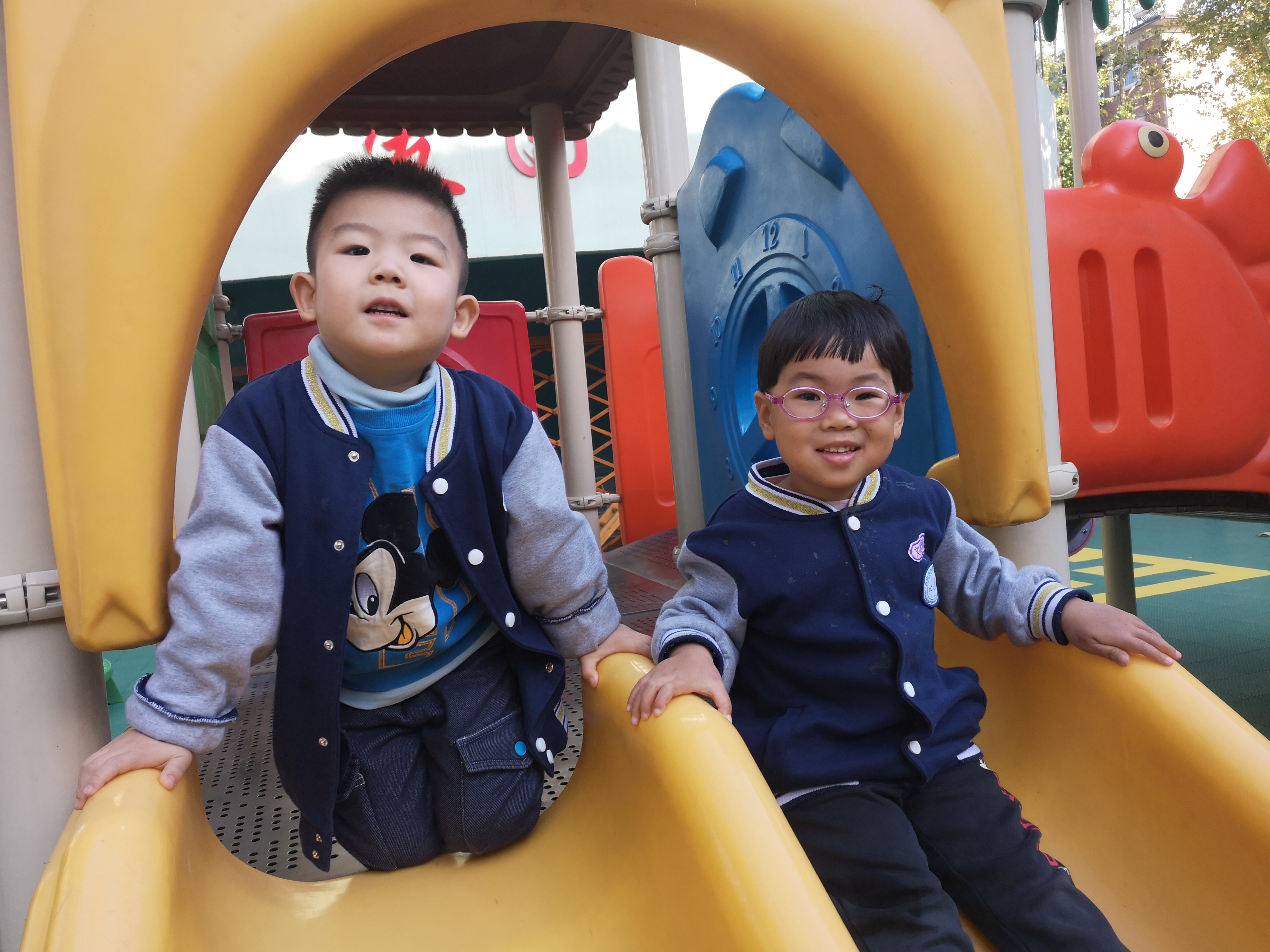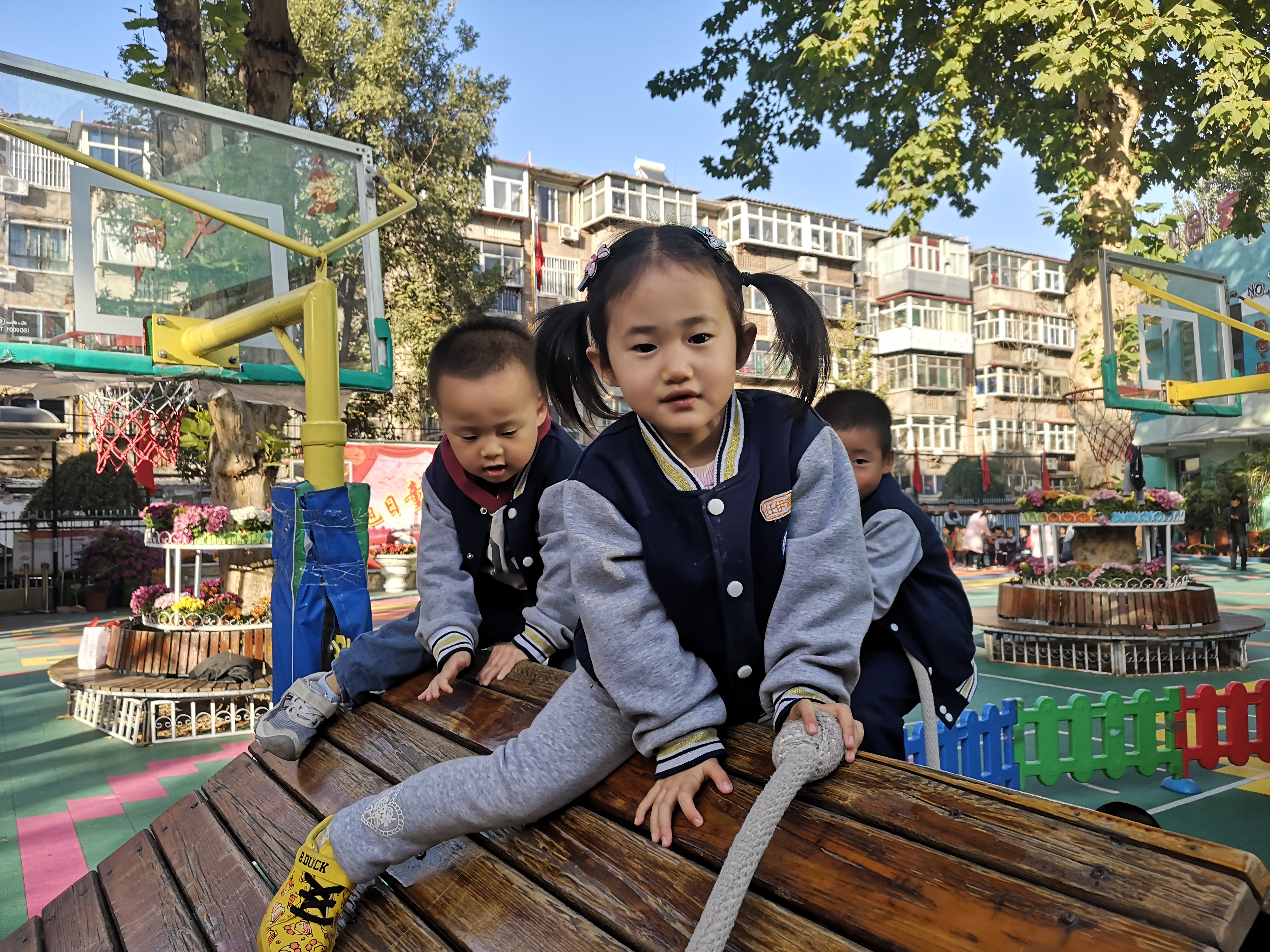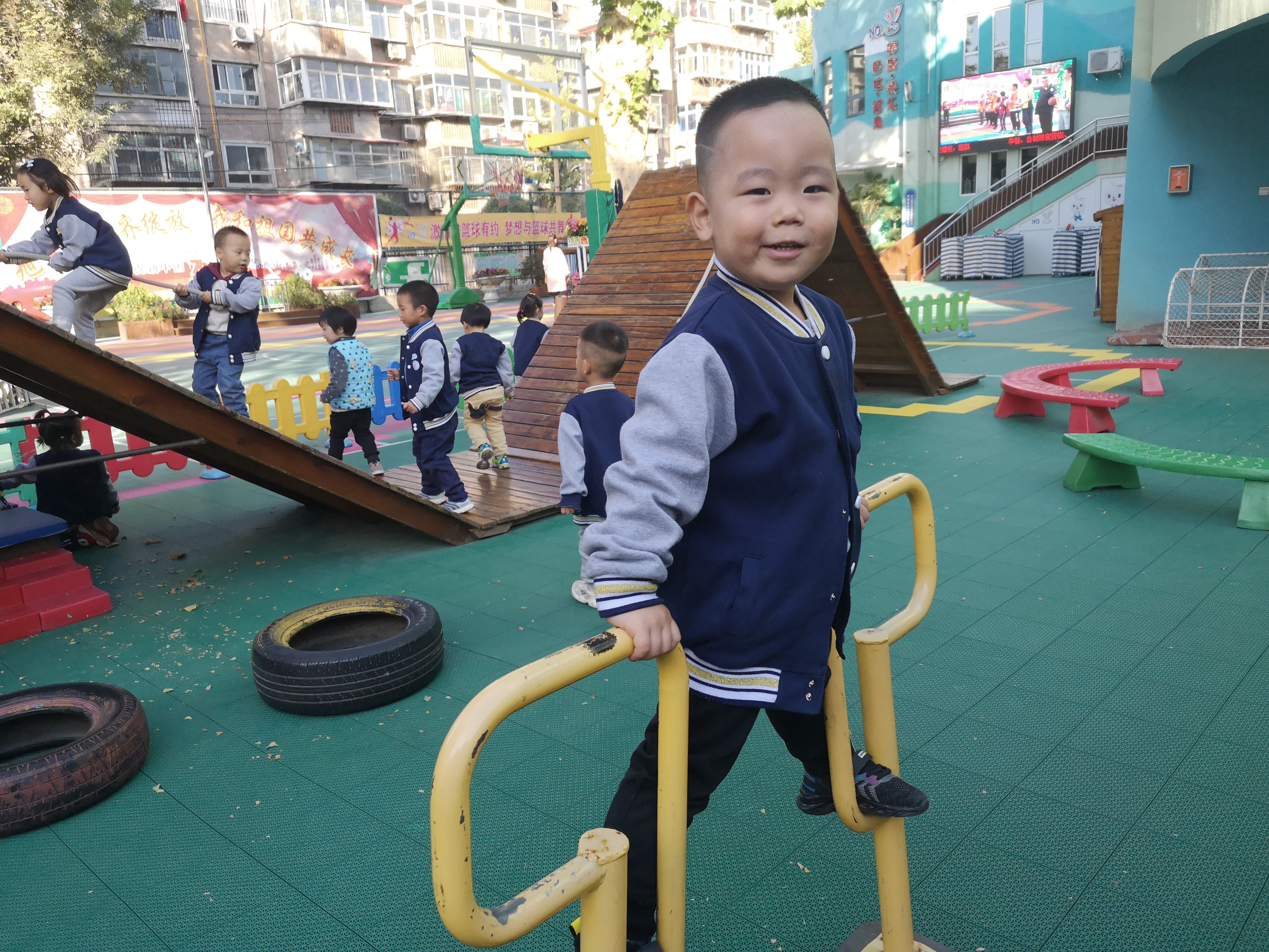大型器械区——孩子们口中的“游乐场” 迎着秋日的阳光,今天带着我们苗二班的小可爱们来到了他们最最喜欢的场所大型器械区,就是孩子们口中的“游乐场”,在这里可以看到他们一张张稚嫩纯真的小脸上挂着微笑,在这里他们还可以学会一起合作游戏,在这里还可以找到自己的玩伴,对可爱的孩子们来说简直棒极了! “游乐场”里有孩子们最最喜欢的大滑梯、秋千、爬坡等等,这里可以见证他们在幼儿园三年的身体变化,可以见证他们在幼儿园三年来收获的友谊,还可以见证他们与同伴一起玩耍,一起游戏。 为了让小朋友在幼儿园得到更多的锻炼和成长,我们会每周在计划里合理地安排孩子们在大型器械区游玩的时间及次数,下面就让我们一起看一看孩子们在“游乐场”里开心快乐的笑容吧!
