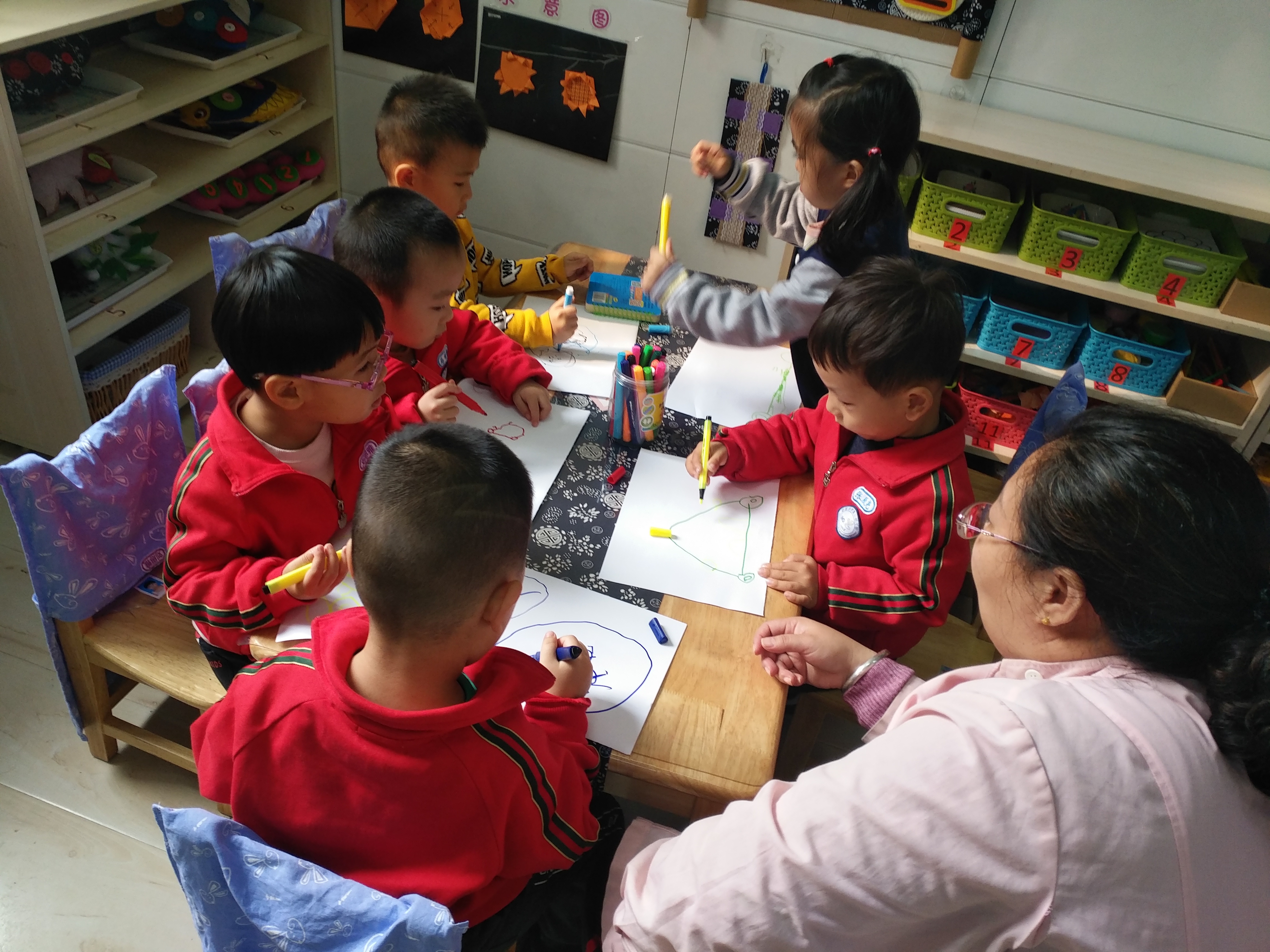 趁热打铁,观察完以后我们对汽车进行的总结,开始了《车展》这一主题的第一次绘画活动。