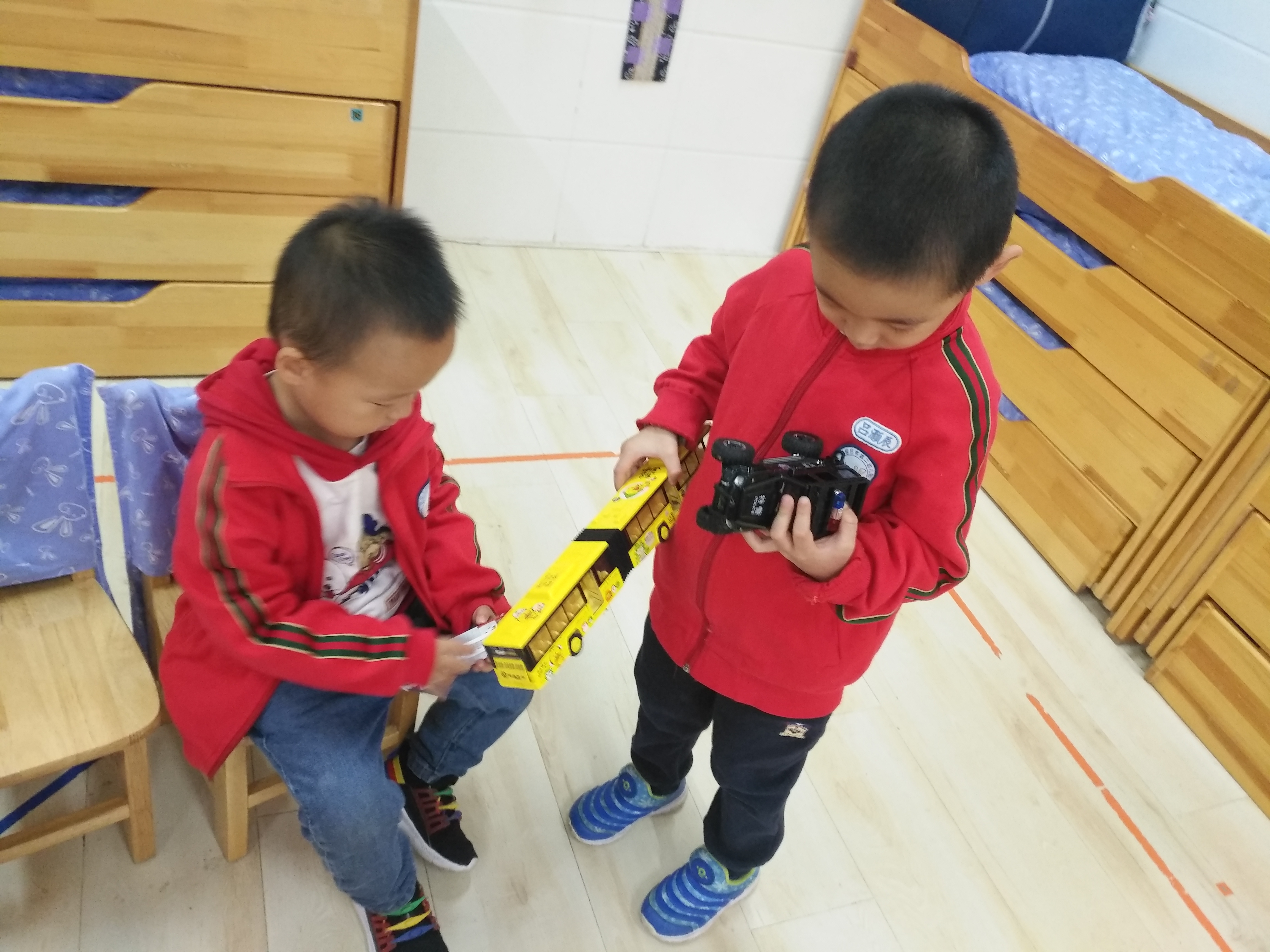 我们还请小朋友把自己家的汽车模型带过来,进行近距离的观察,并与同伴分享交流。