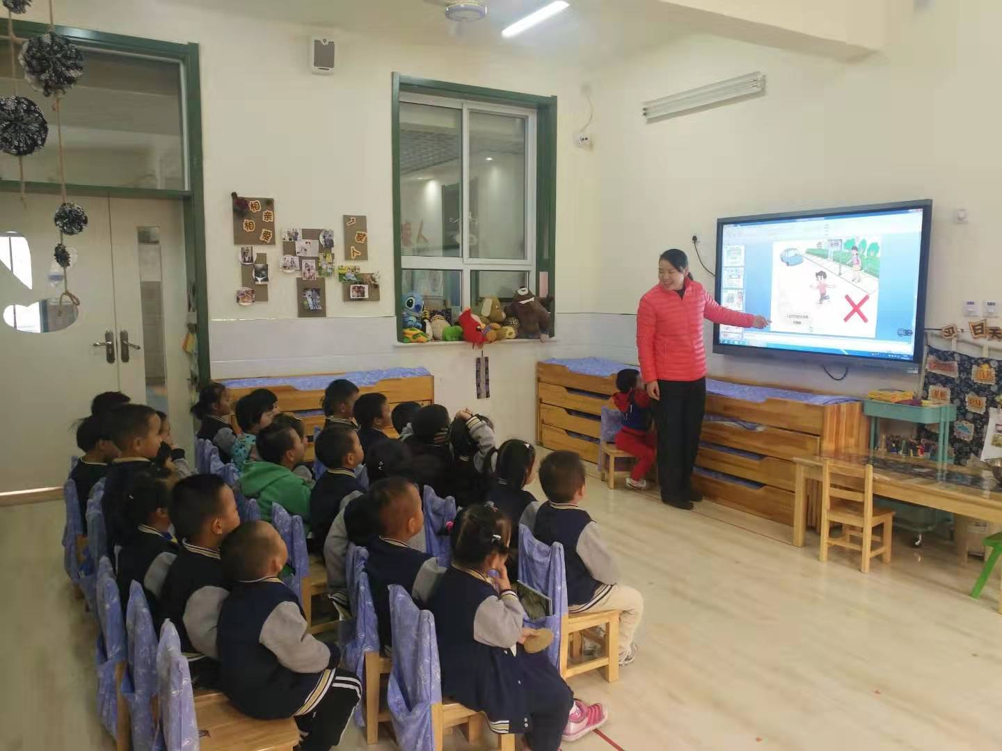 《幼儿教育纲要》指出:要为幼儿提供健康、丰富的学习和生活活动,满足幼儿各方面发展的需要,要让幼儿知道必要的安全保健知识,学习保护自己。 小班孩子由于年龄特点,对于保护自己,珍惜生命的意识是比较缺乏的,我班不少家长特别是爷爷奶奶反映,孩子一出幼儿园就跑开了,过马路也不肯拉着大人。为了让孩子感悟到生命的珍贵,萌发保护自己的安全意识,减少幼儿身心受到意外伤害的可能性,让幼儿在有安全意识的基础上,时时提醒自己或他人注意交通安全。 为此苗二班安委会家长贾思桐妈妈今天给小朋友们上了一节安全活动《我是小小交通员》,活动内容以故事、图片、游戏的形式与孩子们互动,孩子们非常开心,在寓教于乐中孩子们学会了《交通安全歌》,懂得遵守一些交通规则,大家都要争做文明小小交通员!希望小朋友们都能加强自我保护意识,能够安安全全、快快乐乐的度过每一天!