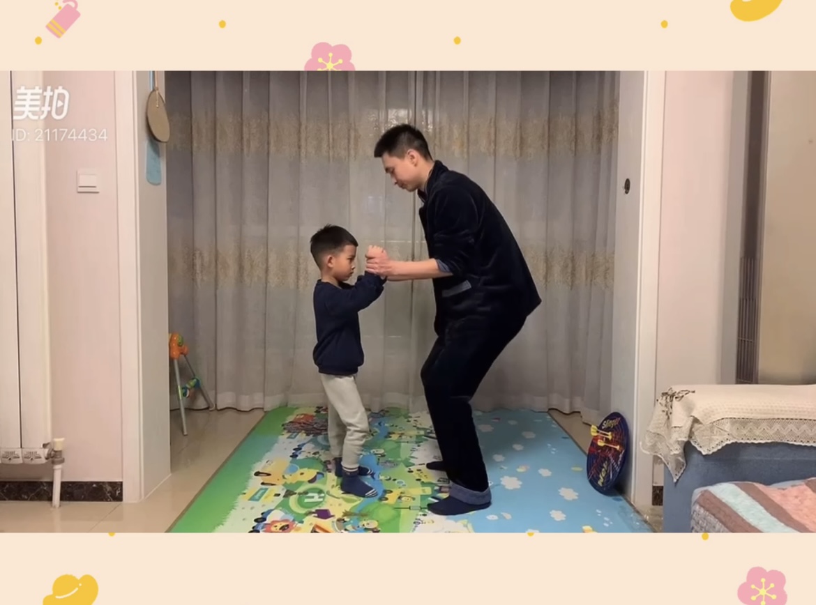 对于幼儿园的孩子来说,拍球是一项非常有益、非常必要的活动,它不仅能促进孩子手眼动作的协调,增强体质,而且能促进左右脑的平衡,培养孩子的耐力、坚持性等良好的品质。家长朋友们可千万别小看了这小小的拍球,它对孩子的发展有不可低估的作用呢!除了拍球孩子们还和爸爸一起玩儿起了好玩儿的体能游戏。