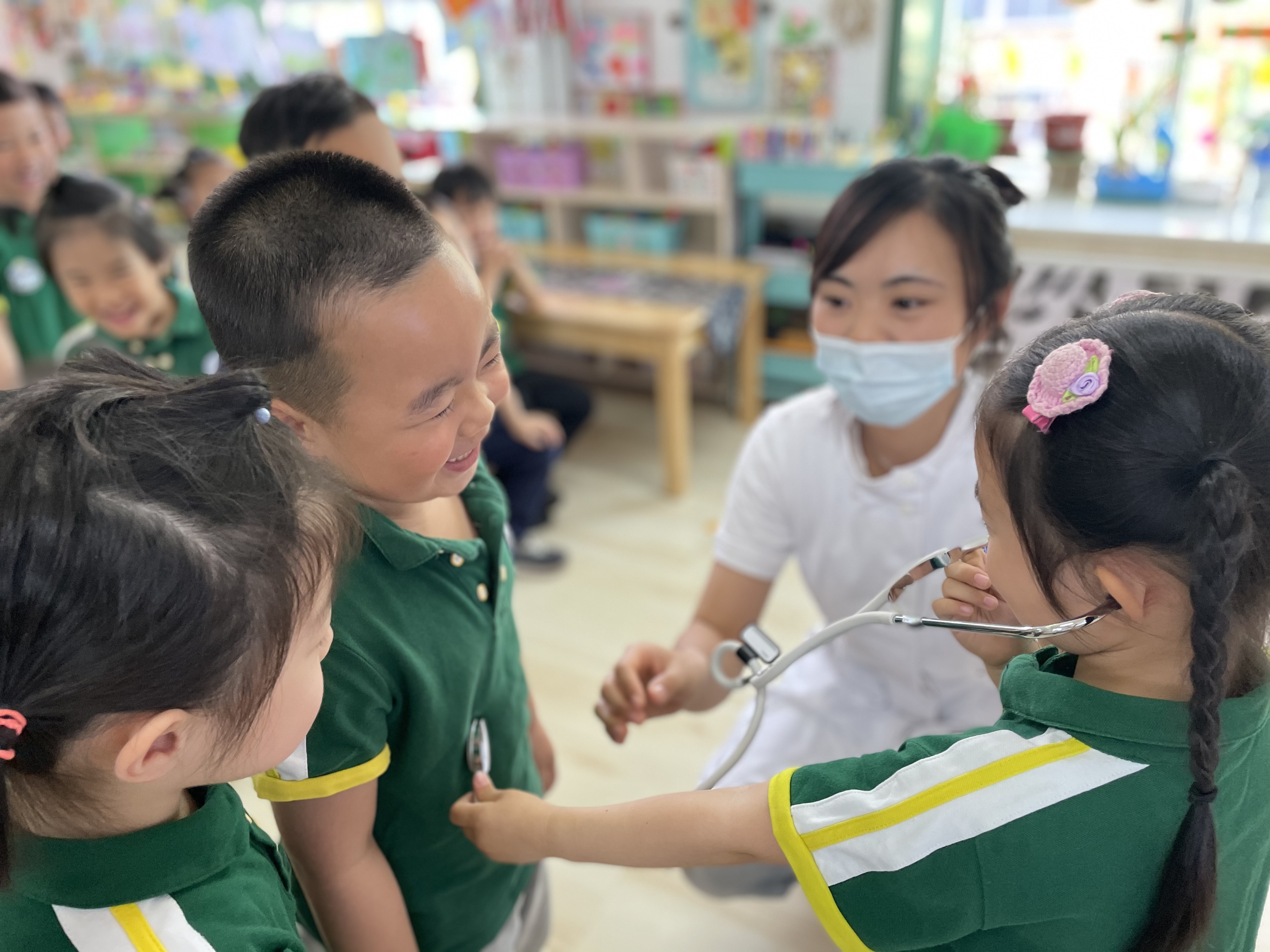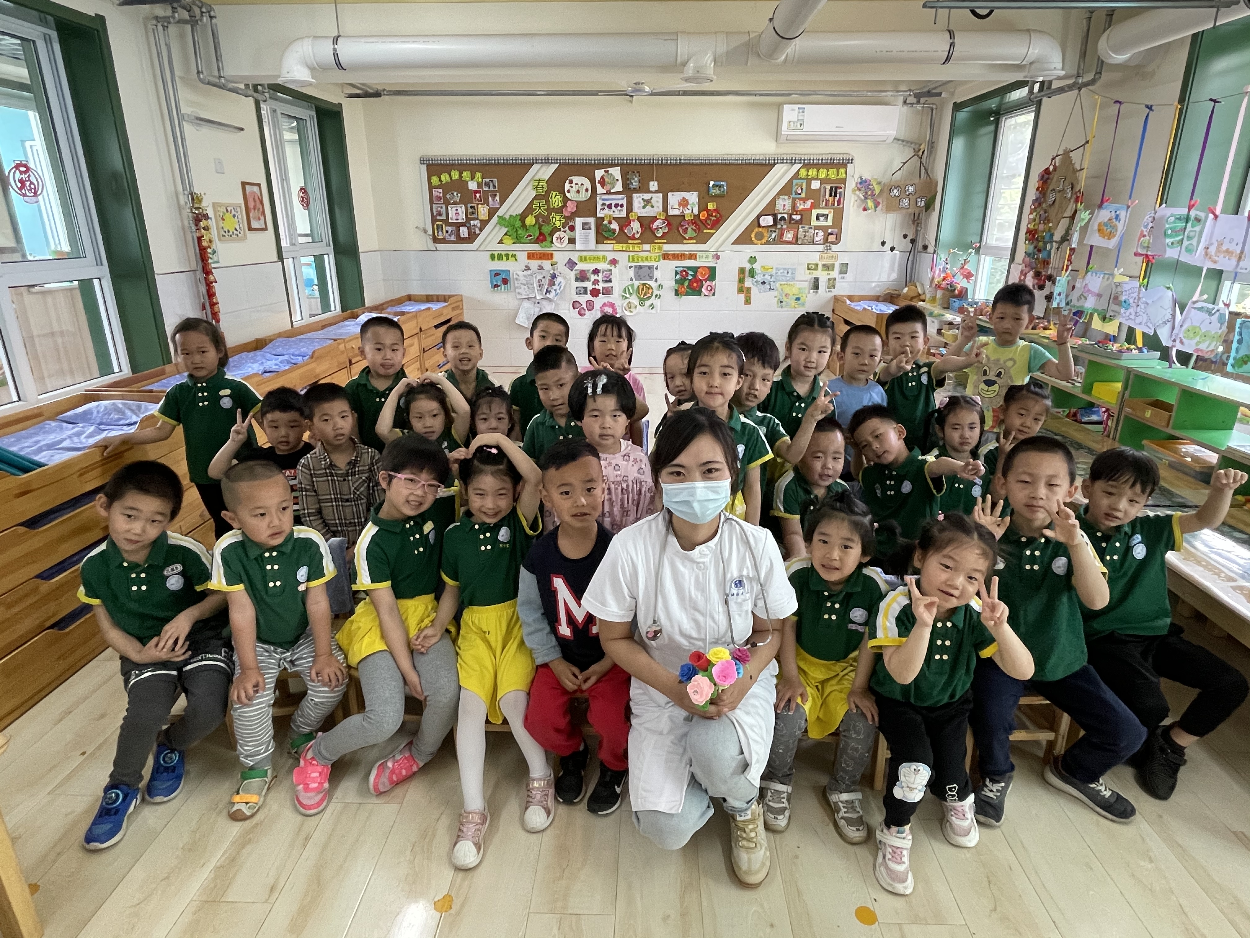 在“5月12日国际护士节”到来之际,为了让孩子们了解护士的工作,充分利用家庭教育资源。我们邀请了白衣天使——常家赫妈妈到花二班给孩子讲述护士职业特点,让孩子们从小了解这份职业的高尚与无私,并一同致敬所有护士节日快乐! 家长通过PPT、医用实物,丰富孩子对医生和护士工作的了解和认识,使幼儿积累了一定的生活经验,对医护人员有了进一步了解,在活动中家长充分调动了孩子的兴趣,使活动变得有价值,开展的更加顺利。 家长还结合季节特点 ,给孩子们讲述小女孩吃冰激凌生病的故事,告诉孩子们夏季虽然天热,但是不要贪恋冷饮,要注意保护好自己的脾胃……由于白衣天使面对面的讲述,孩子们听的非常认真!为了表达对白衣天使的敬意,孩子们把制作的鲜花送给我们的白衣天使! 本次家长进课堂活动既丰富了幼儿园的教育元素,拓宽了孩子的学习渠道,又拉近了孩子、老师、家长的距离。让孩子们在活动中获得更直观的感受,还能让家长积极参与到幼儿园的活动中,实现家园共育。