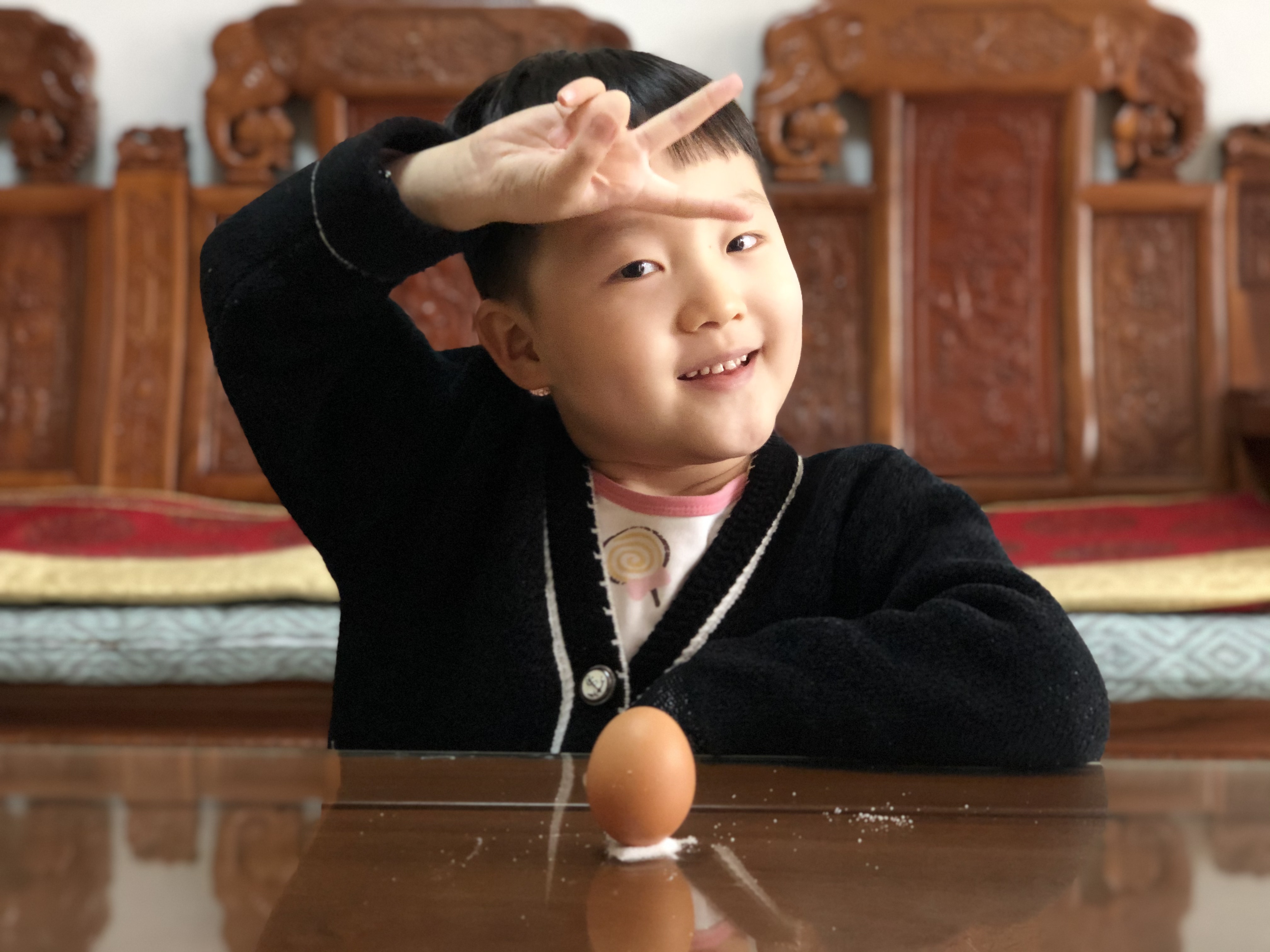 “春分到,蛋儿俏”,自古民间就有春分竖蛋的习俗。春分这一天最好玩的莫过于“竖鸡蛋”。 为什么要在春分这一天竖鸡蛋呢? 据说,这一天最容易把鸡蛋竖起来,其中还有一些科学道理。其次,春分正值春季的中间,不冷不热,花红草绿,人心舒畅,思维敏捷,动作利索,也易于竖蛋成功。最后,春暖大地,万物生长,“立蛋”除有立住鸡蛋的本意,亦有“马上”、“添丁”之意,意味着人们祈祷人丁兴旺,代代传承之意。 “竖蛋”小要点 要点一:挑鸡蛋 首先要挑选一头大一头小的鸡蛋,立蛋时将大头朝下,这样重心会比较低,就像不倒翁一样,容易保持平衡。 要点二:寻找支持面 到合适的支持面,做一个小实验,在桌面上涂上印泥,再把鸡蛋立在涂有印泥的桌面,就可以发现,能立住的鸡蛋,底部会有一个肉眼很难看清的平面,一旦重力作用线能经过这个平面,鸡蛋就能站立起来。 要点三:手要稳 由于生鸡蛋里的蛋黄位置也会影响鸡蛋的站立情况,所以立鸡蛋的手要尽量保持不动,让蛋黄可以慢慢沉淀到鸡蛋下部,这样重心就能足够低,使鸡蛋保持平衡。快来看看小朋友们的春分竖蛋本领吧!