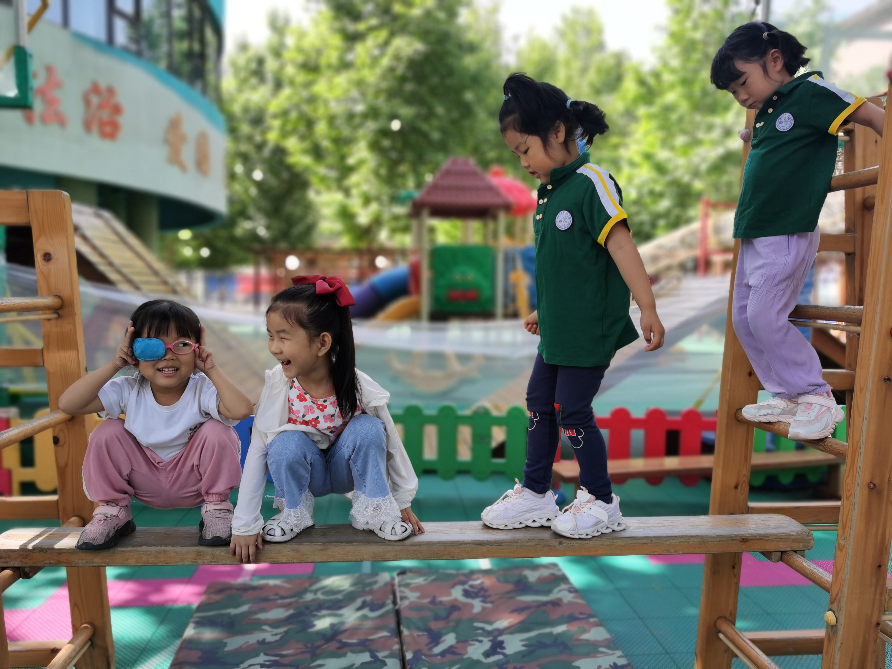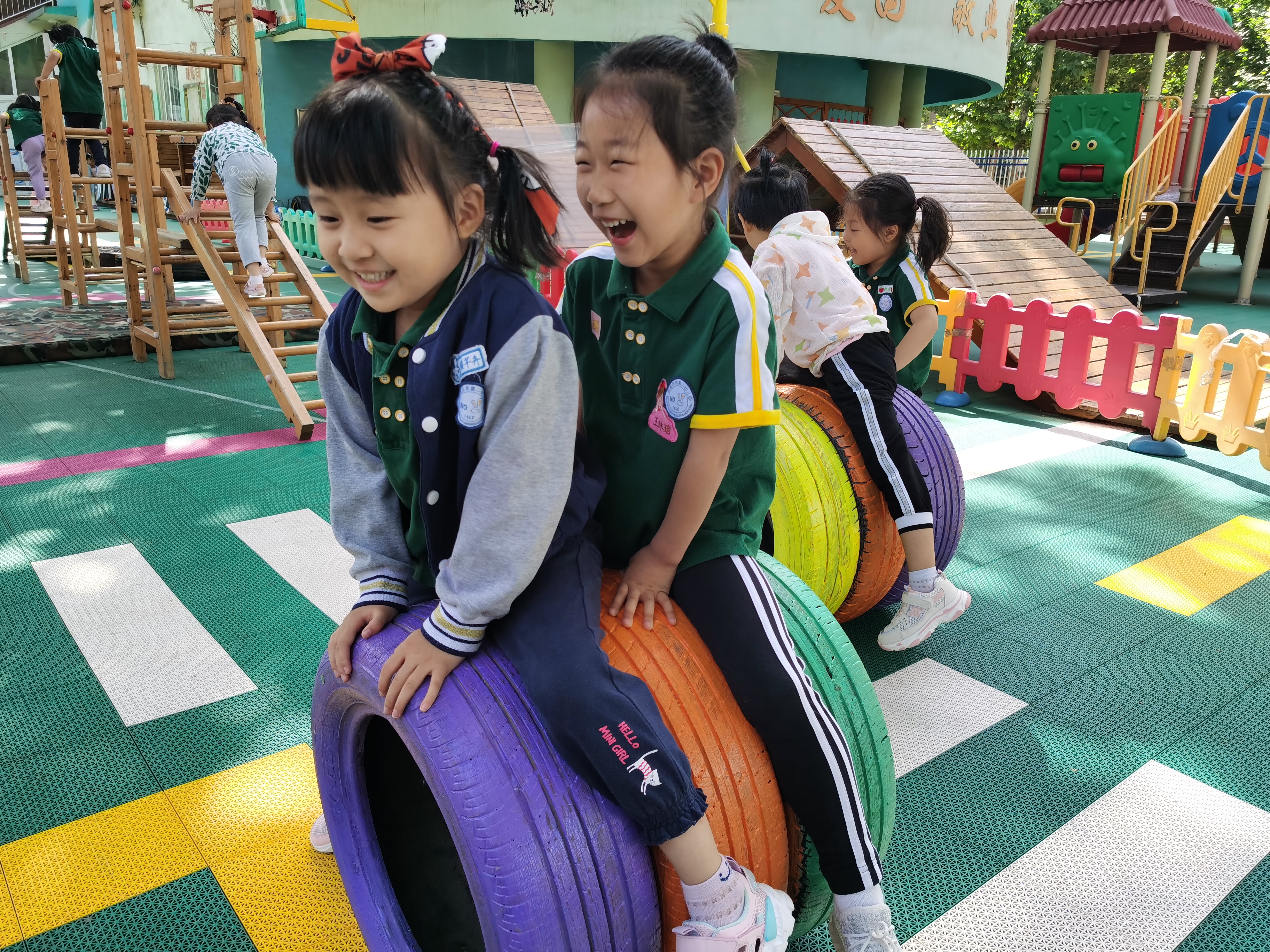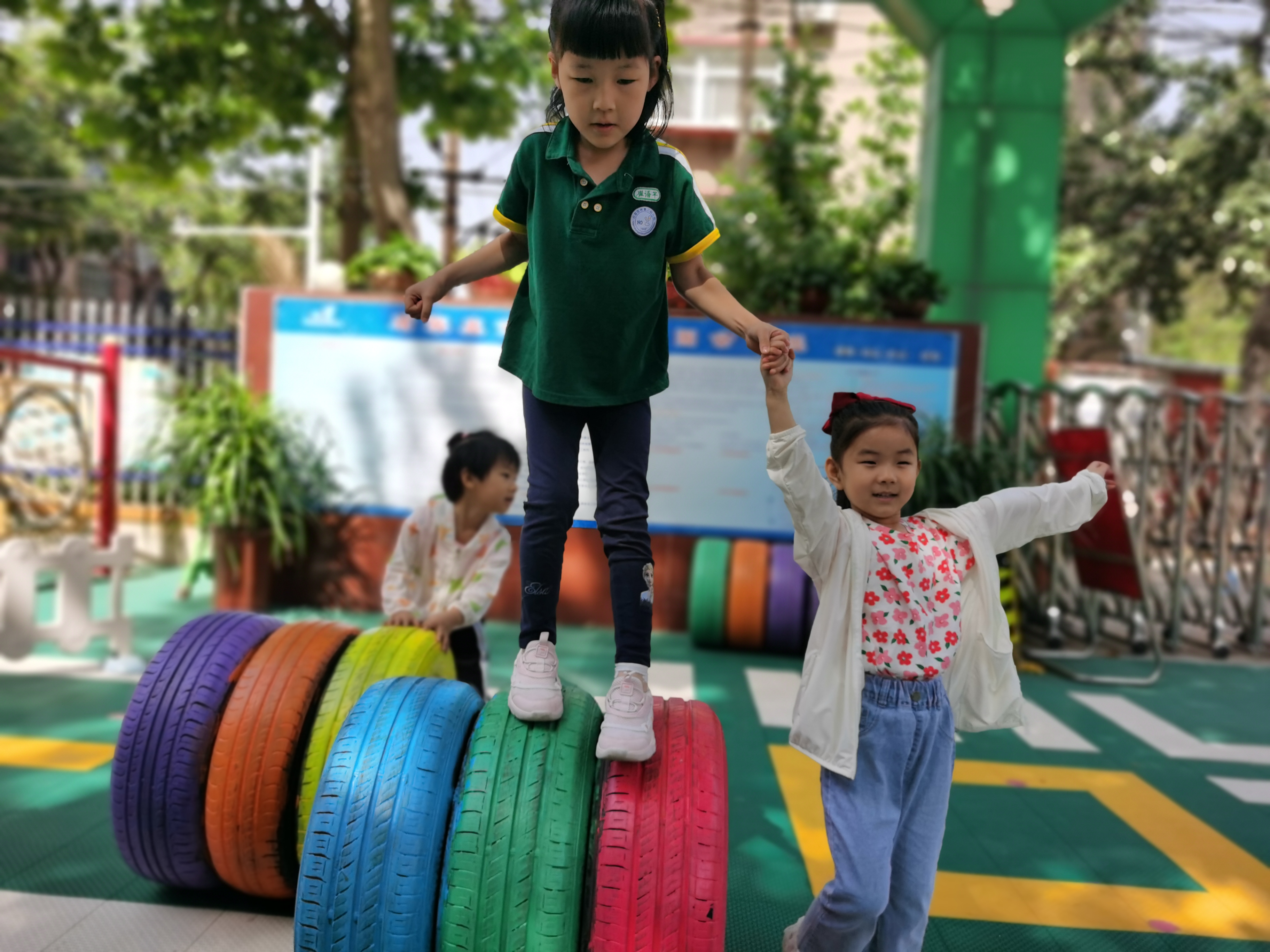 “安吉游戏”是安吉幼儿园课程的简称,也是一种自主游戏理念。在游戏过程中,幼儿自己去设定游戏规则,去自由选和谁一起玩,玩什么,怎么玩。安吉游戏的特点就是孩子有足够的自主性,具有发展幼儿动作技能、促进幼儿认知情绪情感及社会性发展等多重价值,体现了正确的儿童观,让儿童成为游戏的主人。 幼儿在户外尝试进行木梯和轮胎的自主搭建游戏搭建,可以锻炼幼儿的大脑发育,锻炼幼儿的创造力和动手能力,结合中班幼儿年龄特点借助材料可以发现更多搭建乐趣以及学习合作游戏。 放手游戏,发现儿童,在游戏中我们看到每个孩子个性张扬、充满热情的学习过程,他们在综合的游戏过程中积累着大量的认知经验;他们在合作游戏的过程中获得了社会性的发展;他们在与材料的互动过程中不断地探索、调整、尝试、实践,用自己的方式解决着游戏过程中出现的一个又一个问题,获得了学习品质的发展;他们在自由的游戏中充分地想象、创造、尽情地表达着自己的想法,表现着自己的审美。因为理解和尊重,孩子变得更快乐、更自主。
