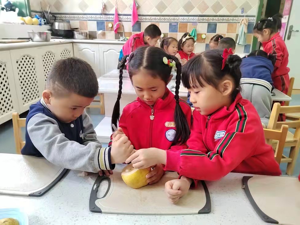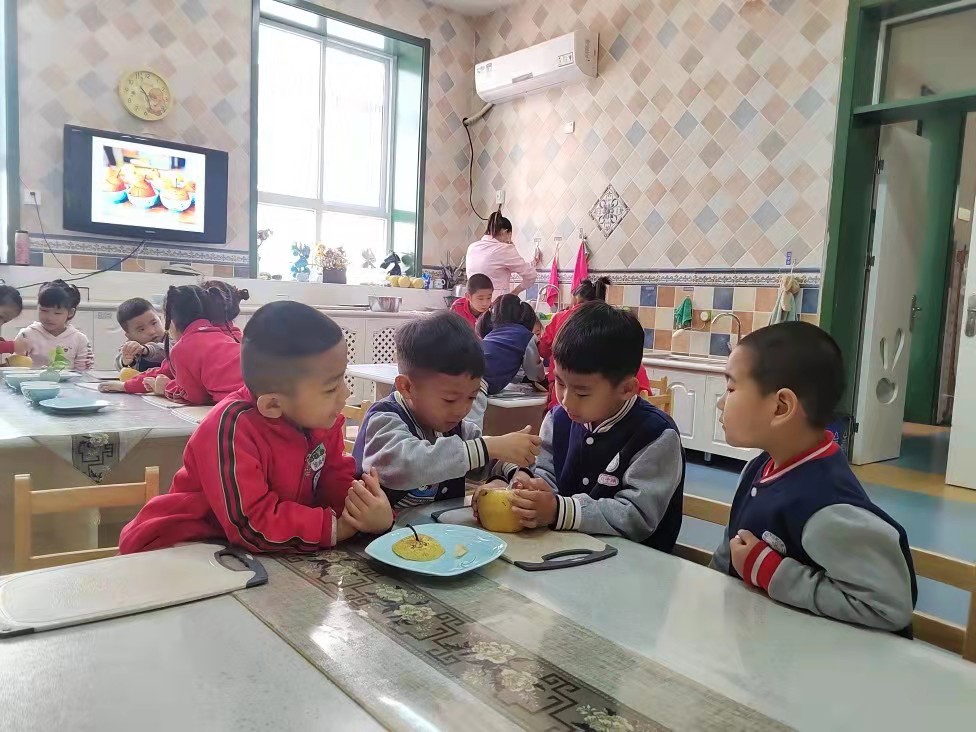 春雷响,闹惊蛰。惊蛰是二十四节气中的第三个节气。惊蛰的意思是天气回暖,春雷始鸣,惊醒蛰伏于地下冬眠的昆虫,蛰是藏的意思。惊蛰吃梨是我国古代民间流行的习俗,因为“梨”与“离”谐音,有远离疾病的意思。惊蛰又是昆虫苏醒的时候,传说农民伯伯惊蛰吃梨可以让虫害远离庄稼。 圆圆班的小朋友们了解了惊蛰吃梨的习俗后,在郭老师的带领下一起观看视频学习“冰糖枸杞蒸梨”的制作方法,孩子们拿起梨,小手都忙碌了起来,看到孩子们灿烂的笑容,我们也沉浸在孩子们的快乐中。 通过本次活动幼儿了解了“冰糖枸杞蒸梨”的制作过程,孩子们在亲手制作的过程中学习了如何蒸梨,在与同伴们分享美食中,体验到了分享的快乐,知道了“冰糖枸杞蒸梨”是惊蛰养生的美食,最重要的是孩子们开心的笑容是本次活动最好的体现。