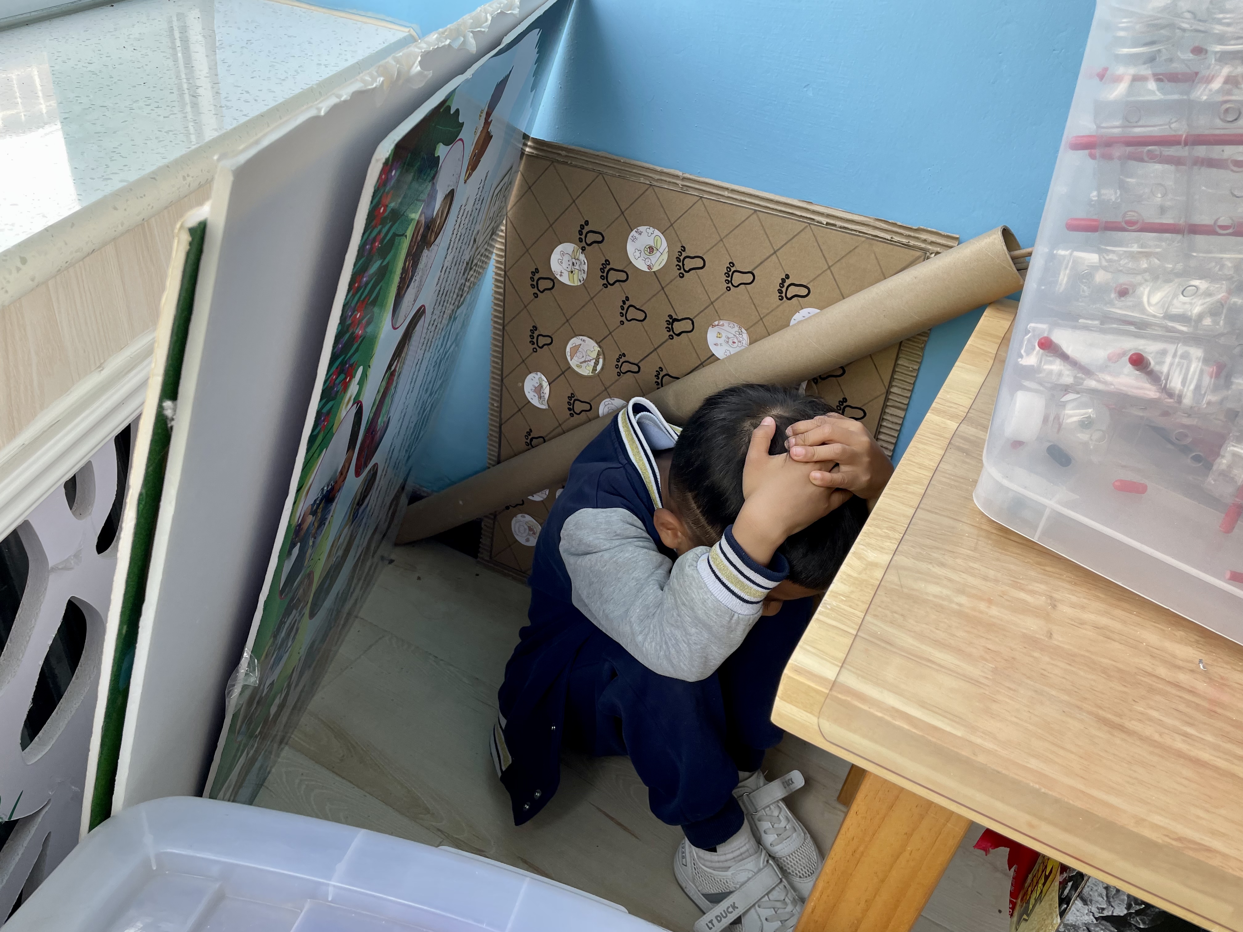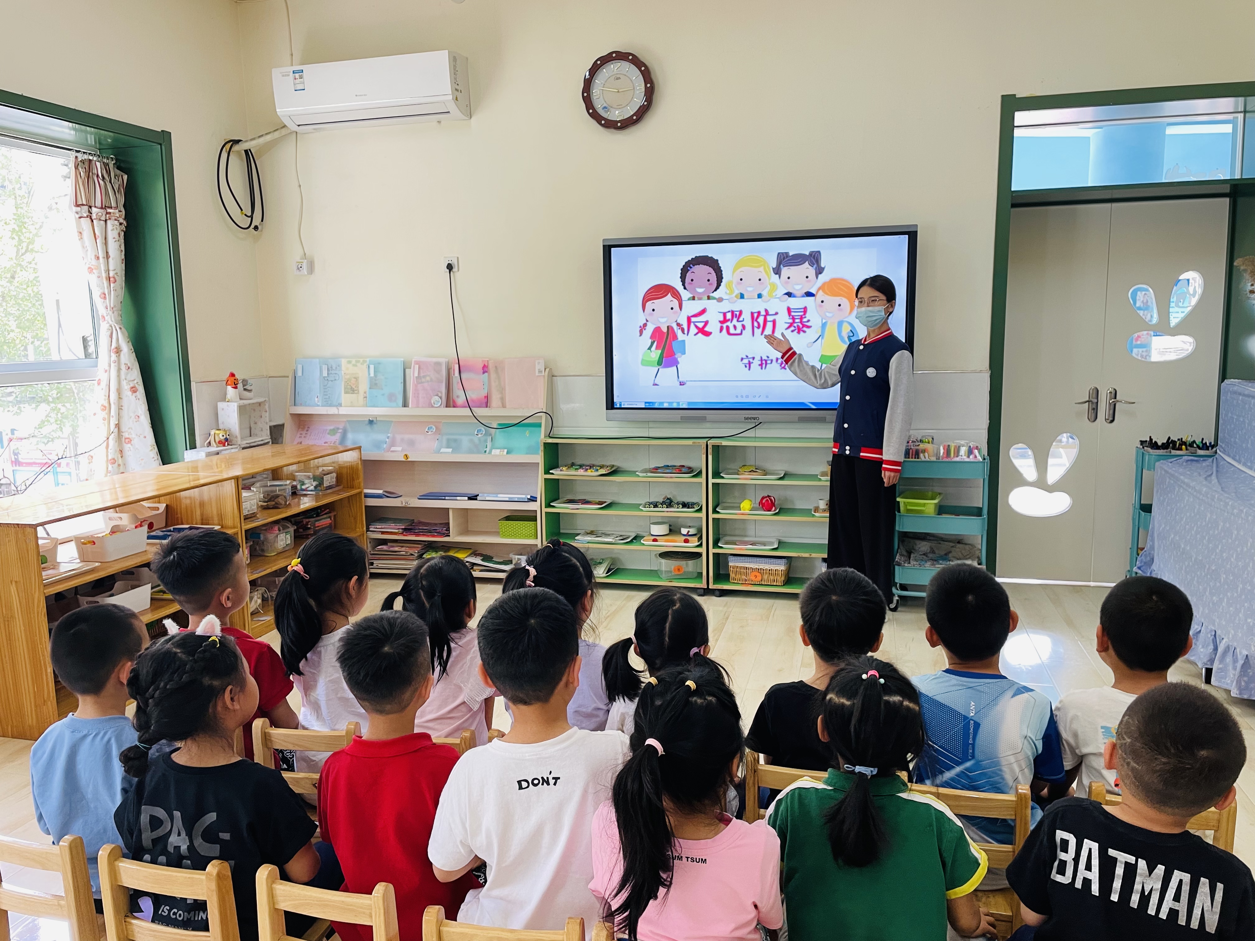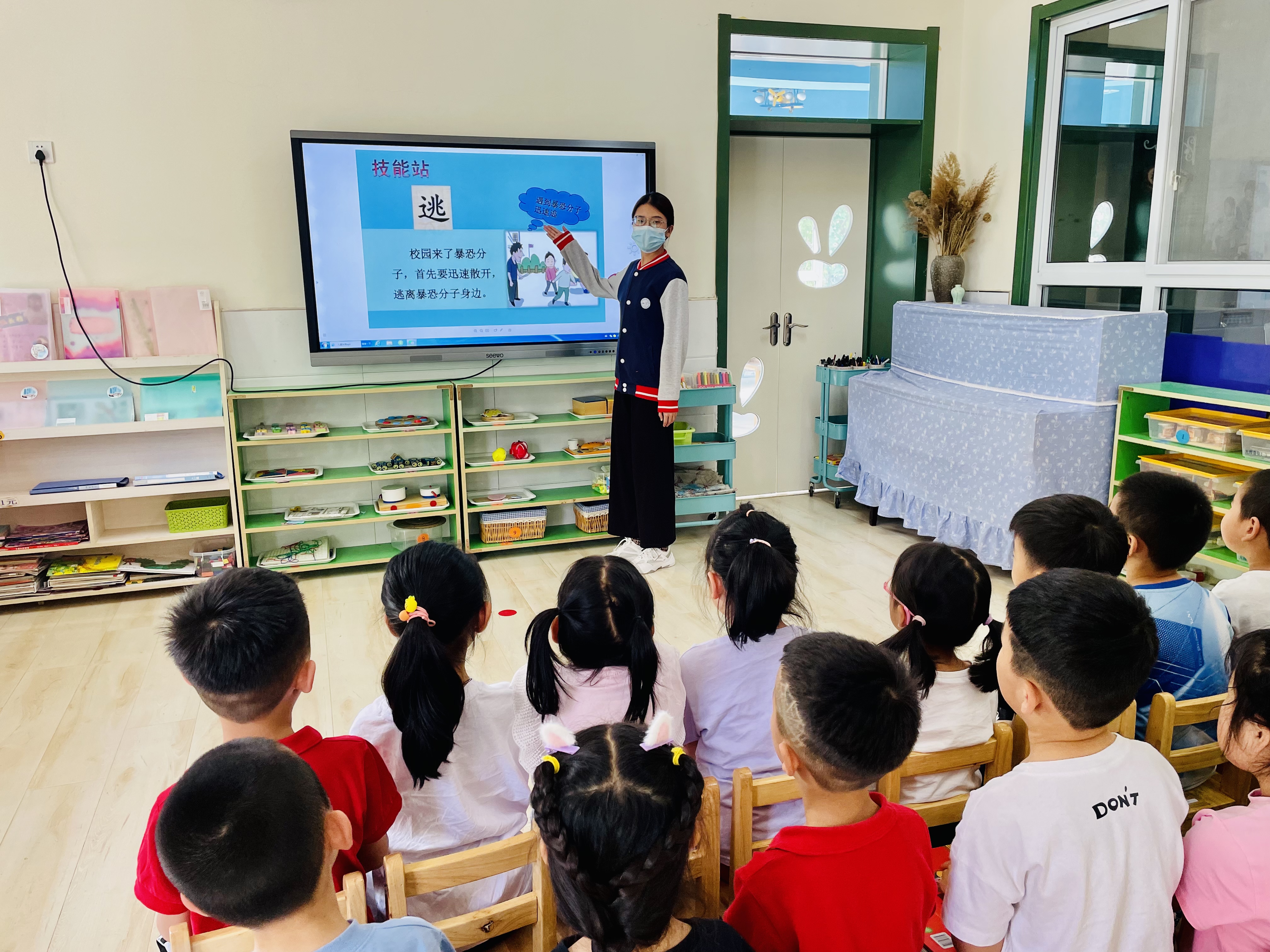 当今幼儿的安全防范意识差,自我保护能力较弱。因此让幼儿在日常生活中学习安全防暴知识很有必要。当孩子们遇到危险时,他们是否知道怎样应对?当家长遇到恶人袭击我们孩子的时候,他们又知道如何去保护呢?我们要给予孩子的保护不仅是把危险完全隔离,还需要让他们知道,当遇到危险或紧急情况时,要如何更好地保护自己。 4月26日上午,我们就在幼儿园进行了一场防恐防爆演习,在本次活动开始前,我们跟孩子们一同讨论了遇到恶人袭击的时候怎样保护自己和同伴,演练结束以后我们还进行了小结,还给孩子们介绍了一些控制恶人袭击的一些工具。通过本次活动,孩子们知道了遇到突发情况时不要慌张,冷静下来,迅速从疏散通道逃到安全的位置,保护好自己和同伴不被伤害。