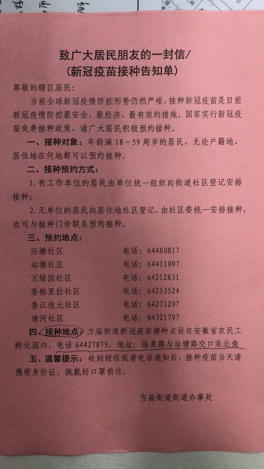 新冠疫苗接种通知
