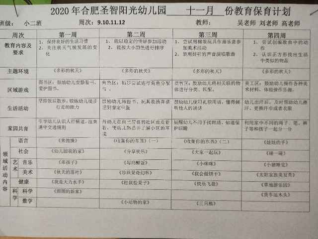 小班上十一月份月计划