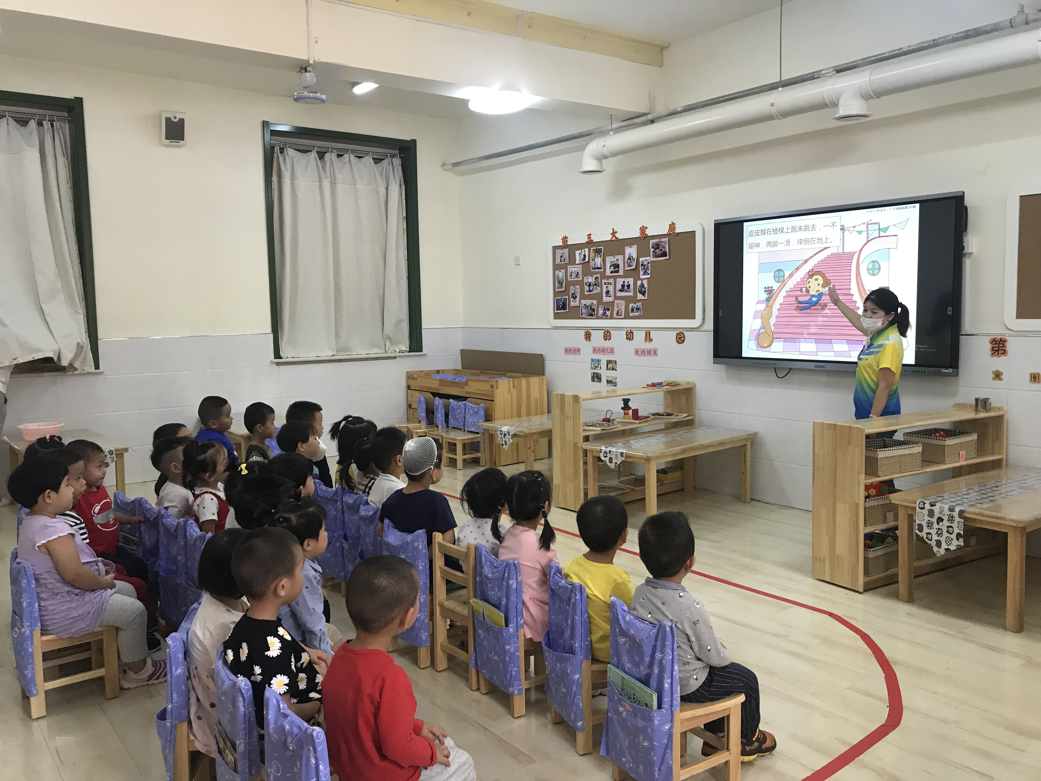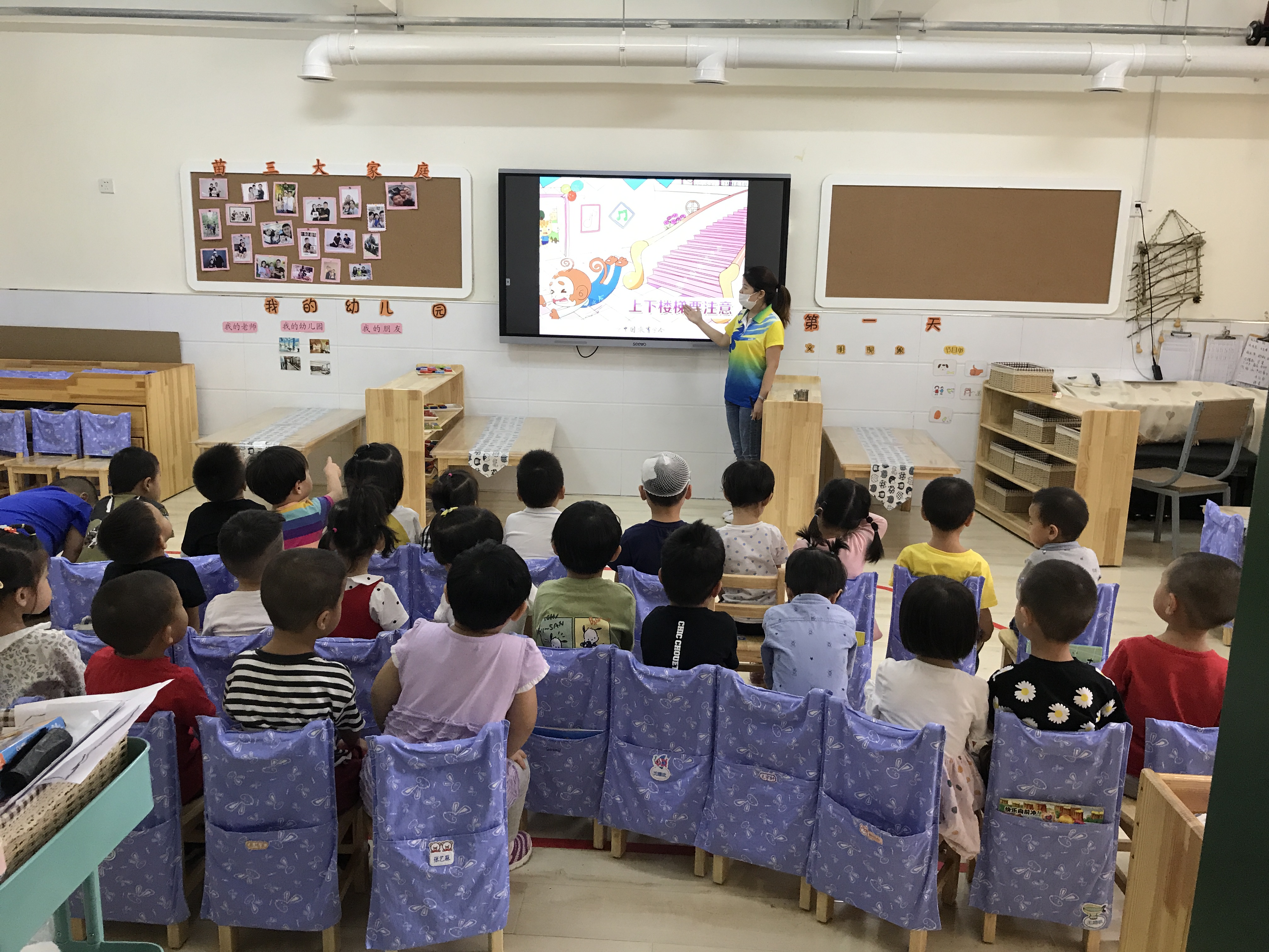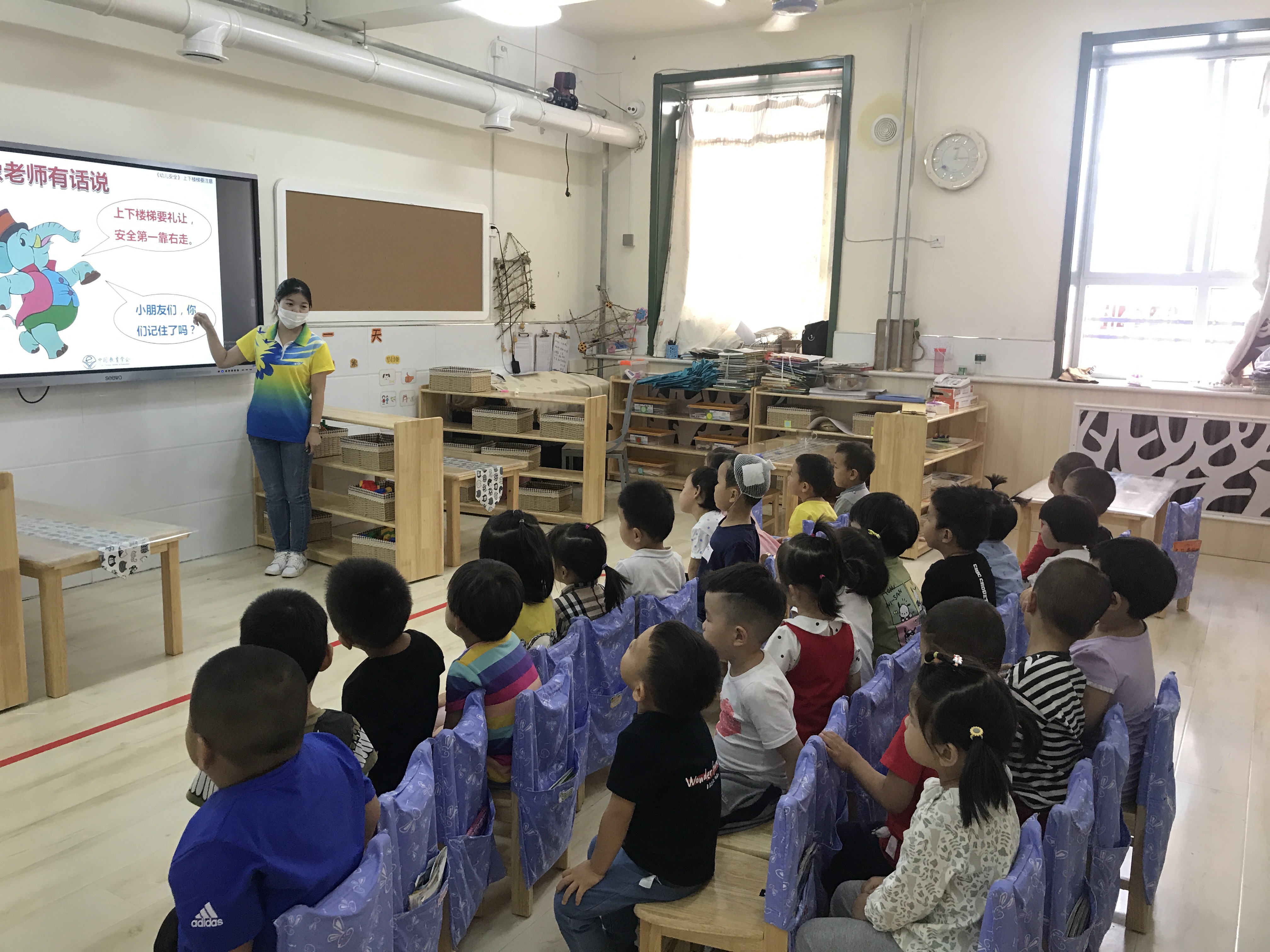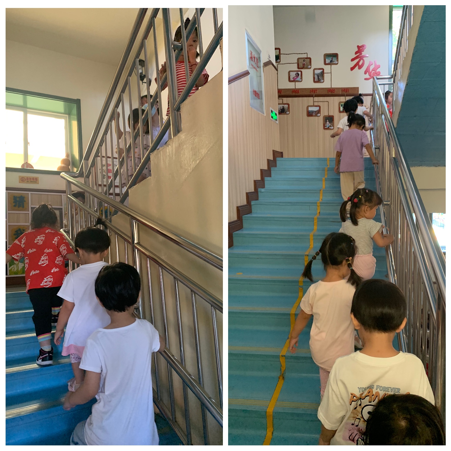 楼梯是幼儿园中常见的设施,爱玩、好动是孩子的天性,所以在幼儿园上下楼梯时,有的孩子对此像玩游戏一样,这并不是孩子的调皮行为,而是好奇心、探索欲的体现。孩子们往往把楼梯当成运动、娱乐设施,这便使楼梯成为最容易发生危险的地方。 为了进一步提高幼儿的安全意识,培养幼儿有序上下楼梯的意识,消除安全隐患,避免在上下楼梯过程中发生拥挤、碰撞甚至摔倒等意外事故。本周四下午,我班开展了“上下楼梯 安全第一”的教育教学活动,通过《皮皮猴上楼梯》的故事,引导小朋友知道上下楼梯时要注意安全,知道在楼梯上玩耍和滑扶梯的危险性。同时学习上下楼梯的正确方法,如上下楼梯靠右走,培养幼儿初步的安全意识和规则意识,养成安全文明的好习惯。 幼儿安全是我们常抓不懈的一项问题,所以安全教育就要从身边的小事、琐事抓起,才能真正做到安全第一。 附儿歌:上下楼梯不拥挤,一个一个跟得齐,手扶栏杆慢慢走,一阶一阶走上去,下来还是靠右边,一个一个有顺序,保证安全是第一,一定一定要牢记。