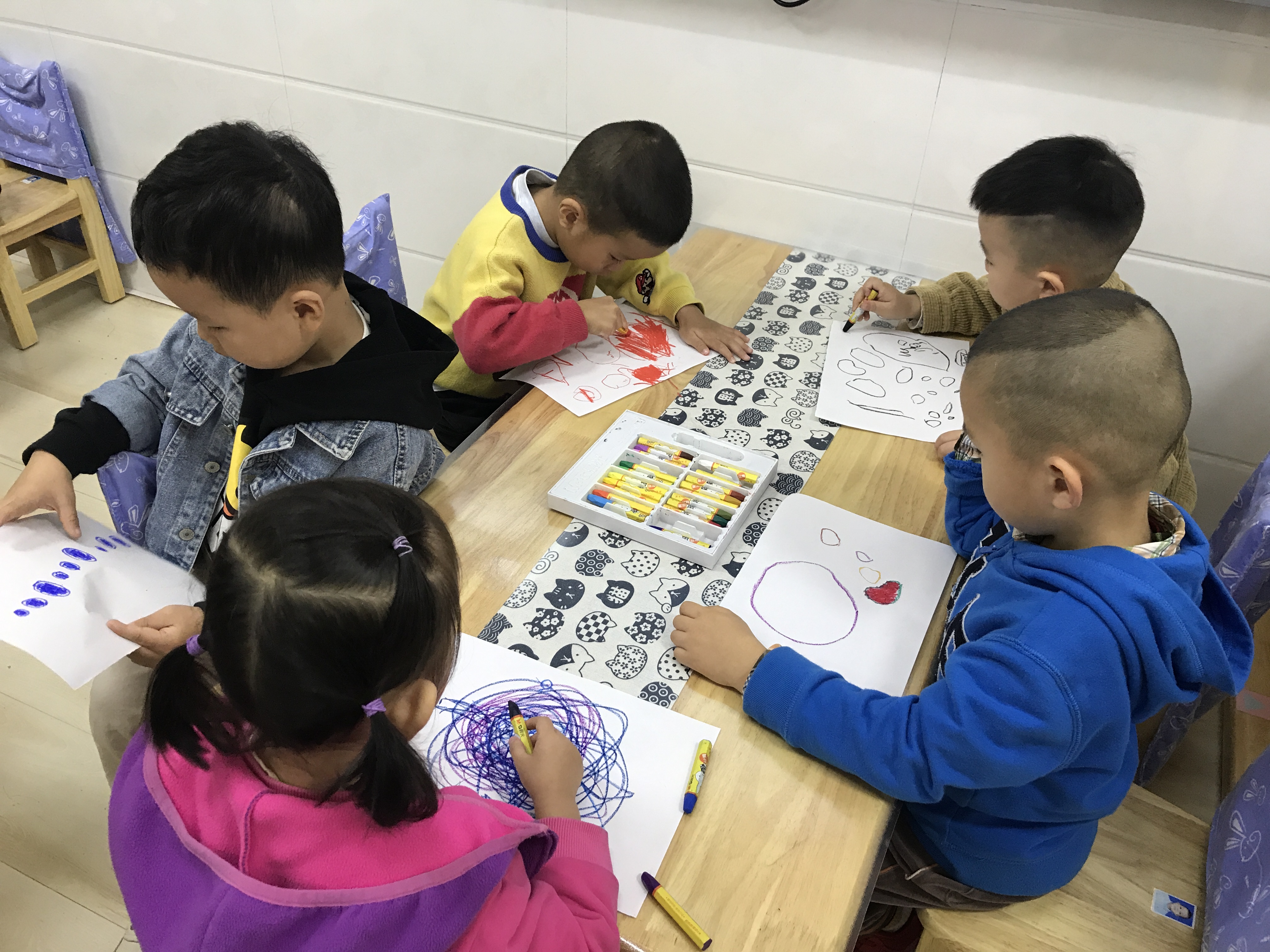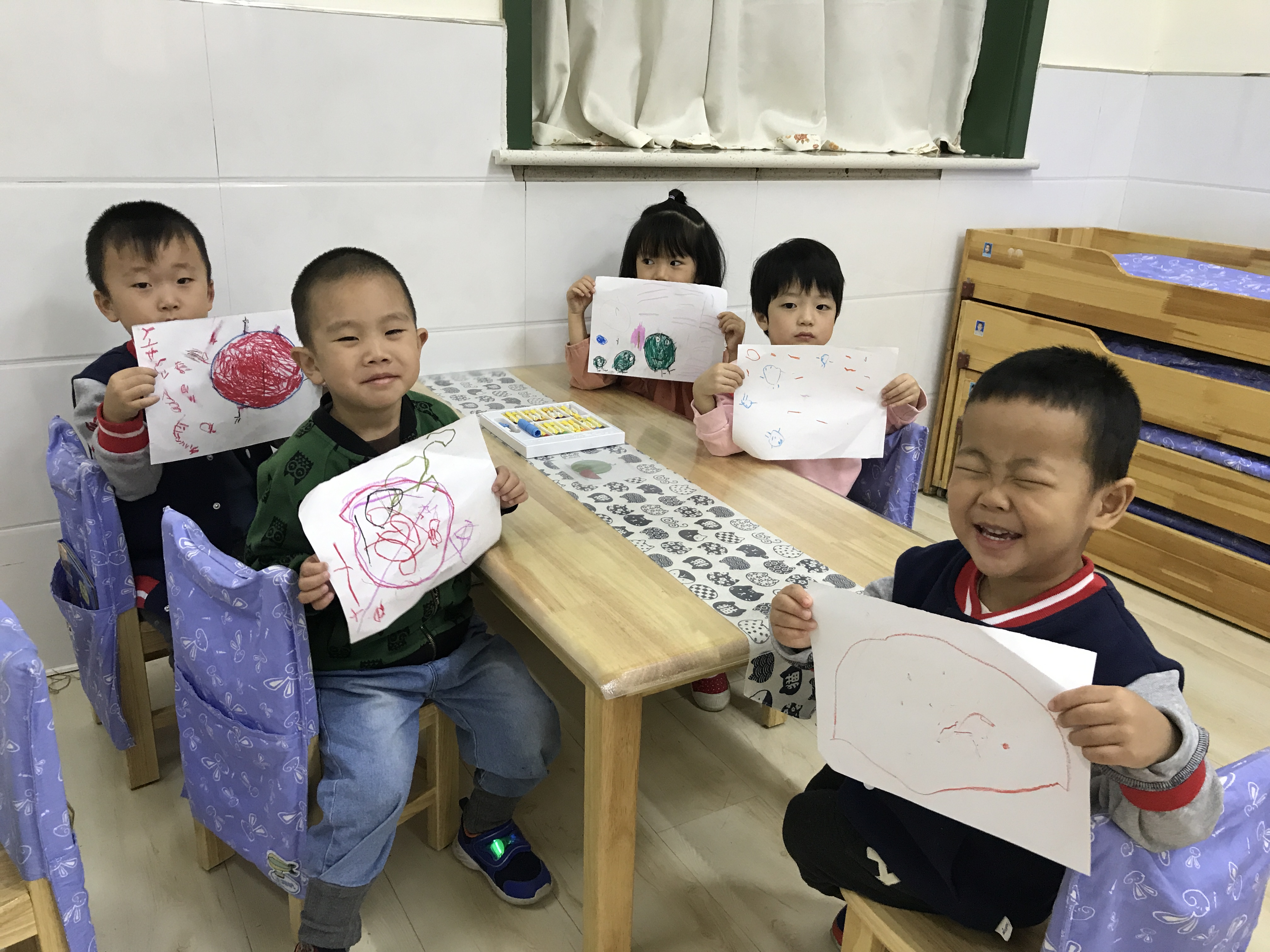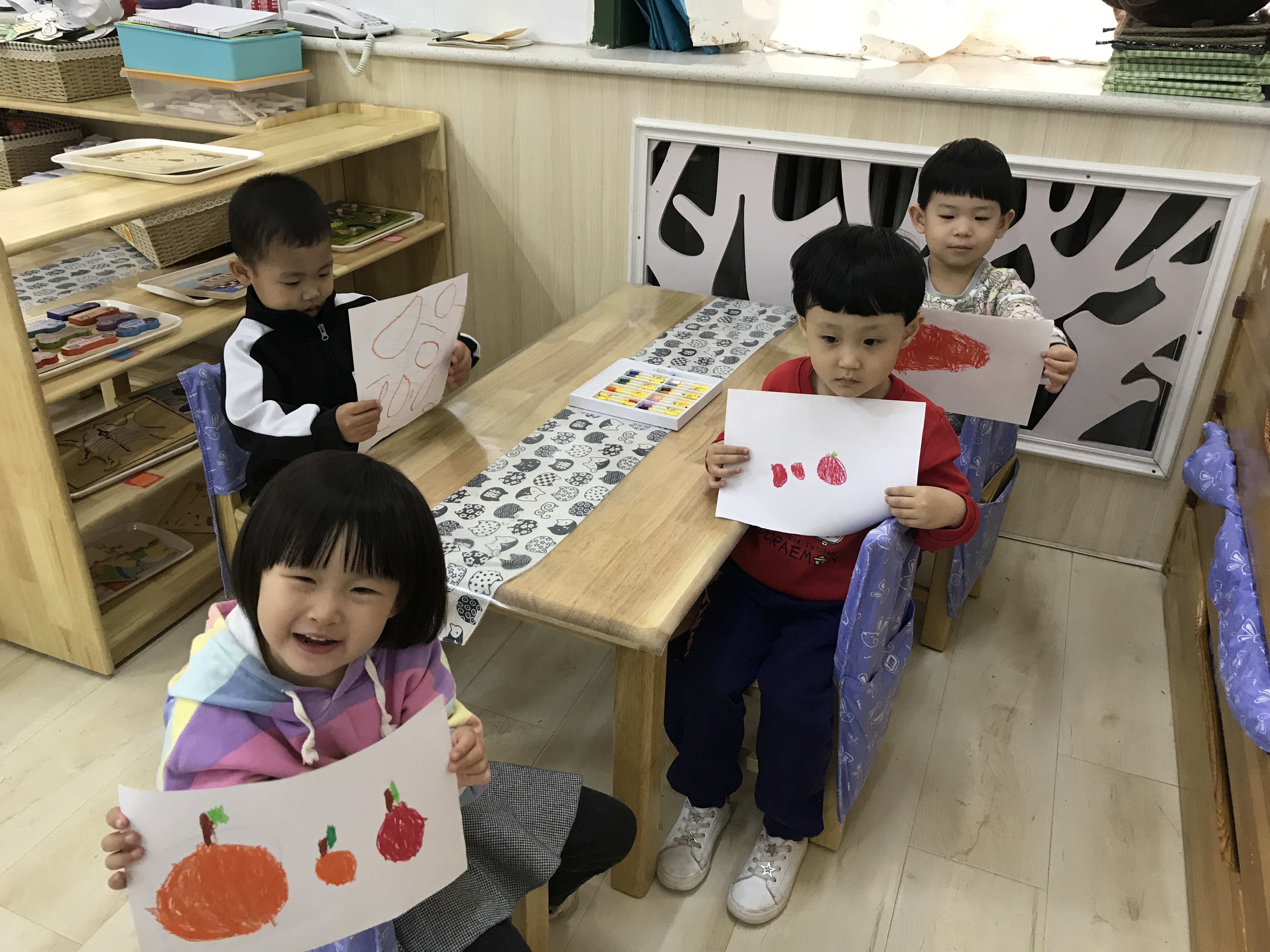 一抹淡彩、一笔创意,描绘一个美丽的世界,孩子天生就是艺术家。小班孩子刚刚入园,其绘画发展水平也正处于涂鸦期,他们从不规则到略有规则的线条,到有意识的形状,再到色彩,创造力可以无限发挥,自由地表达内心的想法。学习和掌握简单的美术知识技能,培养幼儿初步的表现力,使幼儿萌发审美情趣是幼儿园美术教育的基本目标。 陶行知先生主张“生活即教育”,提倡“教育以生活为中心”,也就是说要以儿童的生活开展儿童教育。践行课程中美术教育内容立足于幼儿的生活,以生活为背景。本次活动教师首先与幼儿共同讨论身边有哪些圆形食物,它们的特征是什么,如何画出最喜爱的圆形食物一家人,充分利用幼儿日常生活中的经验,进一步掌握基本圆形的绘画方法,通过观察、学习、讨论,留给幼儿充分的创作空间。 践行美术活动,让幼儿能够愉快地进行创造、表现,真正让幼儿的审美情趣培养回归幼儿生活,健康充实地成长。