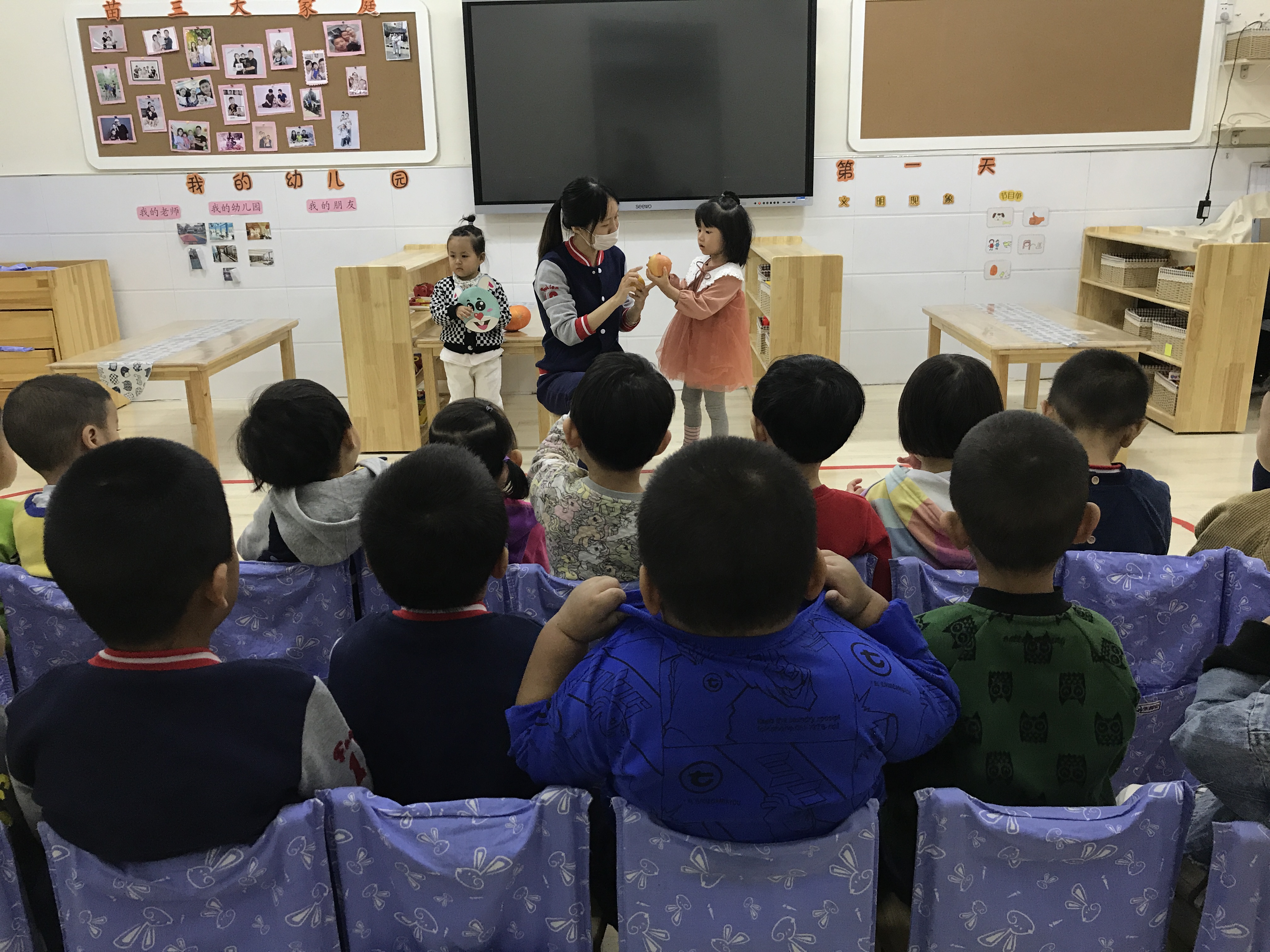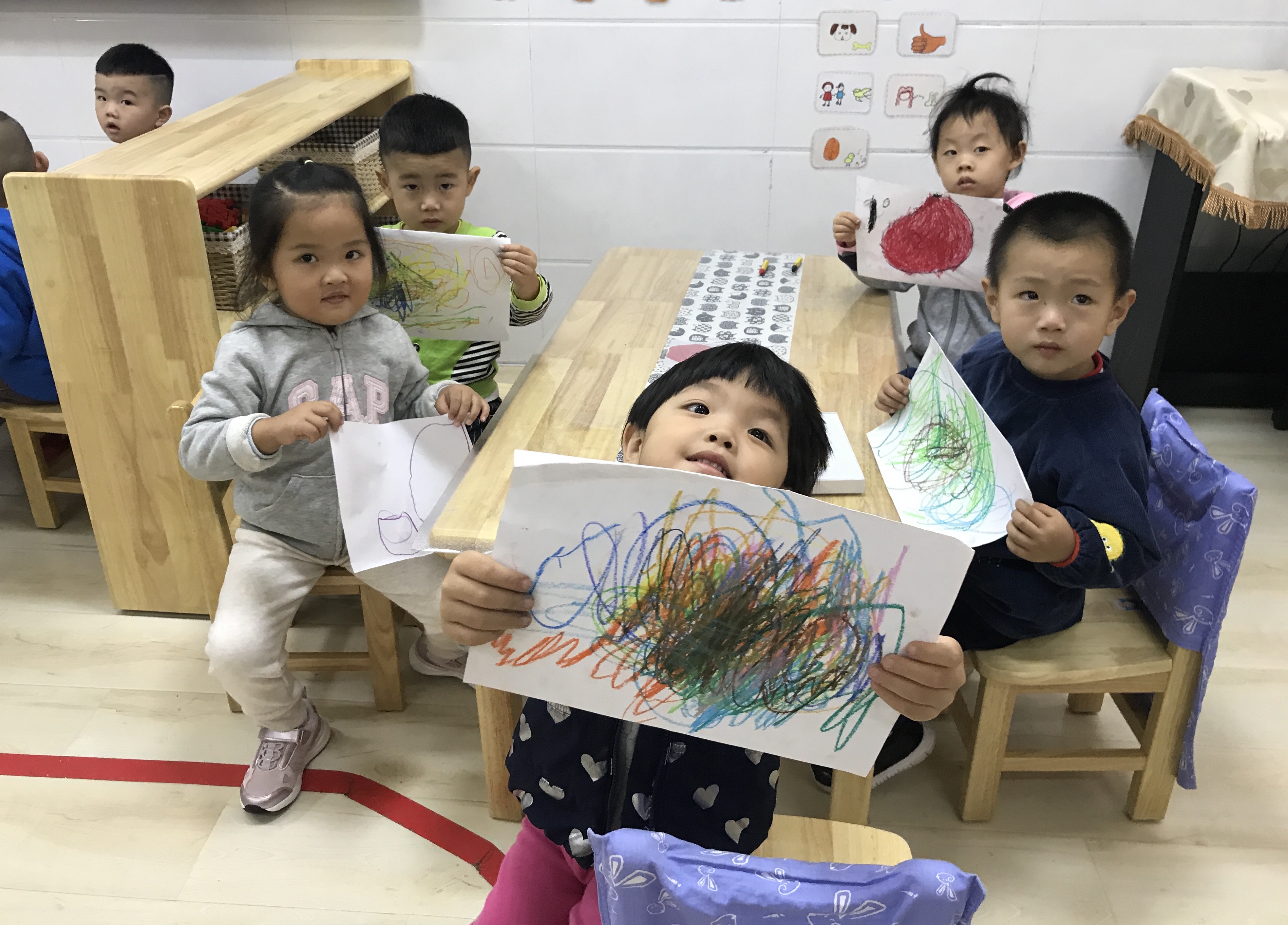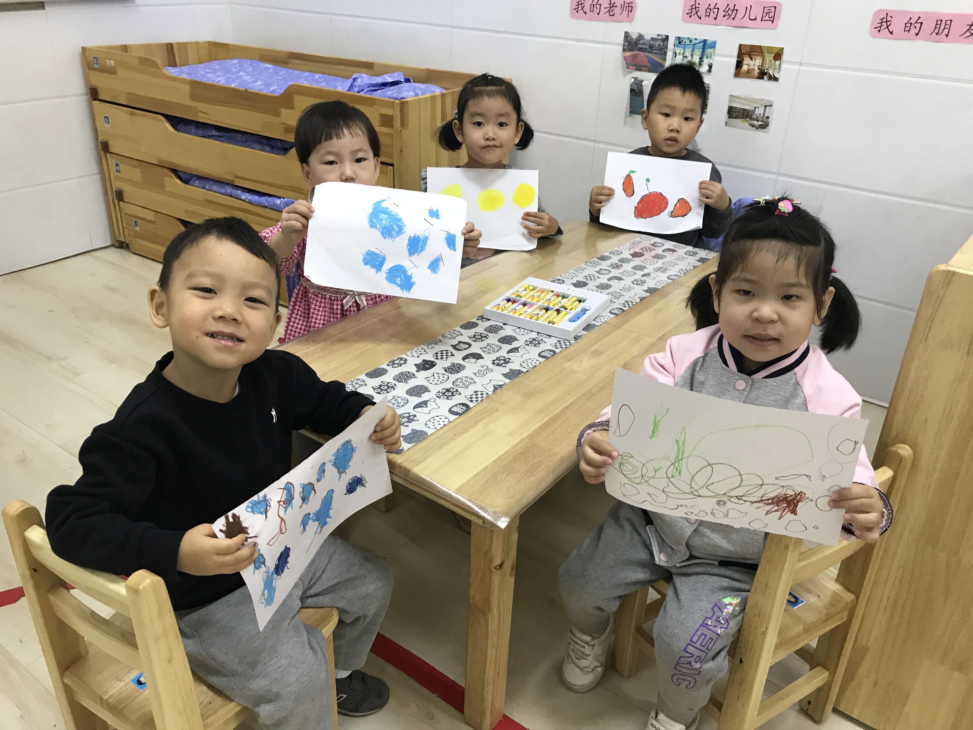一抹淡彩、一笔创意,描绘一个美丽的世界,孩子天生就是艺术家。小班孩子刚刚入园,其绘画发展水平也正处于涂鸦期,他们从不规则到略有规则的线条,到有意识的形状,再到色彩,创造力可以无限发挥,自由地表达内心的想法。学习和掌握简单的美术知识技能,培养幼儿初步的表现力,使幼儿萌发审美情趣是幼儿园美术教育的基本目标。 陶行知先生主张“生活即教育”,提倡“教育以生活为中心”,也就是说要以儿童的生活开展儿童教育。践行课程中美术教育内容立足于幼儿的生活,以生活为背景。本次活动教师首先与幼儿共同讨论身边有哪些圆形食物,它们的特征是什么,如何画出最喜爱的圆形食物一家人,充分利用幼儿日常生活中的经验,进一步掌握基本圆形的绘画方法,通过观察、学习、讨论,留给幼儿充分的创作空间。 践行美术活动,让幼儿能够愉快地进行创造、表现,真正让幼儿的审美情趣培养回归幼儿生活,健康充实地成长。