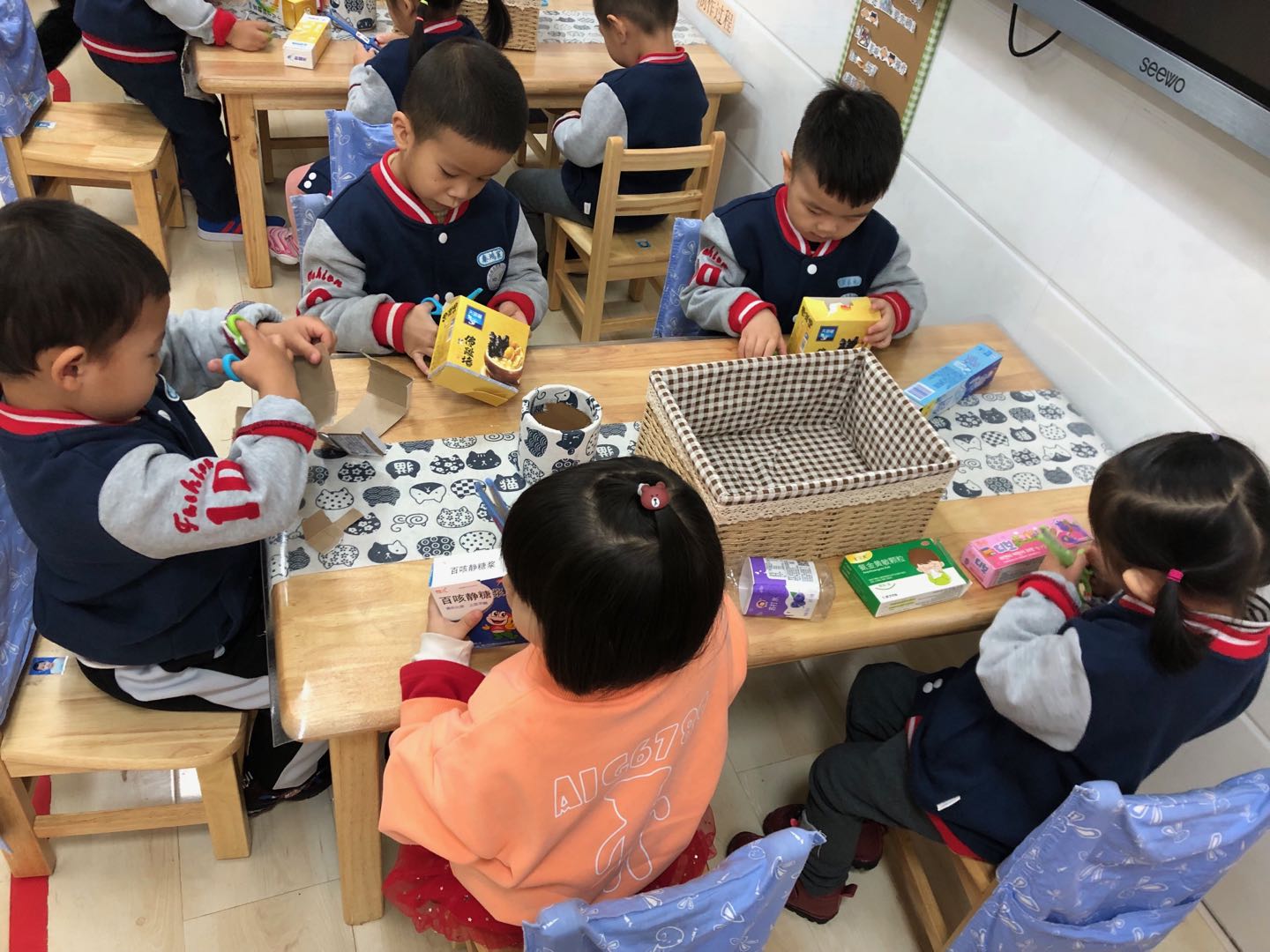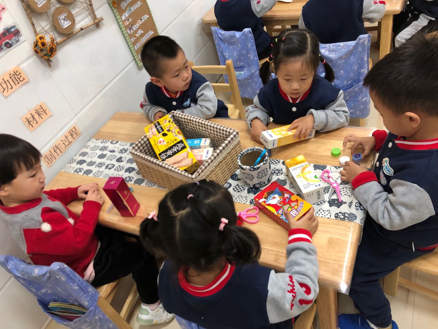马路是我们日常生活中最常接触,也是和我们的生活最密切相关的社会公共场所之一。本次主题《车展》涉及到的马路上的行为和各种车辆也是幼儿身边熟悉的。随着《车展》主题的进一步开展,孩子们在对各种车的结构有了一定的后开始了制作活动。苗三班要制作的车是公交车和消防车。 在制作之前孩子们一起讨论了公交车的外形特征和制作方法,随后利用平时收集到的废旧材料(牙膏盒、瓶盖、纸张……)开始制作,他们自己选择材料进行拼摆,再借助工具(双面胶、剪刀)裁剪、粘贴。 这是孩子们第一次动手制作,在此过程中教师也注重幼儿常规的培养,比如剪刀的拿放与传递、胶带的使用、垃圾的清理等。此次活动锻炼了幼儿的动手能力,同时也发挥了孩子们的想象力。