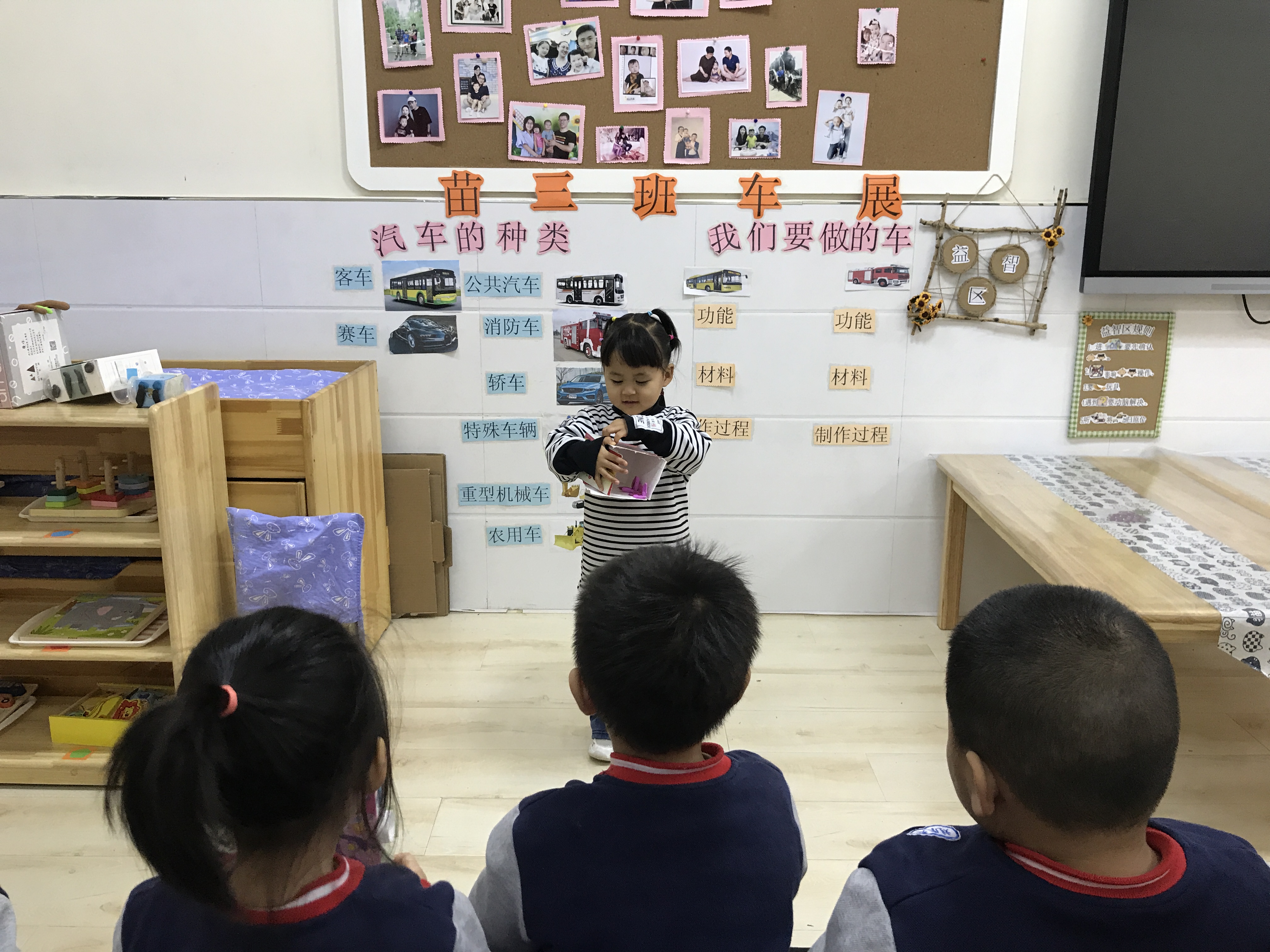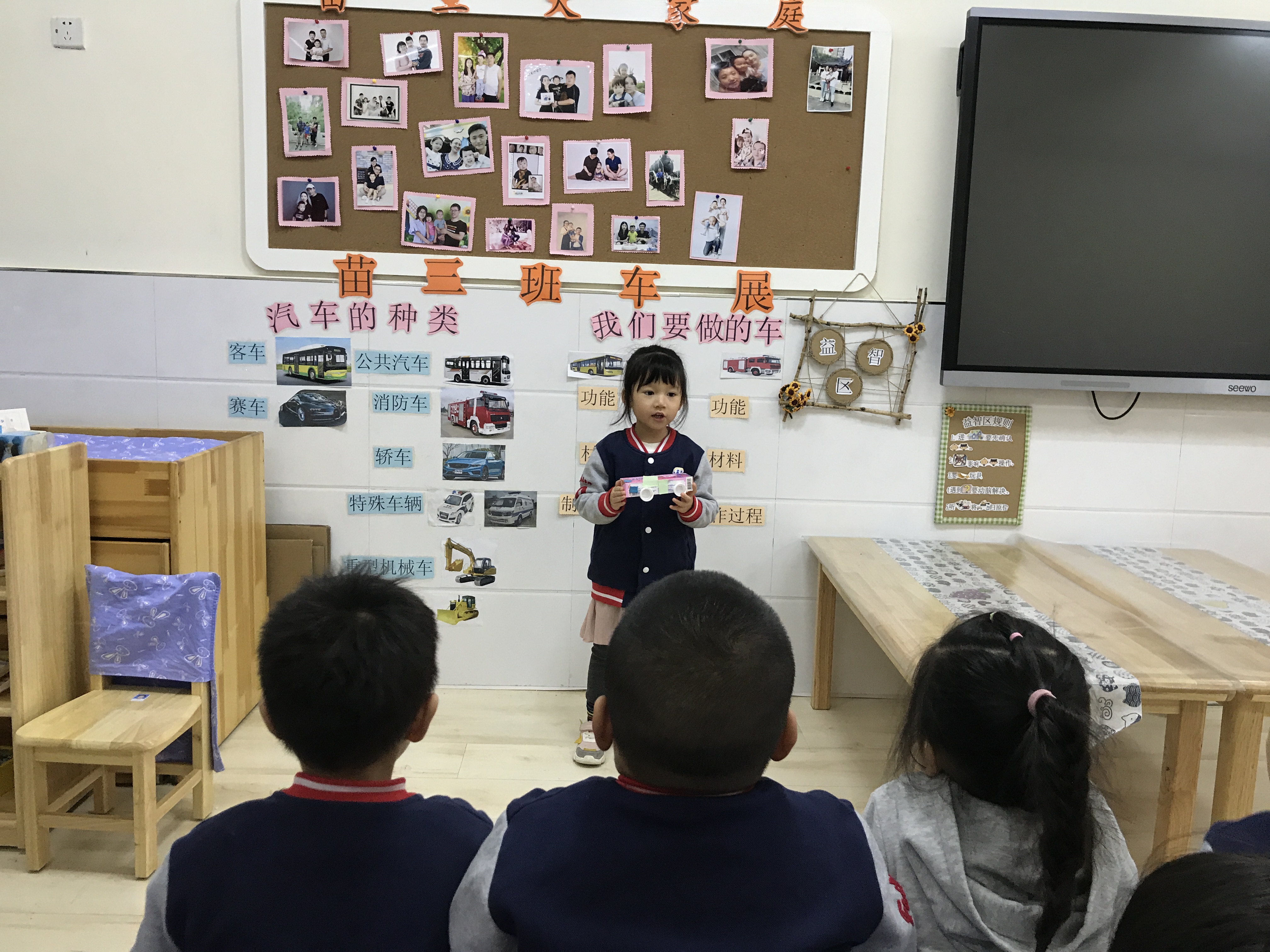 践行课程的开展让幼儿从操作、讲解、文艺表演几个方面获得直接经验,有效的提高了幼儿的语言表达能力、动手操作能力和艺术表现力。本次践行讲解活动孩子们通过认识车、制作车这些已经积累到的前期经验,进一步讲解自己制作的汽车,幼儿的经验不断积累、语言表达能力不断提升,创造力和想象力也得到了发展。在一次次锻炼中幼儿能够更自信、更乐于表达。 践行课程正是以活动为载体,相互承接、层层深入。老师要带领幼儿走进生活,感知生活,利用一切资源,鼓励孩子们发现问题,学会解决问题,进而提高幼儿各方面的能力。让他们在已有经验的基础上,主动建构自己的知识体系,收获成长的快乐。