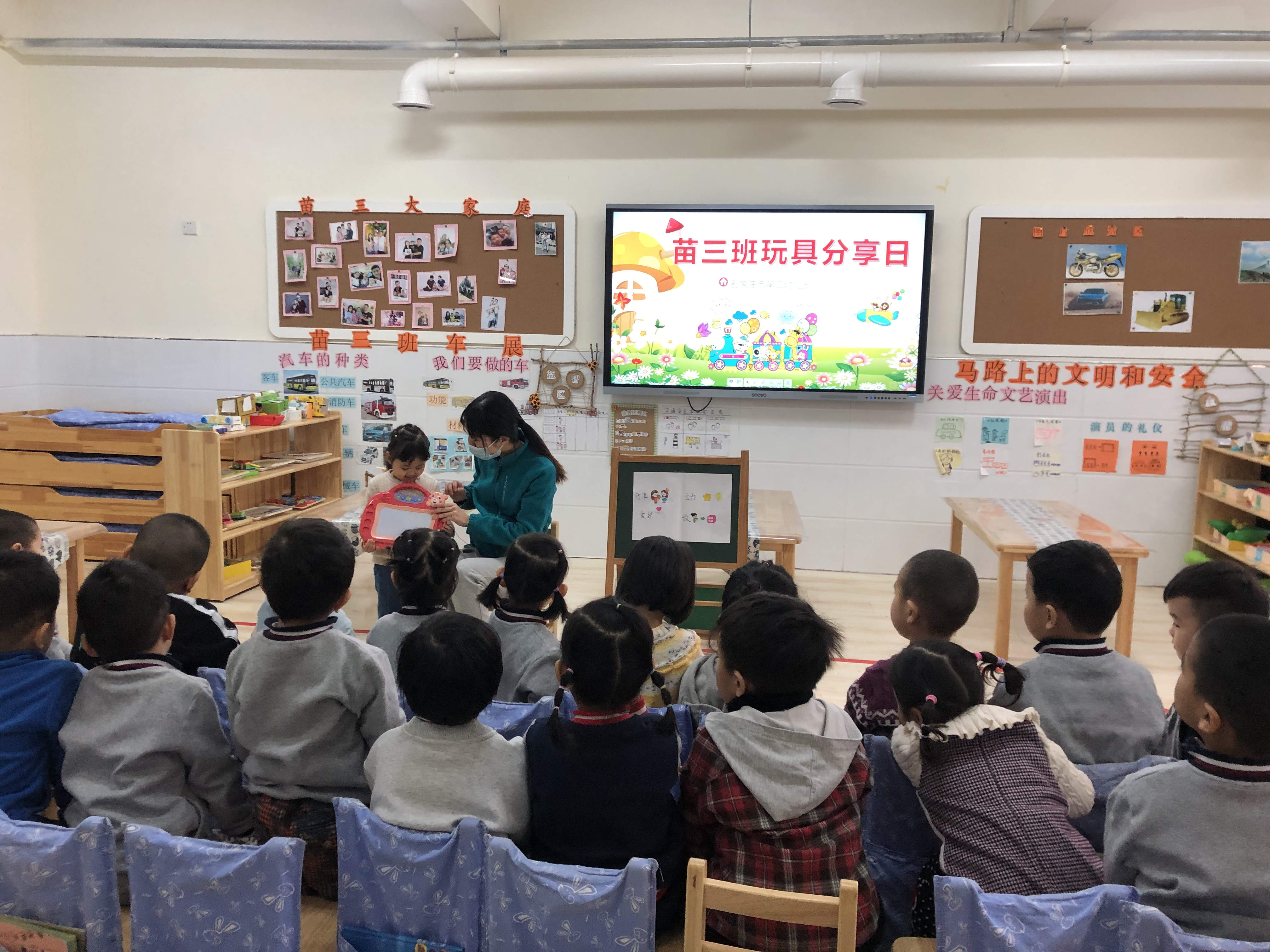 《幼儿园教育指导纲要(试行)》中提出将“乐意与人交往,学习互助、合作、分享,有同情心”作为幼儿社会性发展的目标之一。为了培养幼儿乐与与人交往,乐意与人分享的意识,感受分享的快乐,增进孩子们之间的感情,使他们喜欢和同伴玩耍、学习。我园举办了“玩具分享日”活动。 活动前一天,老师和幼儿一起讨论:“你想带什么玩具?怎么玩?和谁一起玩?”活动中首先请幼儿介绍了自己的玩具和玩法,并共同制定出“玩具分享日规则”。活动开始后老师鼓励幼儿通过语言和邀请同伴一起玩并进行分享。 通过玩具分享日活动,孩子们不仅收获了快乐,更懂得了分享的美好。同时能让幼儿从小就懂得分享的乐趣,养成不自私,懂得关心和关爱他人的良好品德。