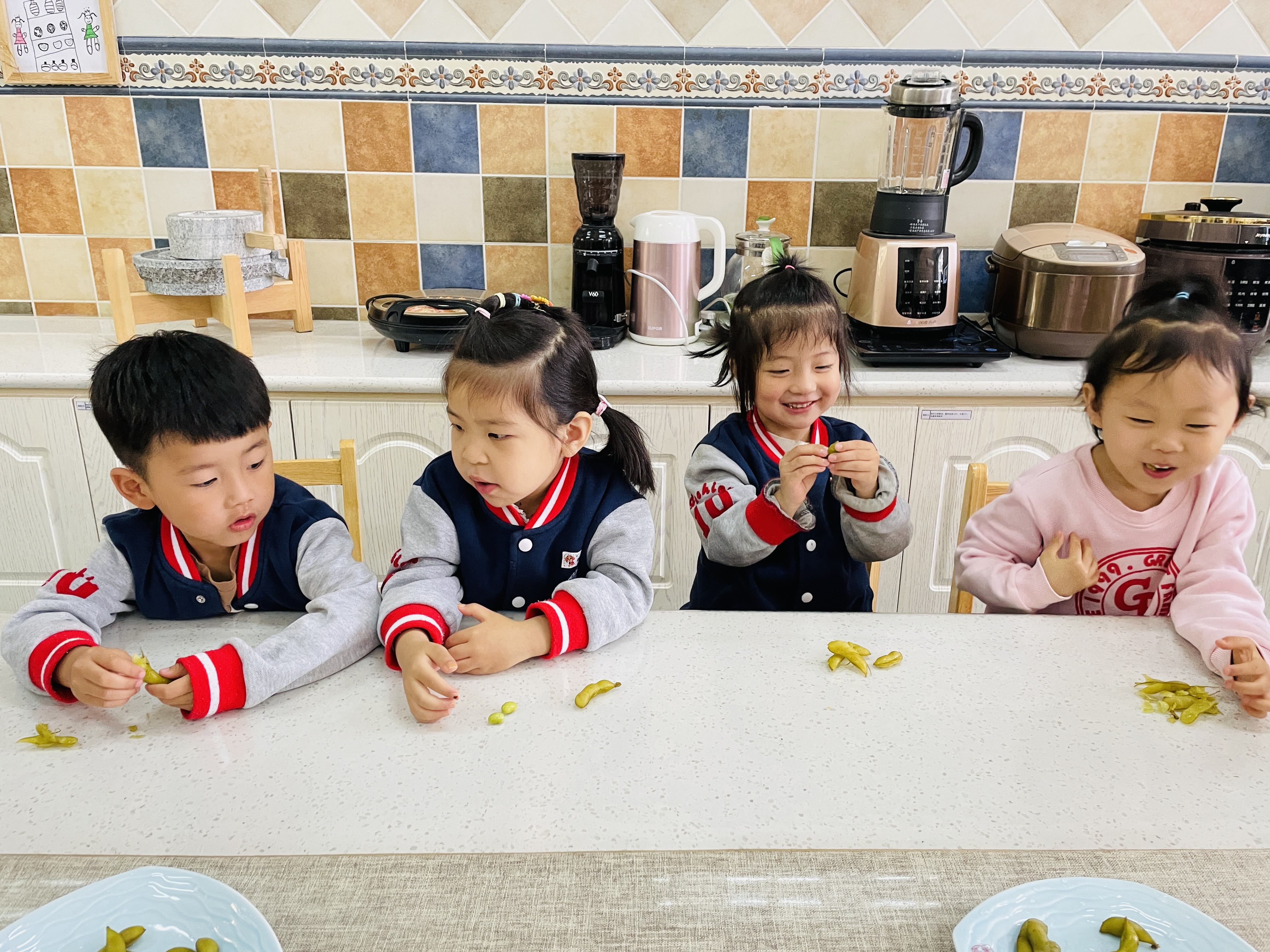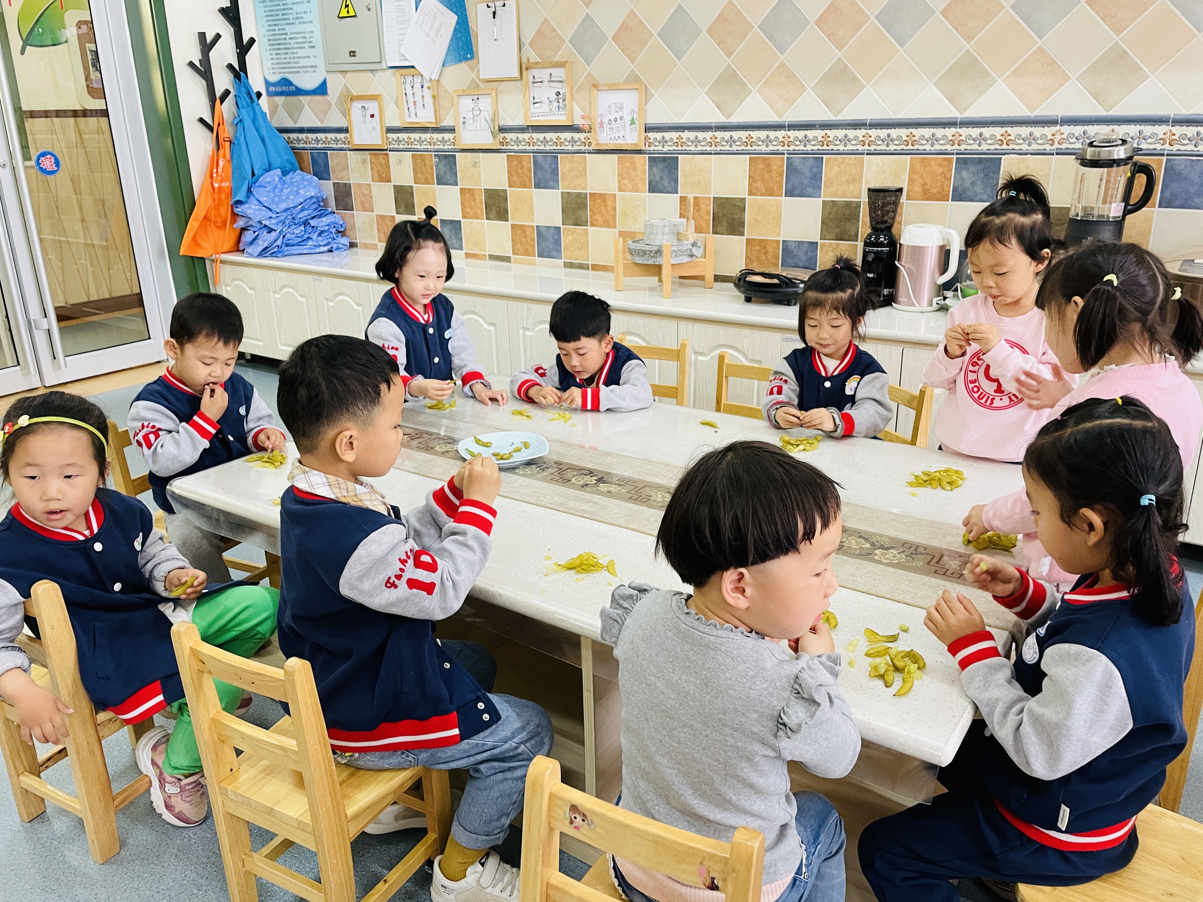 美好的夏日里,不仅有美景,更有佳肴。立夏节气有“立夏尝三新”的说法,在这一时节,豌豆新鲜上市,是值得尝鲜的一种食物,立夏也有吃豌豆的习俗,本周食育工坊的活动就围绕“豌豆”来展开。 孩子们先学习了立夏节气的儿歌《立夏到》,在儿歌中感受到了夏日的气氛;随后孩子们一起认识了豌豆的营养价值、生长过程、生长环境等;郭老师为小朋友们煮了带壳的豌豆,孩子们尝试自己剥豌豆、品尝豌豆的味道。嫩嫩的豌豆,清水加盐煮一煮,连豆荚都是甜甜的一包水,孩子们吃起来便觉得清甜无比。 本次活动为幼儿提供了动手操作的机会,也品尝到了夏季的第一道美食。春天在品尝豌豆中结束了,孩子们踏着节气的脚步,从饮食、生活等各种活动中感受季节的变化。