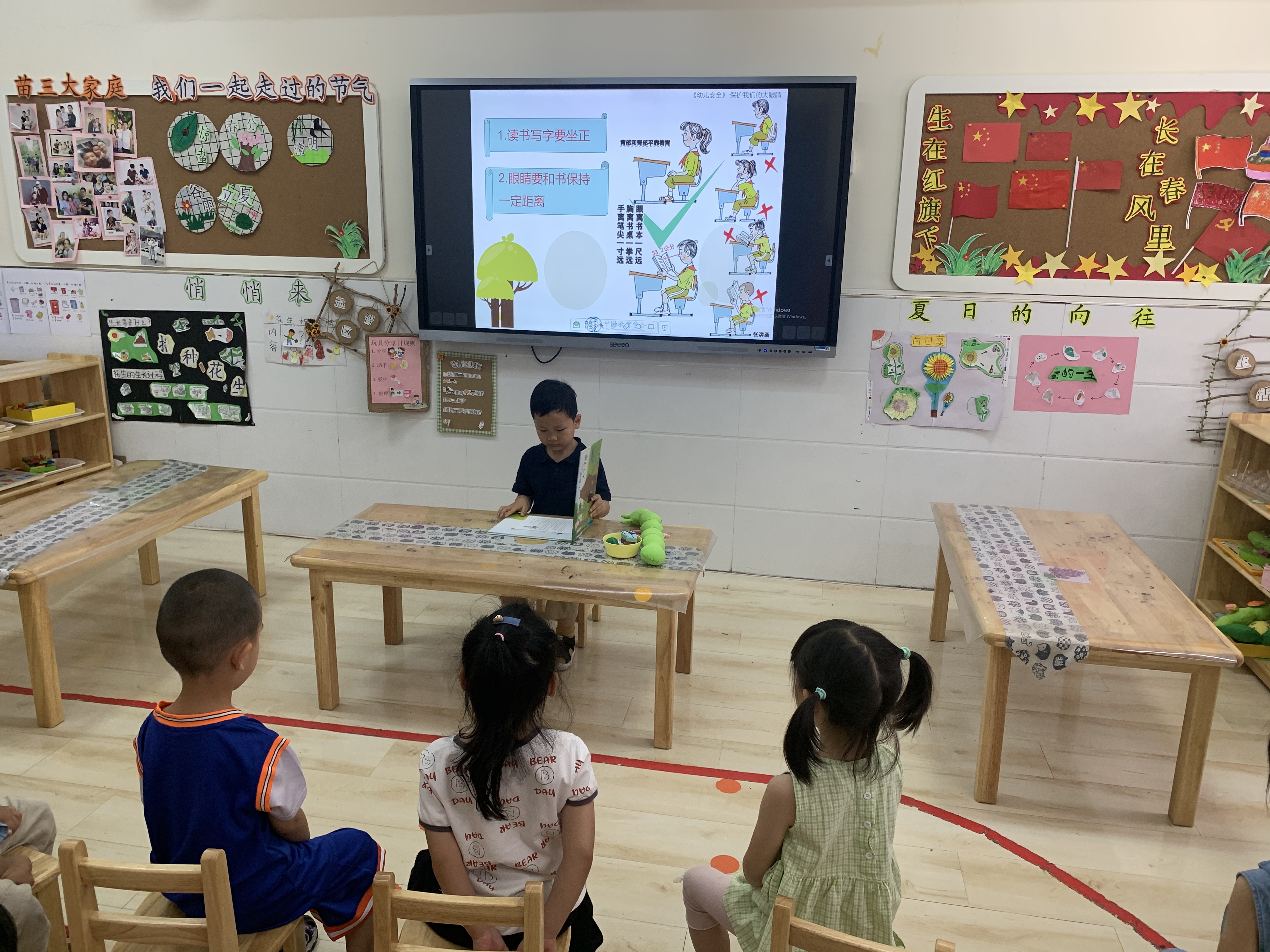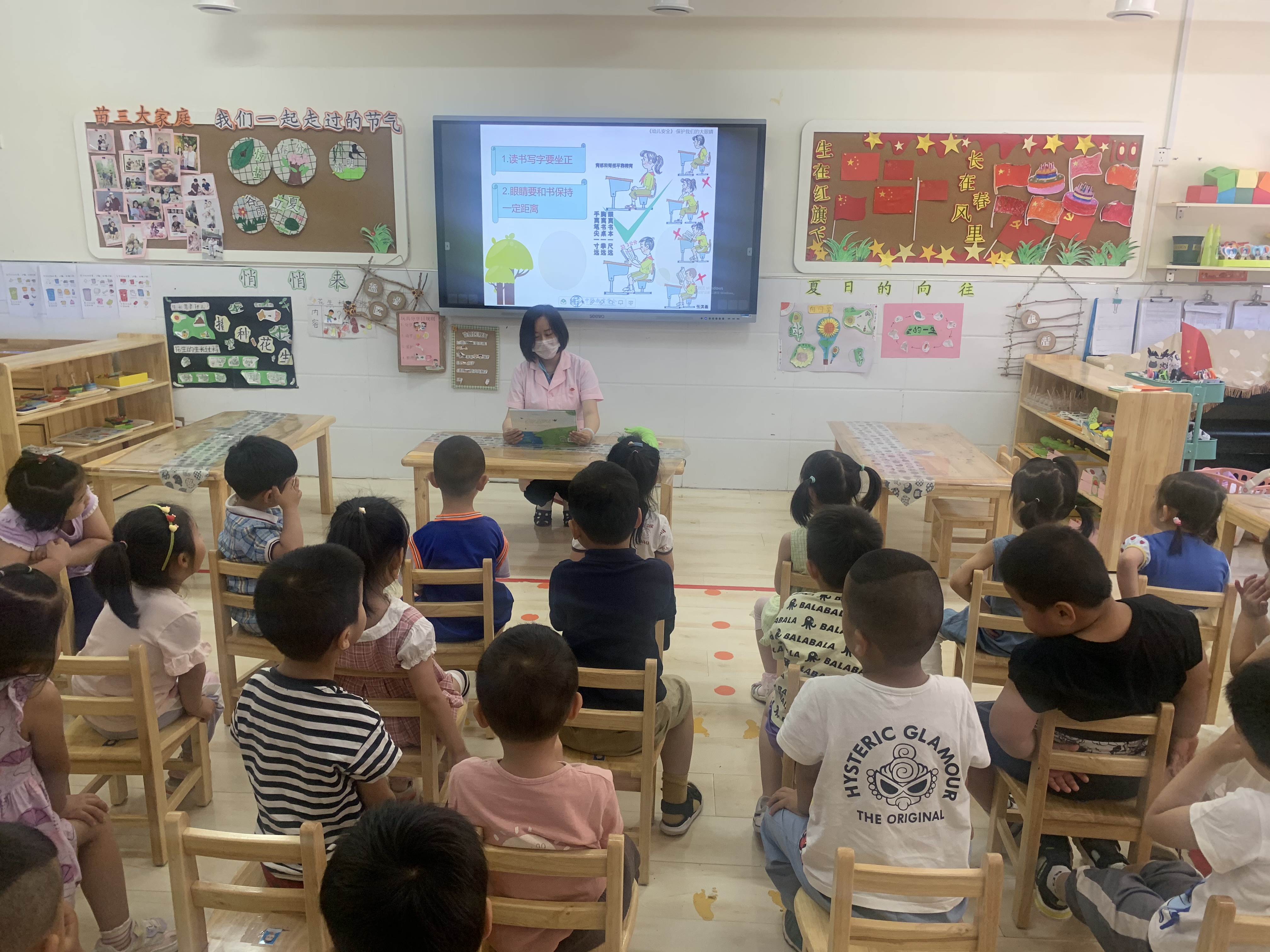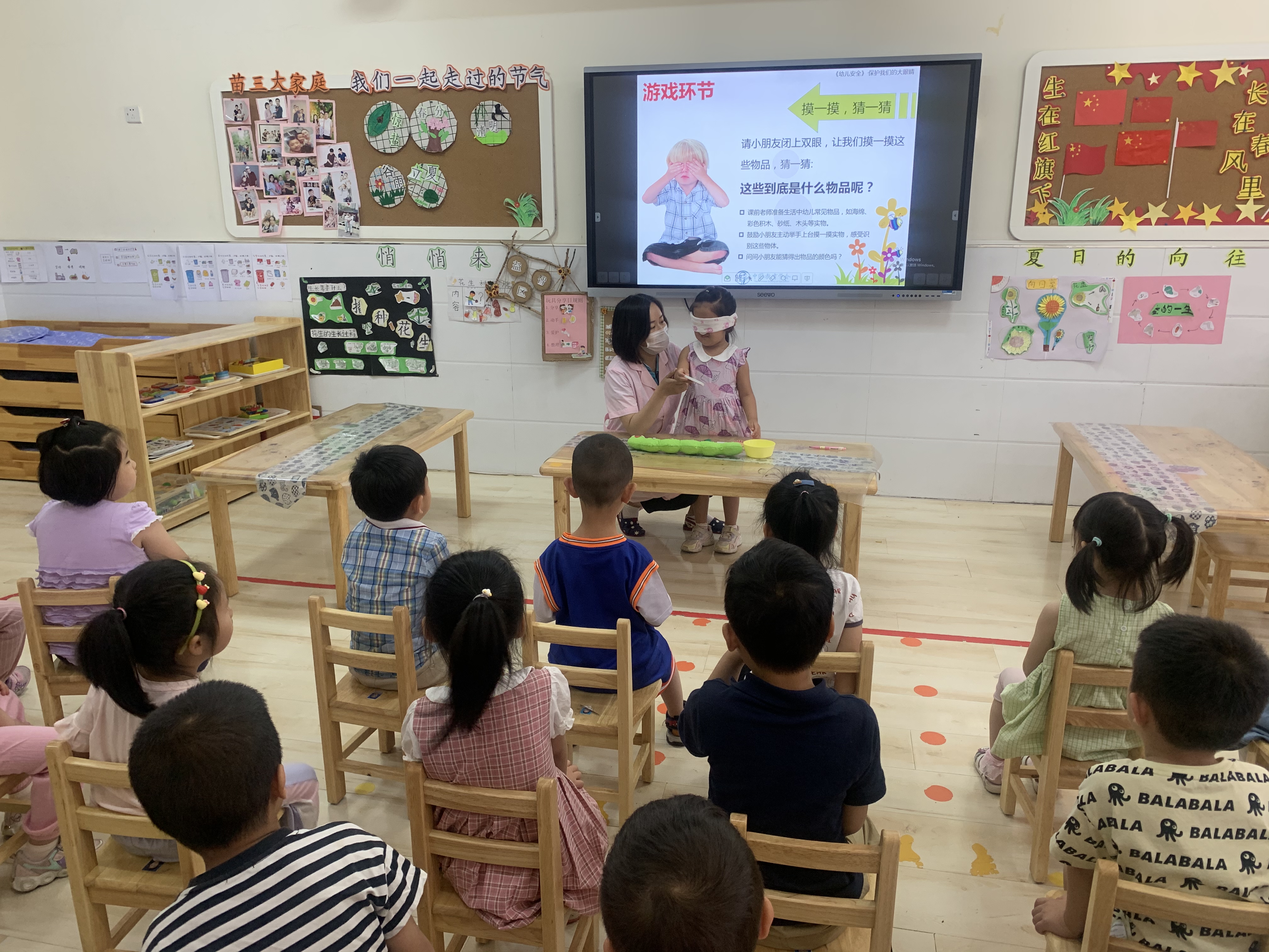 全国爱眼日是每年的6月6日,眼睛是人类感官中最重要的器官之一,不当的用眼习惯会导致眼部疾病,危害身体健康。只有拥有一双明亮的眼睛,我们才能看到这个美丽的世界。幼儿阶段是视力发育的重要时期。为了让孩子们知道保护眼睛的重要性,督促其养成正确的用眼、爱眼和护眼的好习惯,习近平总书记连续作出重要指示,要求“全社会都要行动起来,共同呵护好孩子的眼睛,让他们拥有一个光明的未来。” 为切实加强幼儿视力保护工作,培养幼儿养成良好的用眼习惯,掌握科学用眼知识,本周苗三班组织开展了丰富多彩的“爱眼日”宣传主题教育活动。 为了让幼儿更加了解自己的眼睛和保护眼睛的重要性,教师通过讲解以及直观形象的图片,引导幼儿了解到了眼睛的构造以及如何爱护眼睛等,并教育幼儿要从小养成保护视力,爱护眼睛的好习惯!游戏环节让孩子们感受到了闭眼状态下活动会给人们的生活带来非常多的不方便,从而学会珍惜爱护自己的眼睛。 通过本次活动,让幼儿从小学会呵护自己的眼睛,关爱自己的健康 “保护眼睛,从我做起”让我们一起呵护孩子的“心灵之窗",为幼儿拥有一双清澈、明亮的双眼而共同努力!