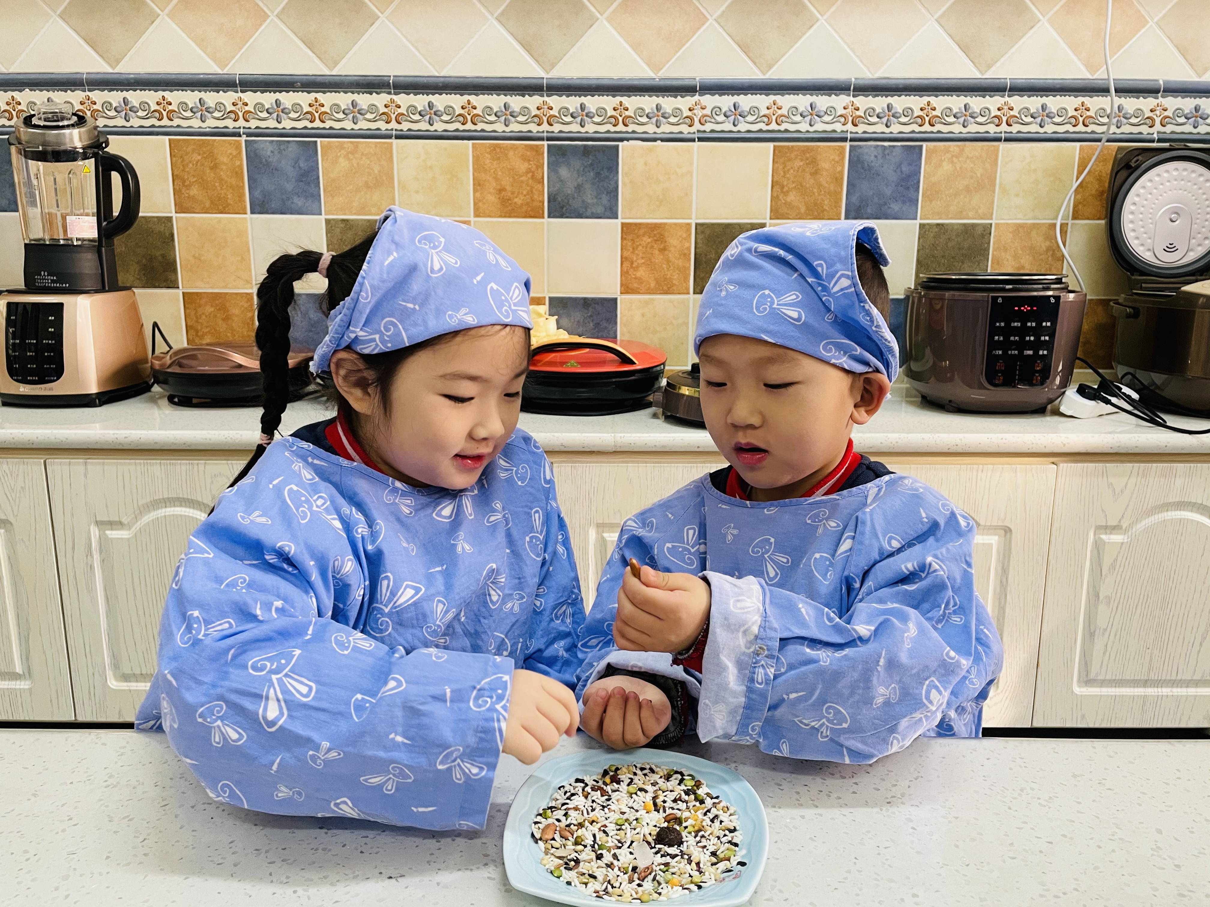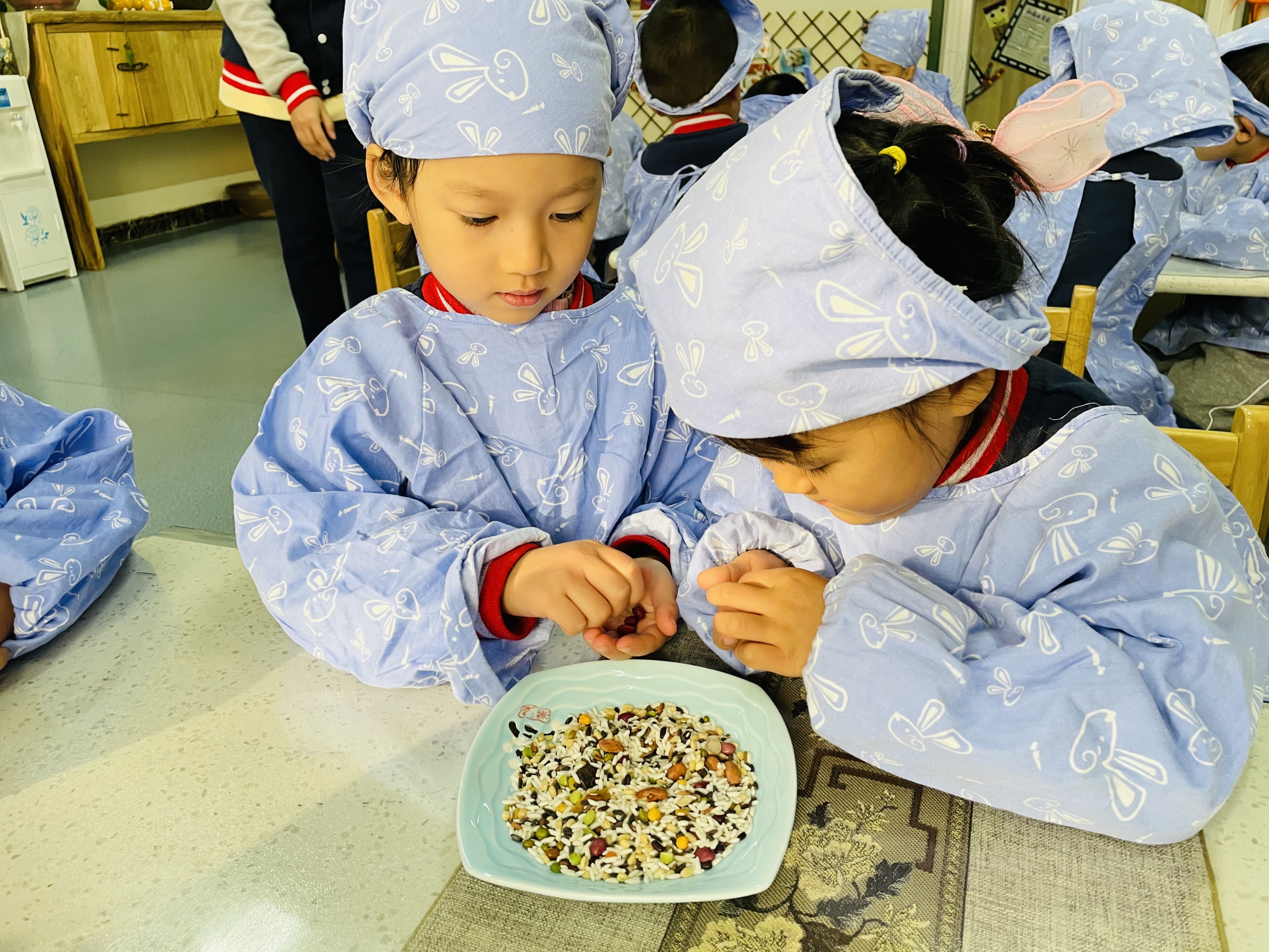 每年腊月初八是我国传统的腊八节。在我国腊八节有着很悠久的传统和历史,喝腊八粥是腊八节的主要习俗之一,为了让小朋友们从多方面了解腊八节的来历和饮食习惯,我班在幼儿园食育工坊开展了“腊八添福,事事‘粥’全”的活动,让小朋友们在寒冷的冬天,感受节日带来的温暖和快乐。 通过播放视频和图片,小朋友们了解了腊八节的由来和习俗,一首《过了腊八就是年》的儿歌,使节日的氛围更加浓厚。孩子们认识了各种制作腊八粥的食材:红枣、糯米、葡萄干、红豆、冰糖等等,再将其放至锅中熬制成香甜的八宝粥一同品尝。 “小孩小孩你别馋,过了腊八就是年。”熟悉的童谣在一碗热腾腾的腊八粥中唤醒了记忆中的年味。小朋友们从制作腊八粥中丰富着自己关于腊八节的经验,体验着传统节日“温暖、圆满、吉祥”的独特魅力。