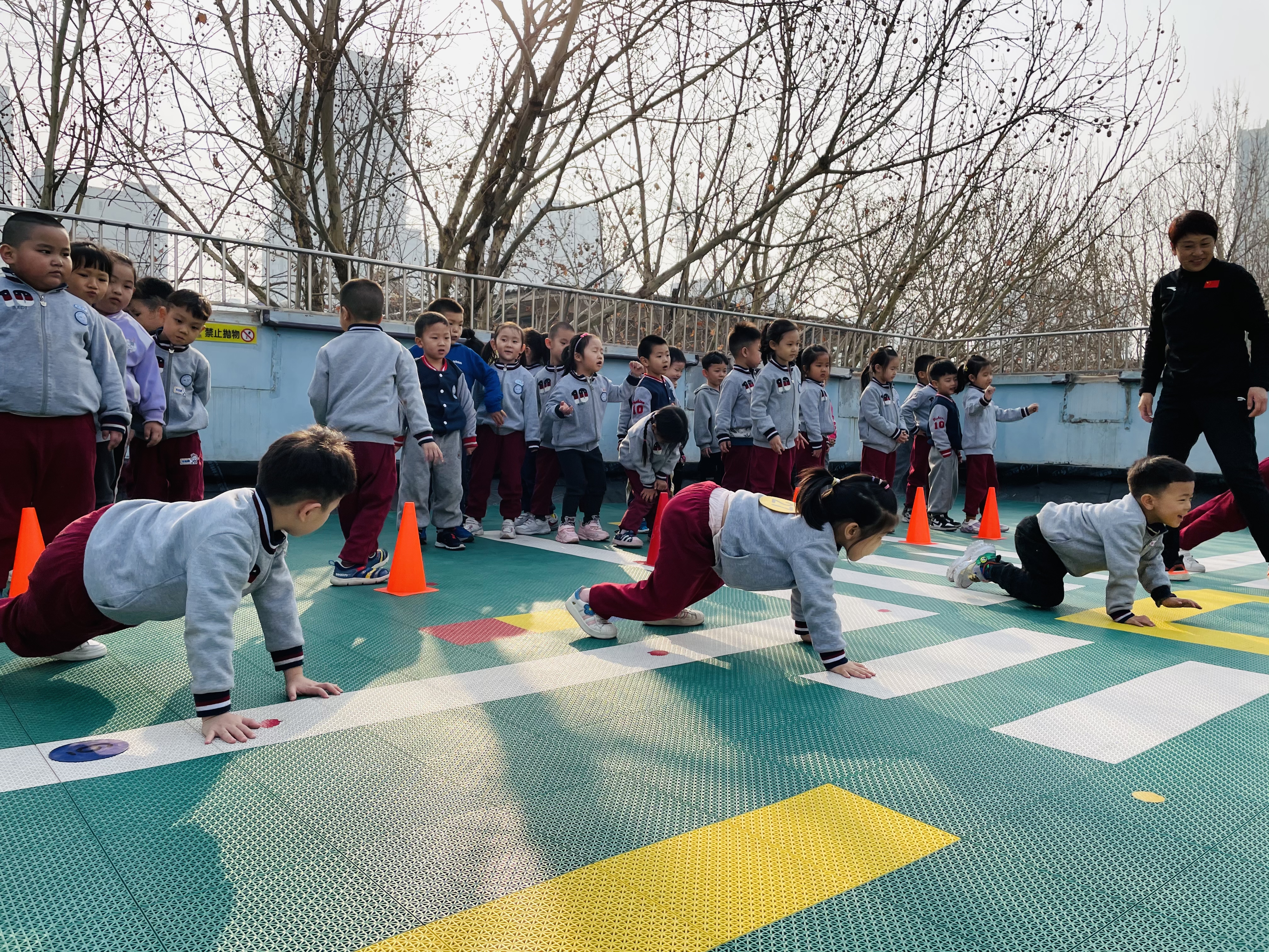 幼儿体能活动是发展幼儿身心健康的一门学科,无论是从心理上还是生理上都能很好的帮助幼儿成长。幼儿园体能课目的之一是促进幼儿身体健康成长,增强幼儿体质。充分发展幼儿的走、跑、跳、投掷、钻爬、平衡等动作,不仅能锻炼身体,并对促进幼儿独立生活与活动能力的发展,促进智力发展有着重要的意义!体能课程可培养幼儿勇敢、机智、创造和克服困难完成任务的品质;培养幼儿遵守规则、互助互爱,并养成活泼开朗的性格。 初春时节,天气渐暖,孩子们在专业体能老师的带领下展开了一场生动的“猫鼠大战”老师根据绘本《十二生肖谁第一》展开了今天的活动,用形象的比喻引导幼儿学习新的动作技巧。手脚爬既锻炼了孩子们的肢体协调能力,同时也为幼儿腹部核心发力打下基础。 老师带领着孩子们一起游戏,孩子们脸上乐开了花,露出了甜甜的笑容。这里是孩子们的乐园也是他们温暖的大家庭。他们将在这里健康茁壮成长!