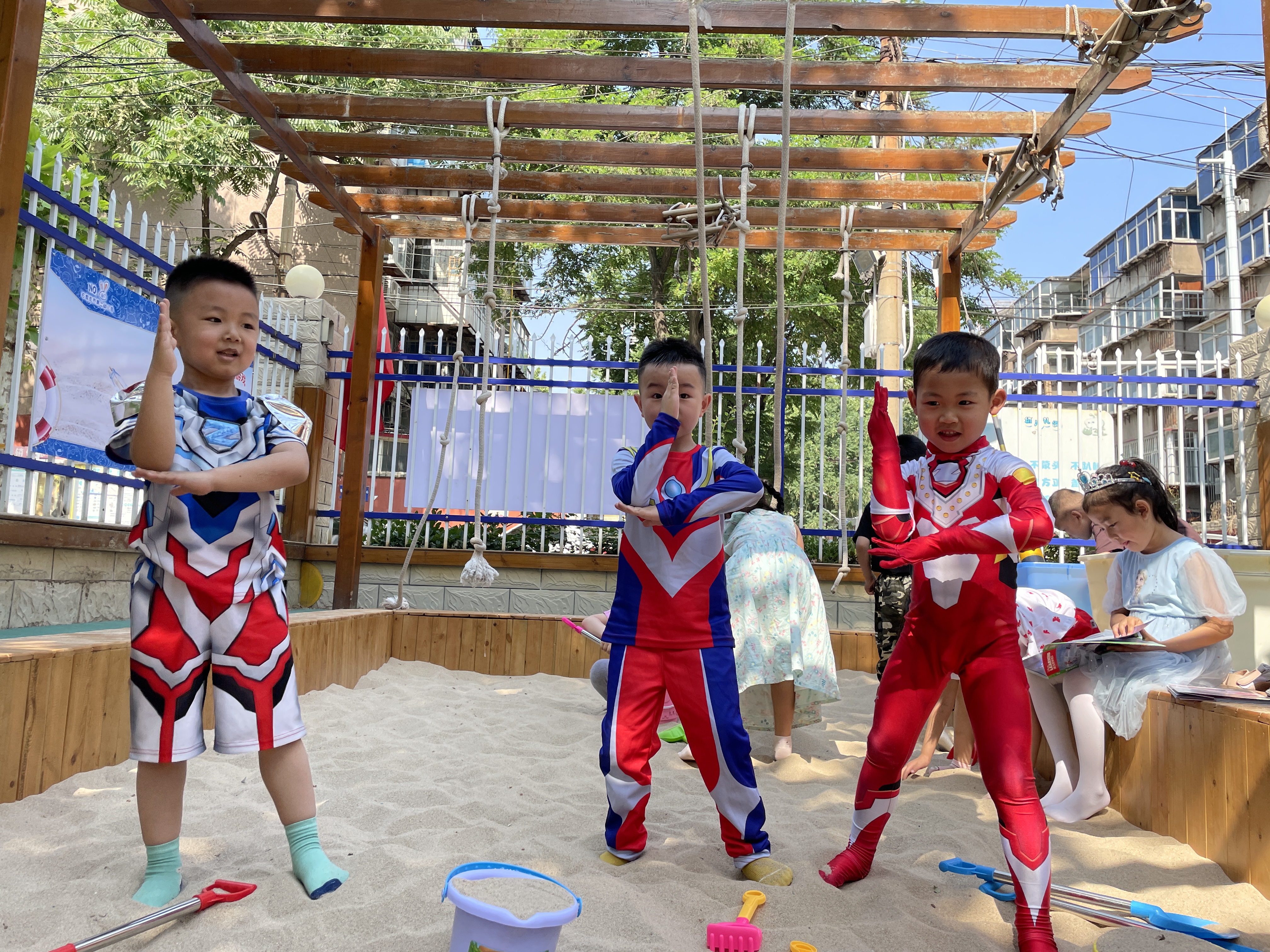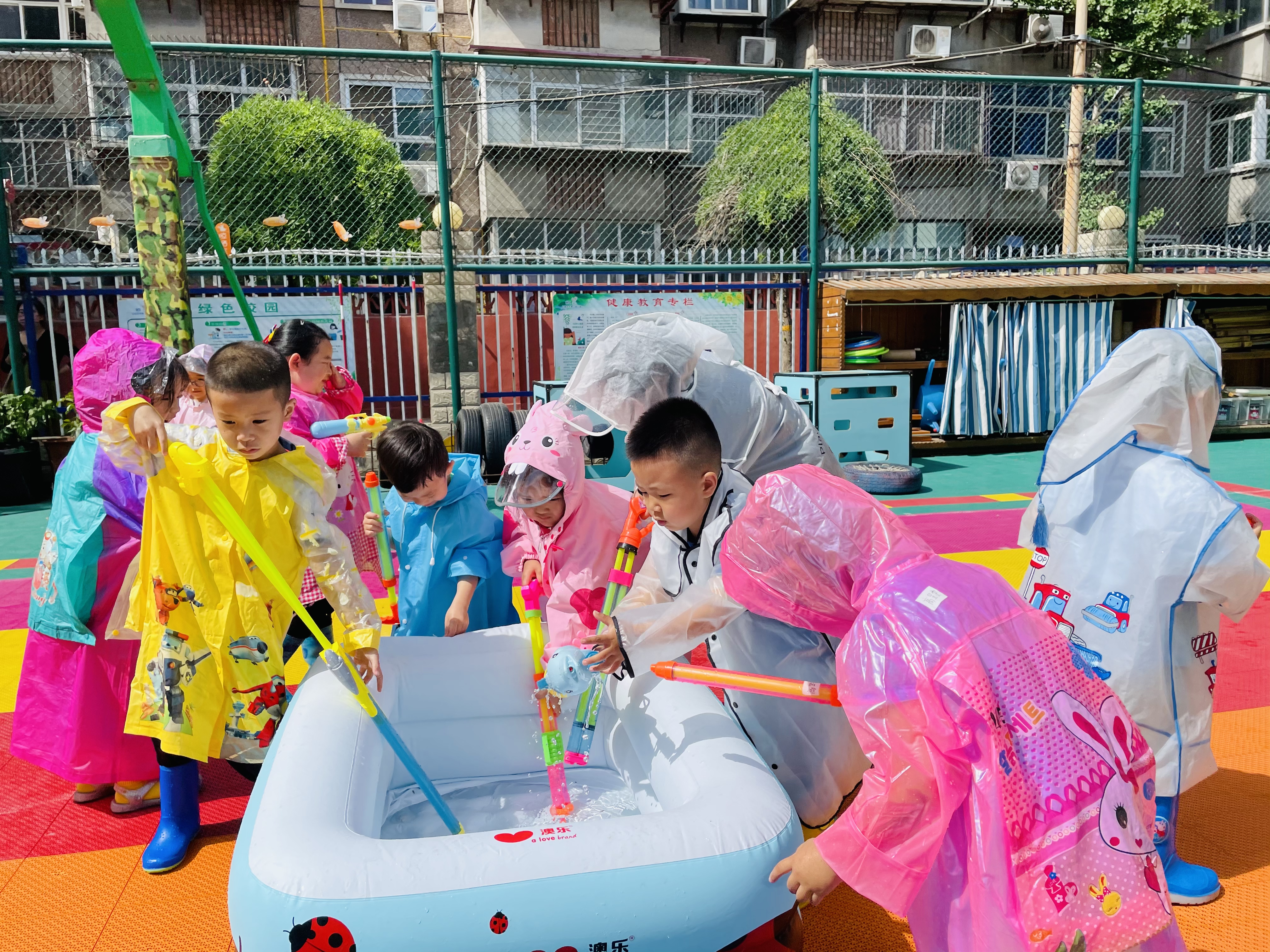 六一的歌是甜甜的、六一的花儿是香香的,六一的小朋友个个都是开心的。在2022年6月1日国际儿童节到来之际,幼儿园联合班级为孩子们组织了丰富多彩的“六一欢乐周”活动。 在“帐篷日”活动中,孩子们穿上自己喜欢的衣服进行装扮,带上自己喜欢的玩具和好朋友一起自主选择游戏,他们三五结伴钻进帐篷里时而说着悄悄话、时而玩着“过家家”。玩水是孩子们最喜欢的游戏之一,在玩水自由日,孩子们穿着雨衣、拿着自己的小武器“水枪”,幼儿园里充满了欢声笑语,大家玩得不亦乐乎。参与其中的孩子、老师从头到脚浑身湿透了却乐此不疲,操场上变成了一片欢乐的海洋。在“玩一玩爸爸妈妈的游戏”中,孩子们提前学习折元宝和纸飞机,家长志愿者和老师一起带孩子体验小时候的游戏。 在幼儿园这片沃土上,我们用心守护着孩子们纯真的童心,用爱陪伴他们幸福地成长,用时光见证他们每一步的成长,让他们尽情地享受童年的缤纷与绚烂。